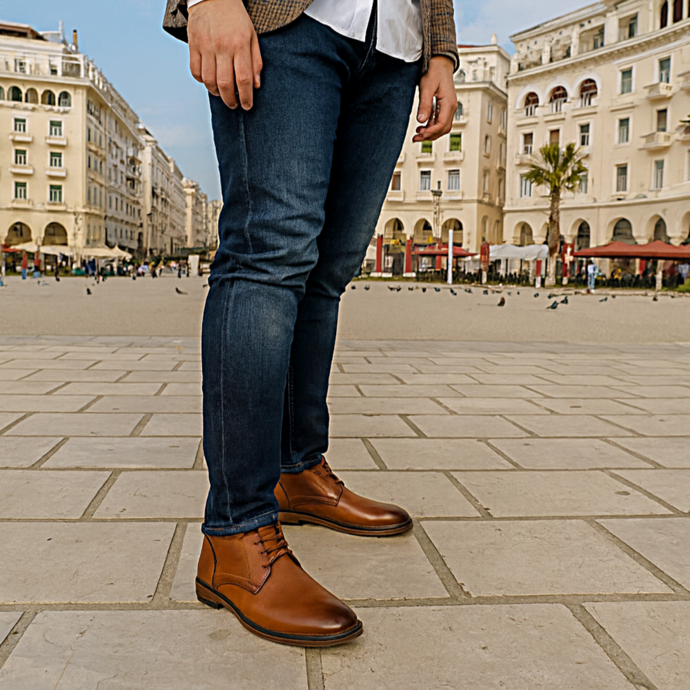 Καφέ Μποτάκια Δερμάτινα!!!!AH996