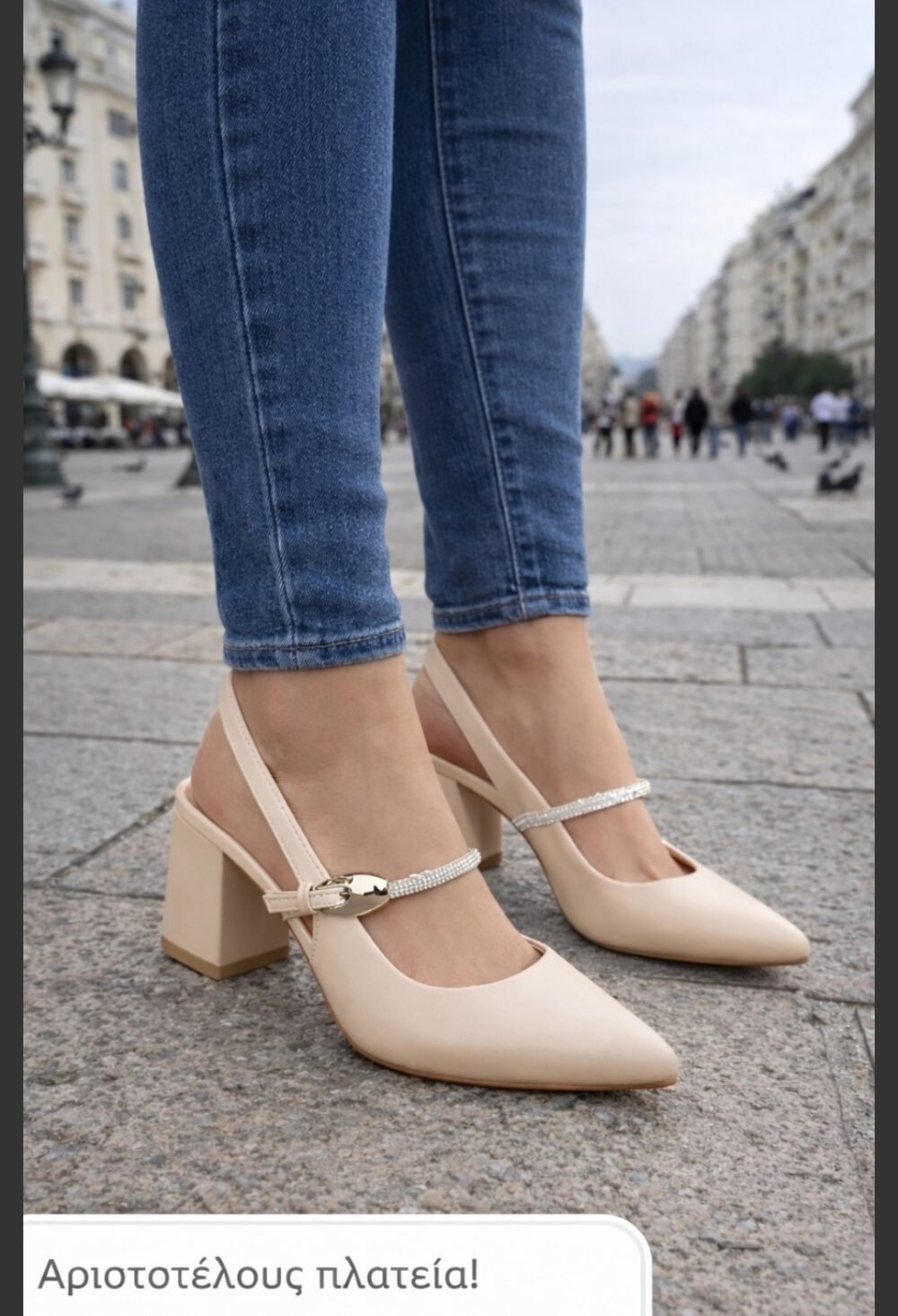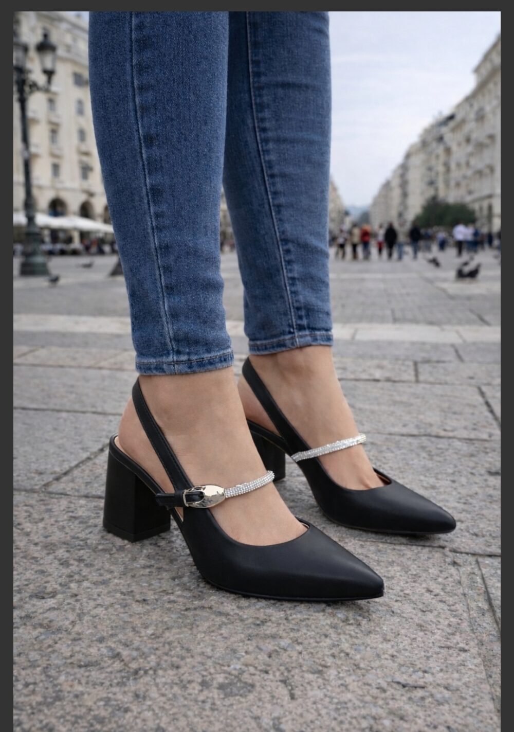 Κομψή Γόβα Slingback με Χοντρό Τακούνι & Λεπτομέρεια Strass!!!LL-1634
