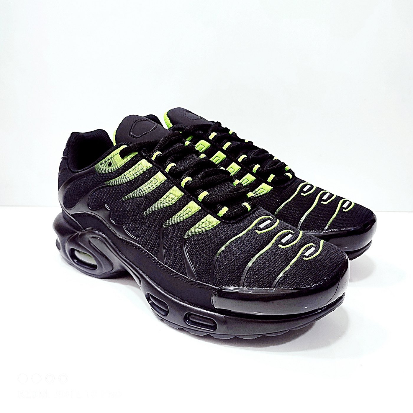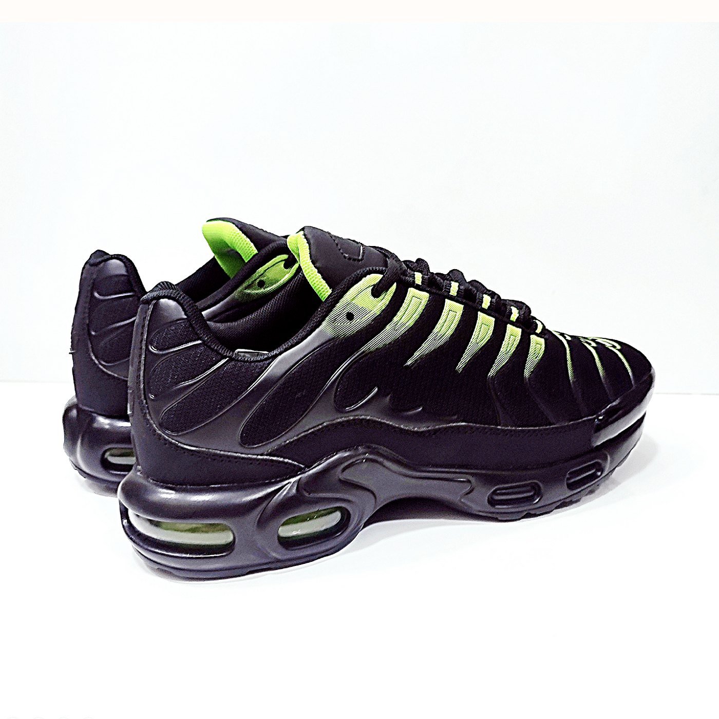 Αθλητικά ανδρικά με αερόσολα σε μαύρο χρώμα με φωσφοριζέ χρωματισμούς.διαιρούμενο μαλακό πατάκι.δέσιμο με κόρδόνι.διαθέτει αερόσολα.φόρμα κανονική.