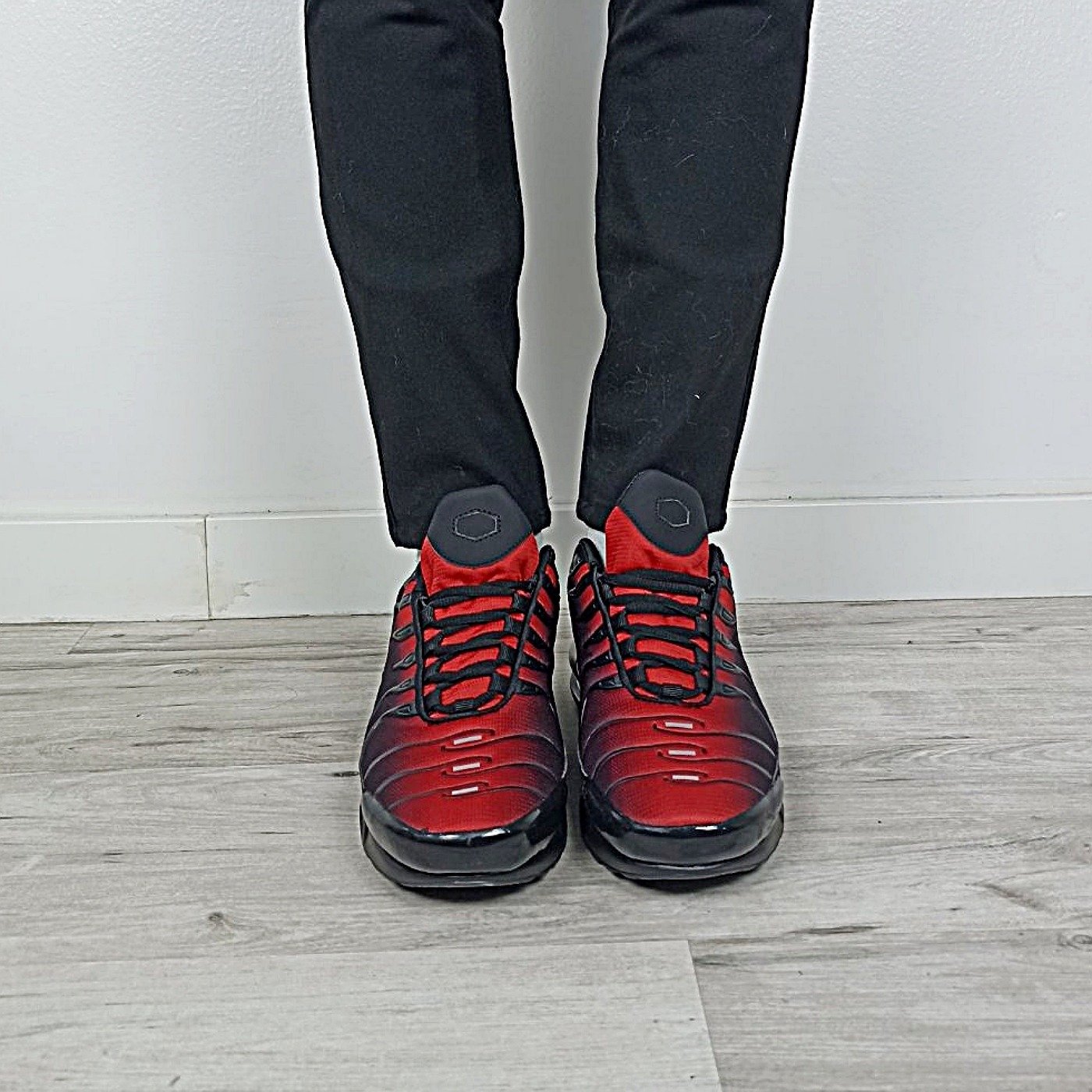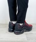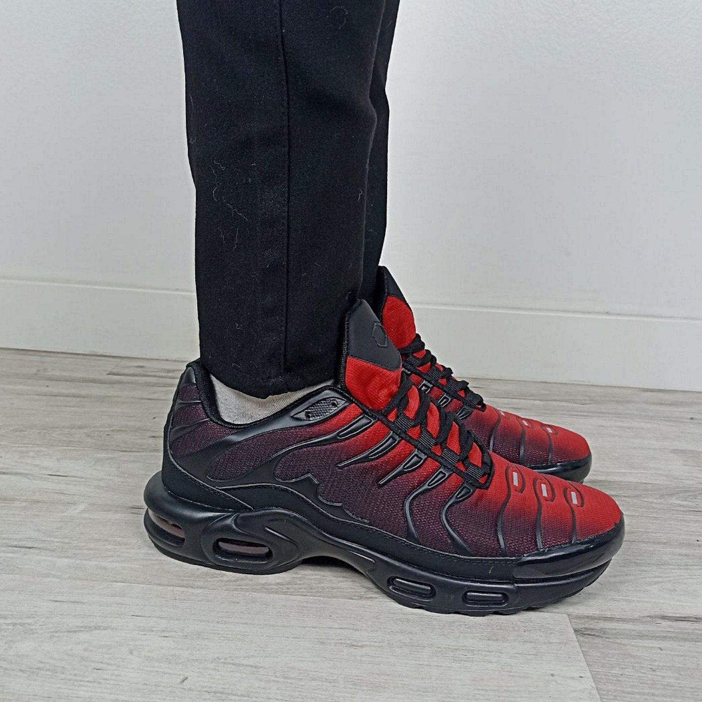 Αθλητικά ανδρικά με αερόσολα. Σε κόκκινο με μαύρο χρωματισμούς και κορδόνια. Ύψος σόλας 4εκ. Φόρμα κανονική.