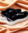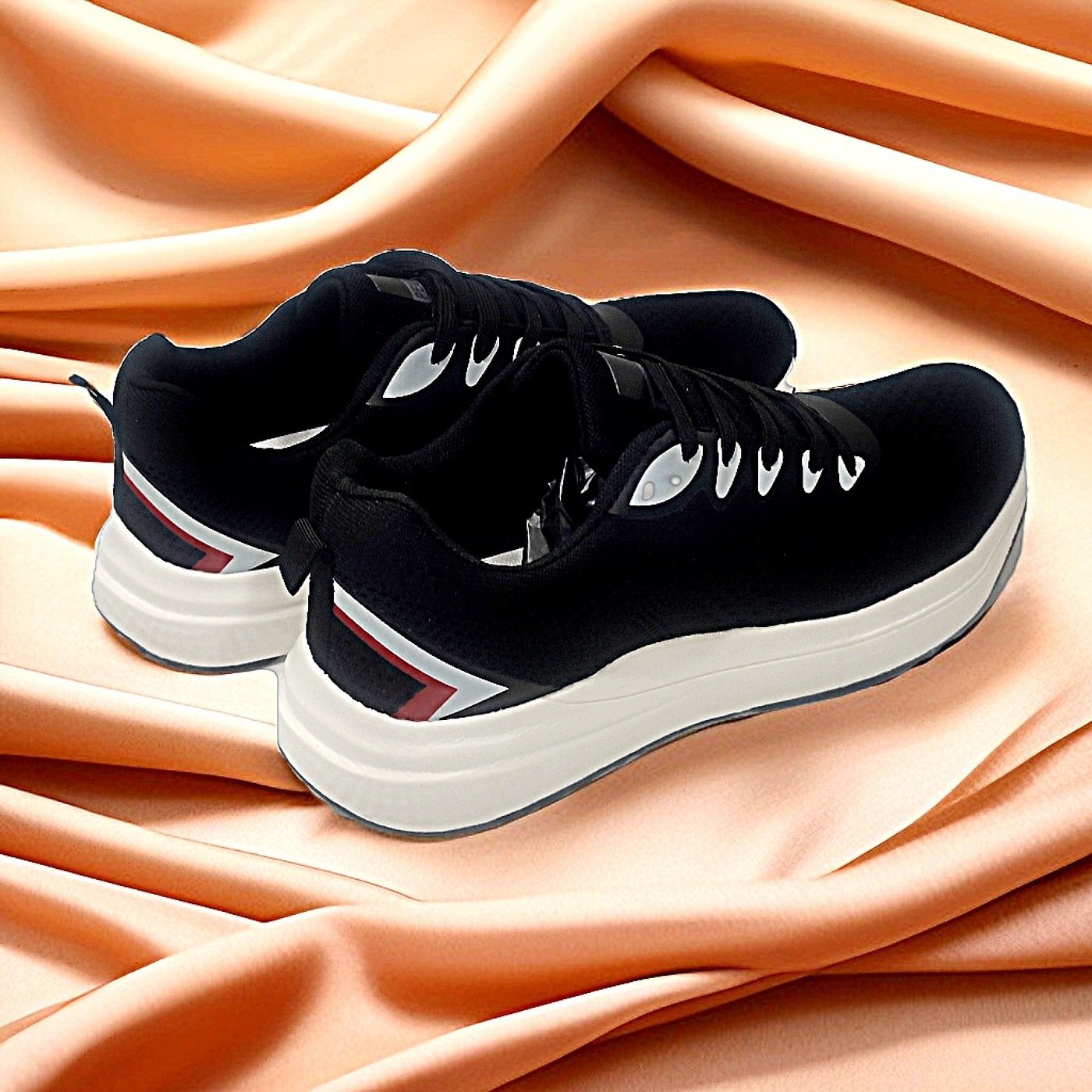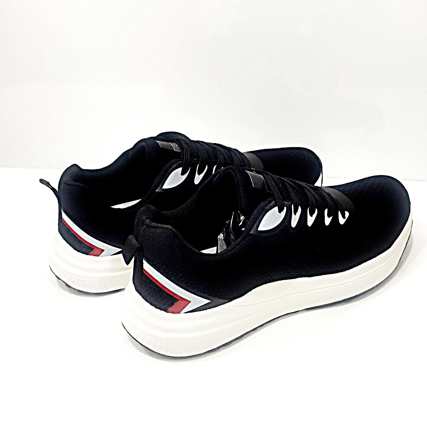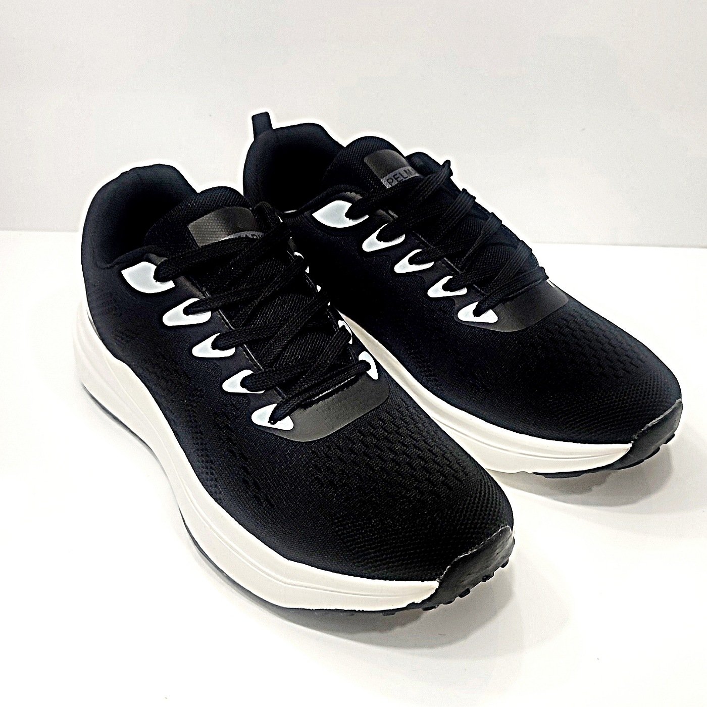 Αθλητικά παπούτσια σε μαύρο χρώμα λευκή σόλα από καουτσούκ.ελαφριά,άνετα,ευκαμπτά.κλείσιμο με κορδόνι.διάτρητα,με μαλακό πάτημα.κατάλληλα για ορθοστασία & γυμναστική.