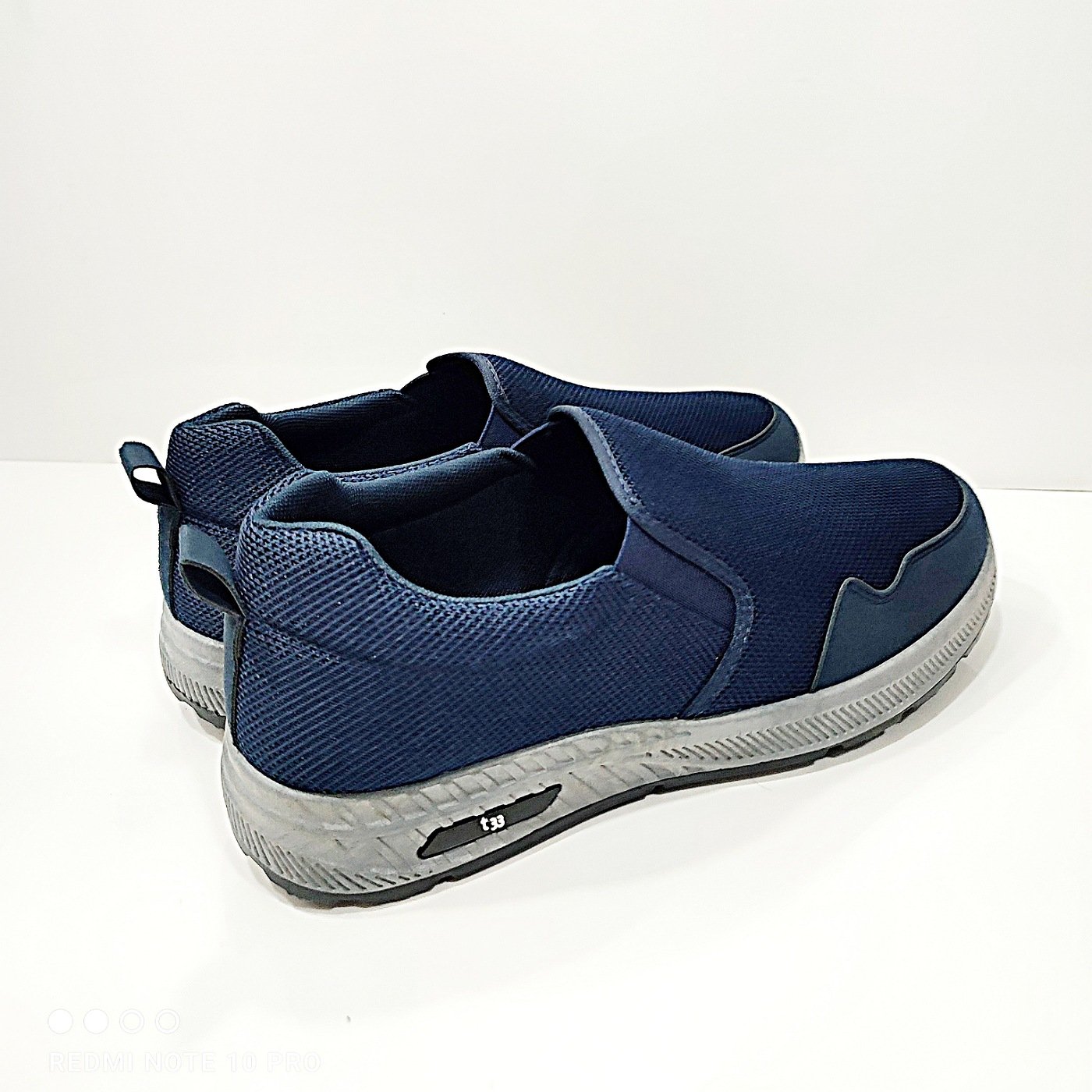 Αθλητικά παπούτσια σε μπλέ χρώμα..έχουν εφαρμογή κάλτσα για ευκολία & άνεση.σόλα απο καουτσούκ.μαλακός,διαιρούμενος πατος.στο επάνω μέρος του παπουτσιού διατρητό.εσωτερική επένδυση φόδρα.φόρμα κανονική.