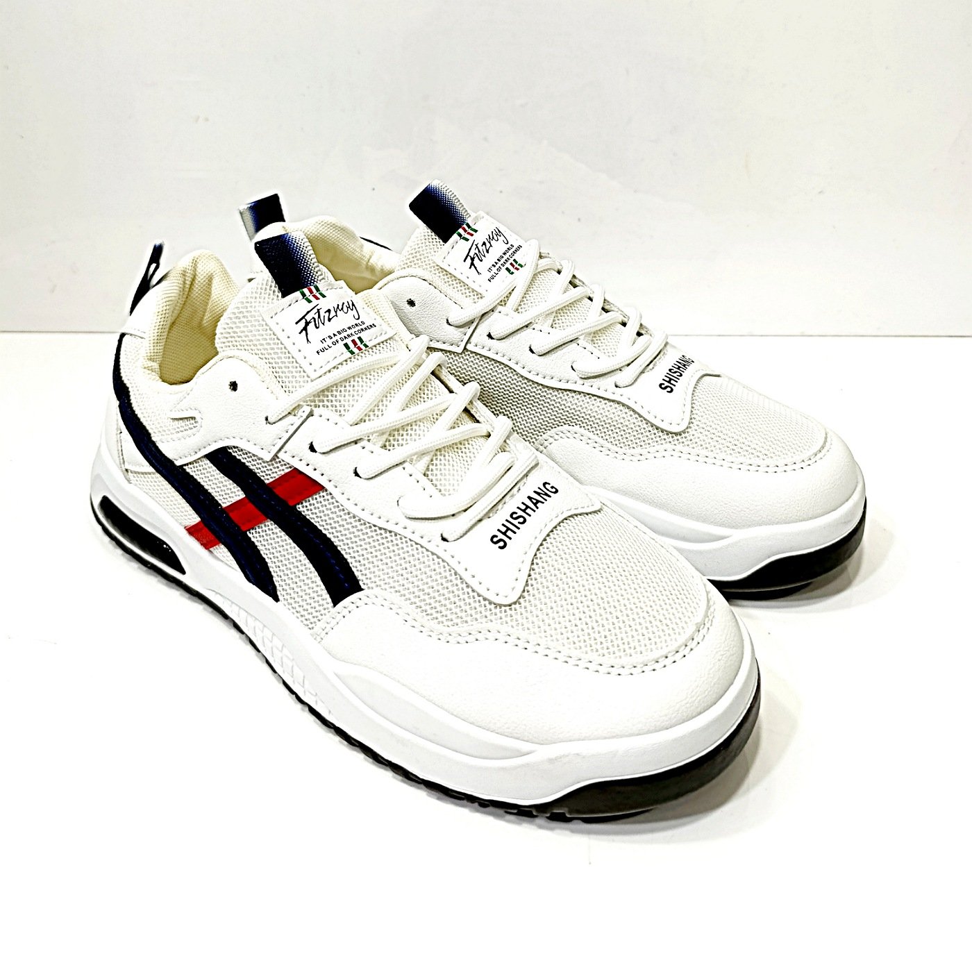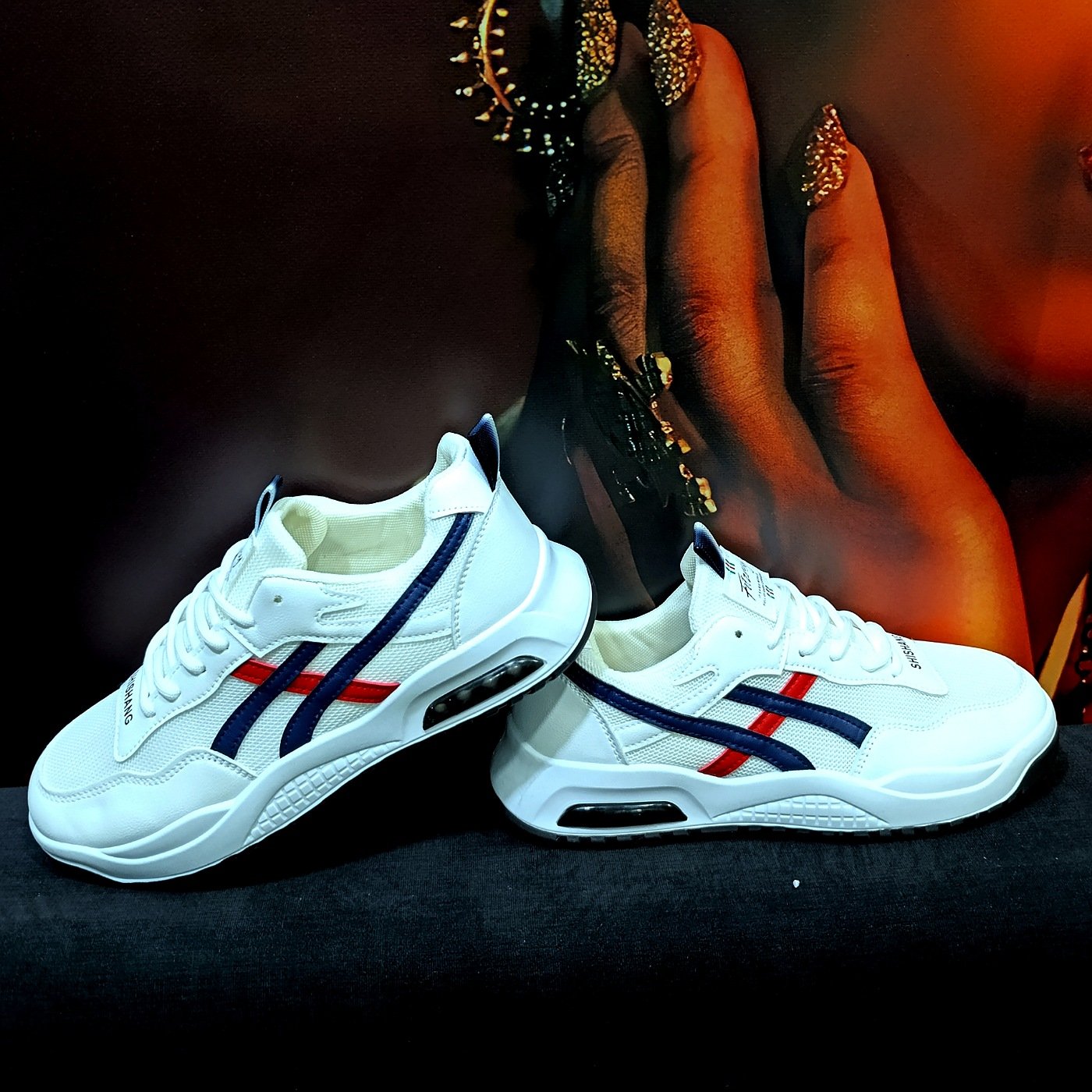 Αθλητικά υφασμάτινα διαπνέον σε λεύκο  χρώμα με αερόσολα.Διαθέτουν ανατομικό πάτο με σφουγγαράκι & σόλα πολυουρεθάνης,για να αποφεύγουν οι κραδασμοί.Παρέχει στο πόδι άνετο περπάτημα για πολύωρη χρήση.Επίσης είναι κατάλληλο για κάθε αθλητική δραστηριότητα.Δένουν με κορδόνια για πιο εύκολη εφαρμογή.