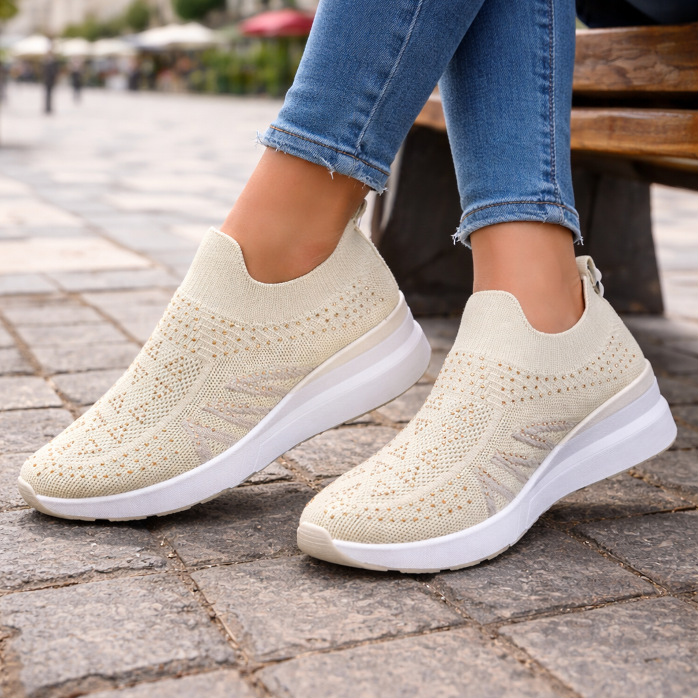 Ανατομικά Sneakers “Κάλτσα” με Στρας – Μπεζ / Μαύρο!!!7890-221