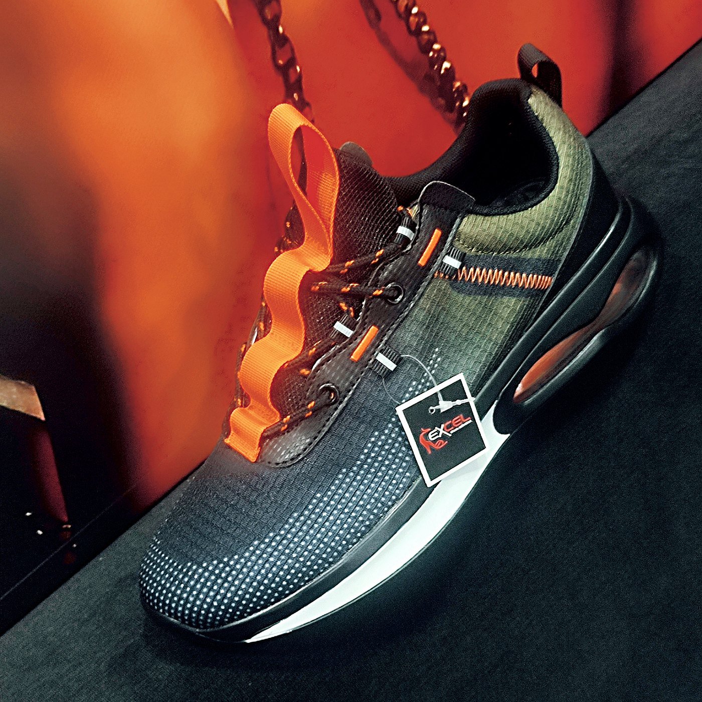 Ανδρικά αθλητικά παπούτσια για τρέξιμο & ορθοστασία σε πράσινο με μαύρο χρώμα,πορτοκαλί λεπτομέρειες.ανατομικά εσωτερικά πατάκια για βάδισμα,τρέξιμο, ορθοστασία & πέλμα αερόσολα ύψους 5εκ.ελαφρία παρέχουν προστάσια και άνεση στην καθημερινή ζώη.είναι κατασκευασμένα από ύφασμα που στεγνώνει γρήγορα και αναπνέει.σόλα που διαθέτει εξαιρετική πρόσφυση και αντοχή σε διάφορα εδάφη ,συμπεριλαμβανομένων των υγρών επιφανειών.φόρμα κανονική.