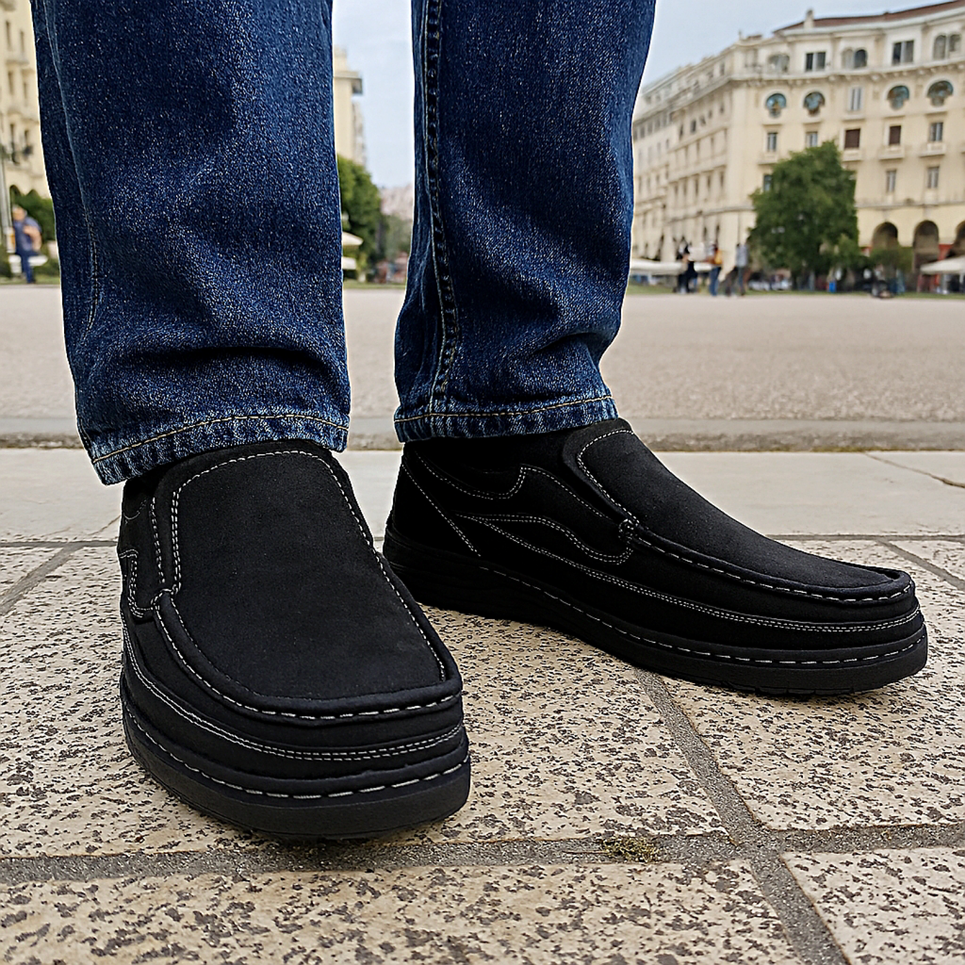 Κατασκευασμένα από μαλακό συνθετικό δέρμα άριστης ποιότητας και αντιολισθητική σόλα. Άνετα και πολύ μαλακά παπούτσια για δυναμικές καθημερινές εμφανίσεις, αφού έχουν αφρώδες εσωτερικό πάτο. Ευλύγιστα και κομψά παπούτσια για τον άντρα που δυσκολεύεται να βρει σε μεγάλο μέγεθος παπούτσι. Εξαιρετικό, μοντέρνο μοκασίνι για τις ιδιαίτερες εξόδους του.