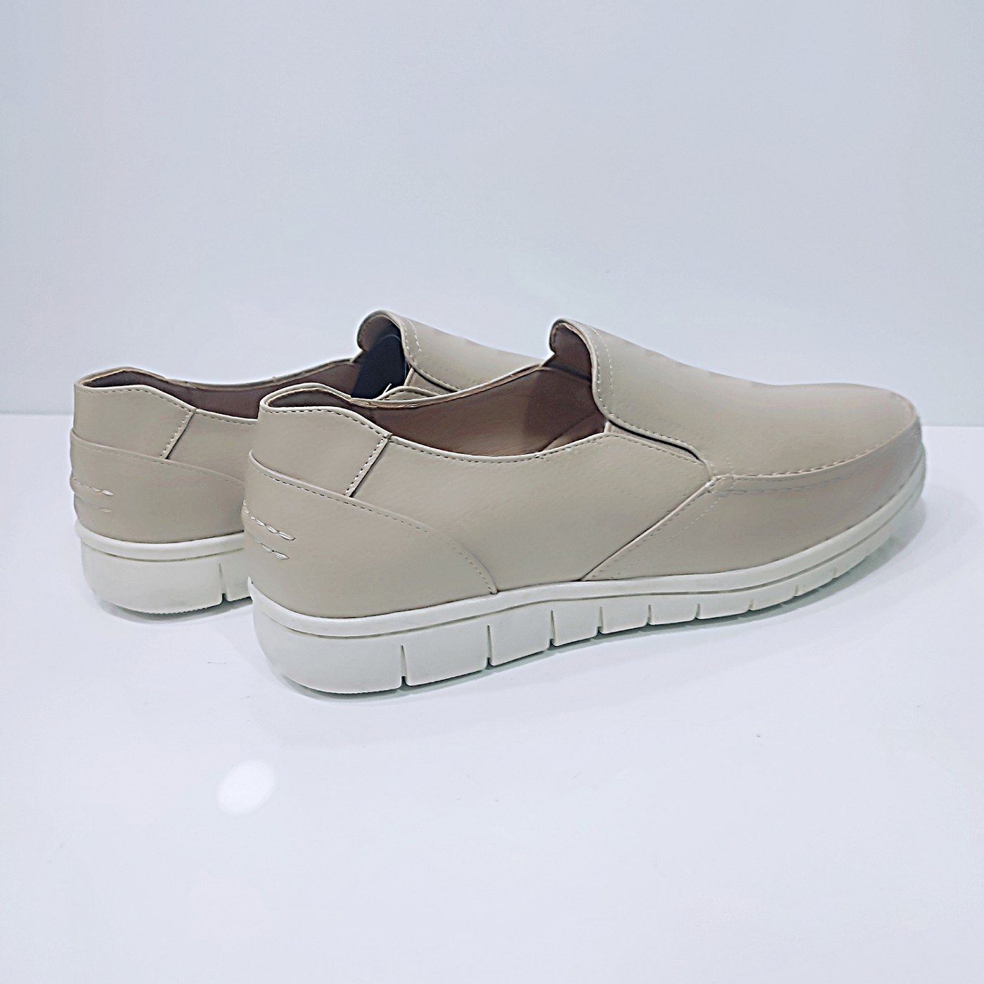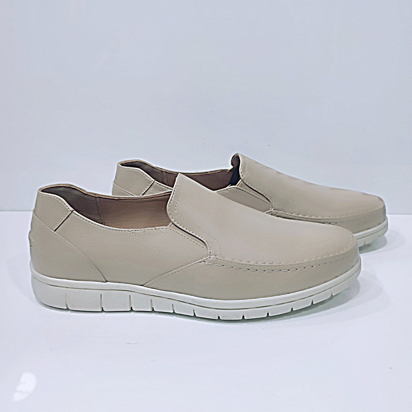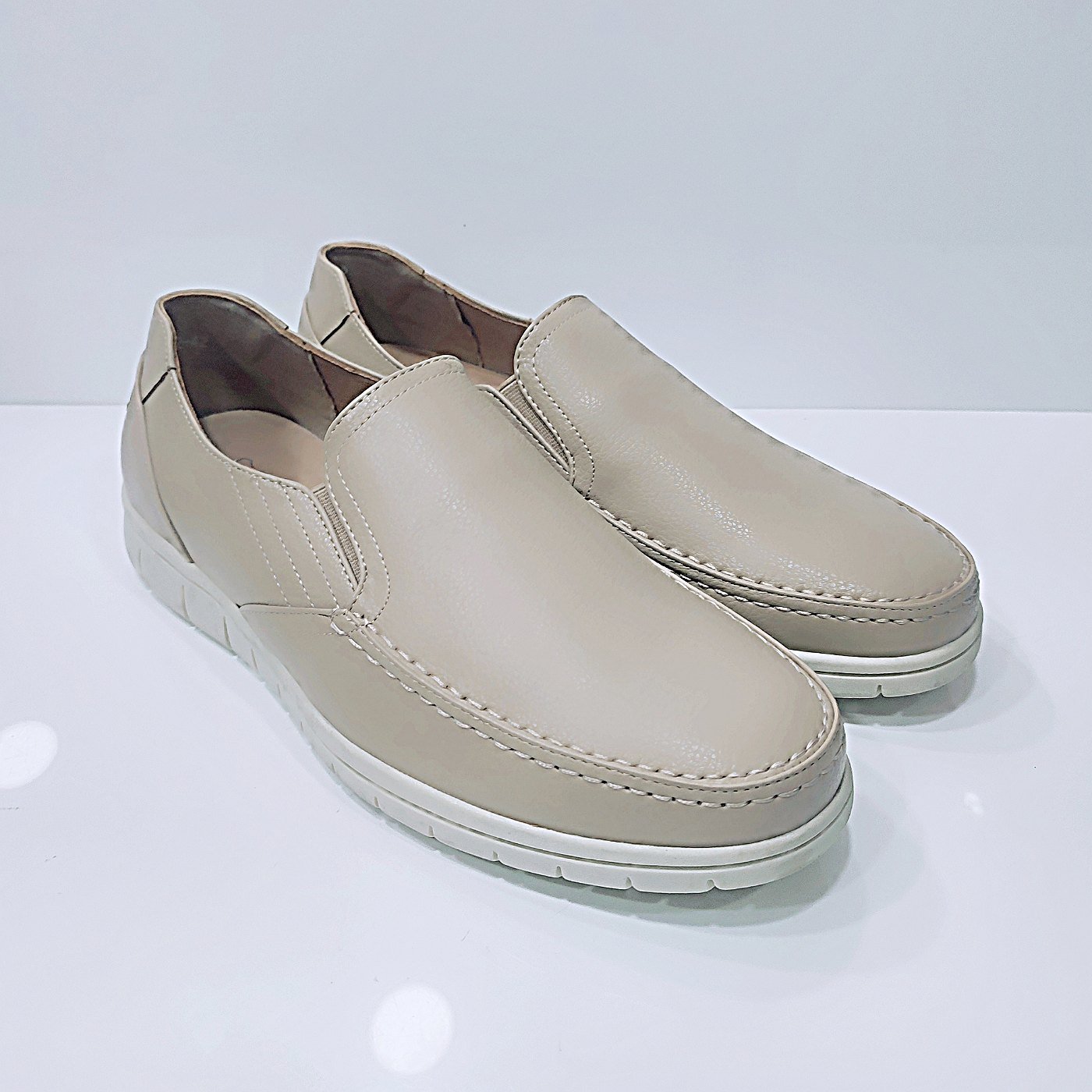 Ανδρικό μοκασίνι μπεζ και τρακτερωτή σόλα. Αγκαλιάζει το πόδι και το έξτρα μαξιλάρι στο πόδι του δίνει άνεση και στυλ. Υλικό κατασκευής τεχνόδερμα. Ύψος σόλας 3εκ. Φόρμα κανονική.