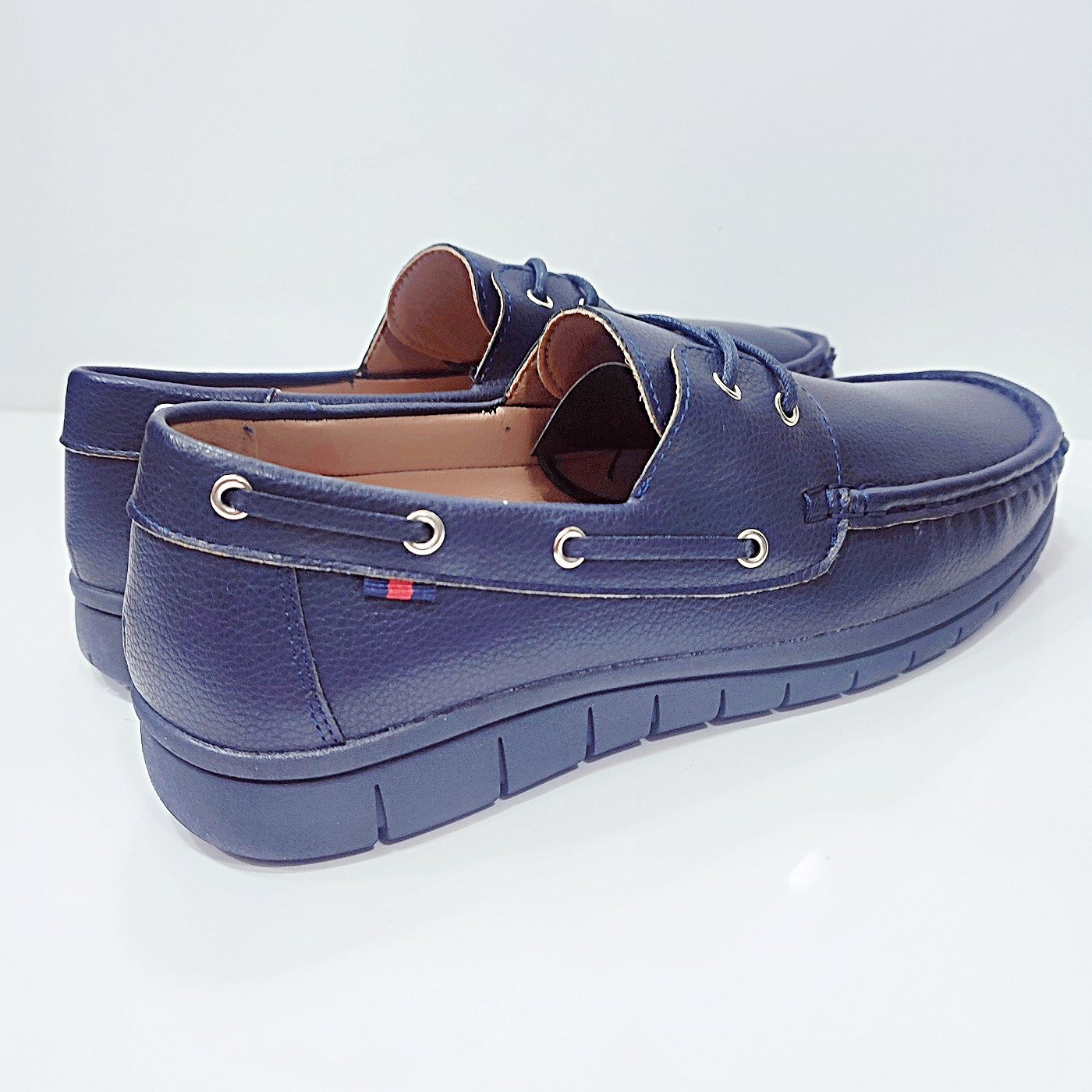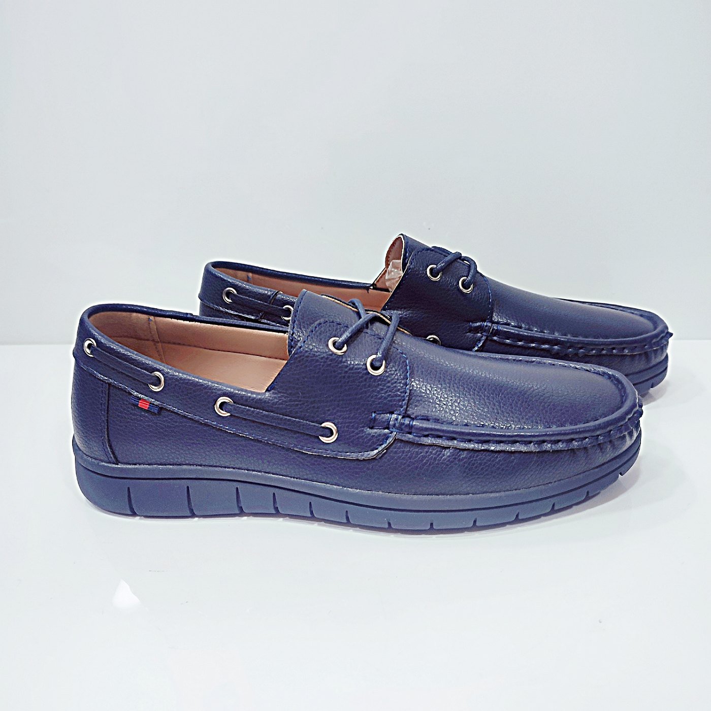 Ανδρικό μοκασίνι μπλε με κορδόνι λάστιχο και τρακτερωτή σόλα. Αγκαλιάζει το πόδι και το έξτρα μαξιλάρι στο πόδι του δίνει άνεση και στυλ. Το κορδόνι λάστιχο στο κουτεπιέ βοηθάει στην αυξομείωση για τα πιο φαρδιά κουτεπιέ. Υλικό κατασκευής τεχνόδερμα. Ύψος σόλας 3εκ. Φόρμα κανονική.