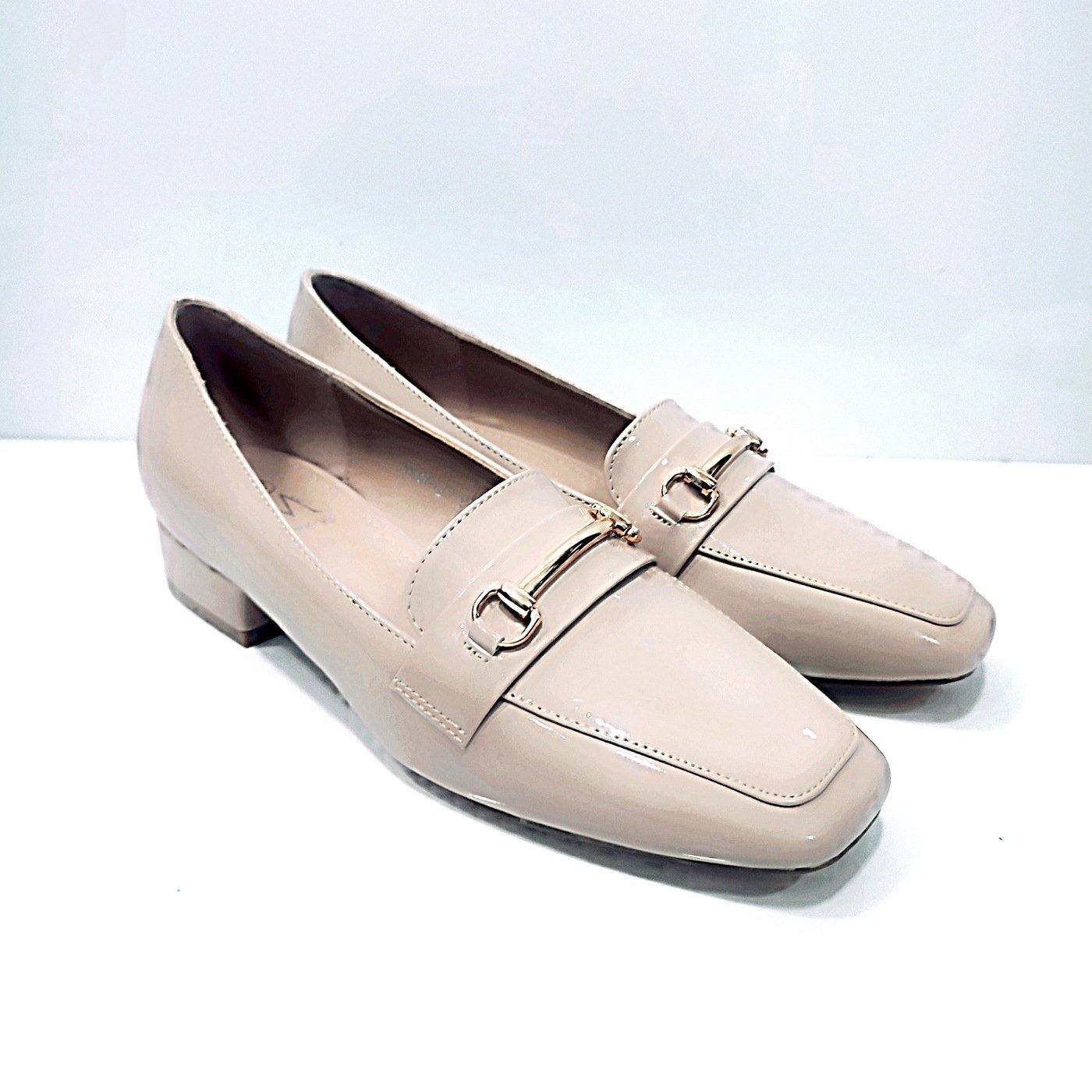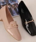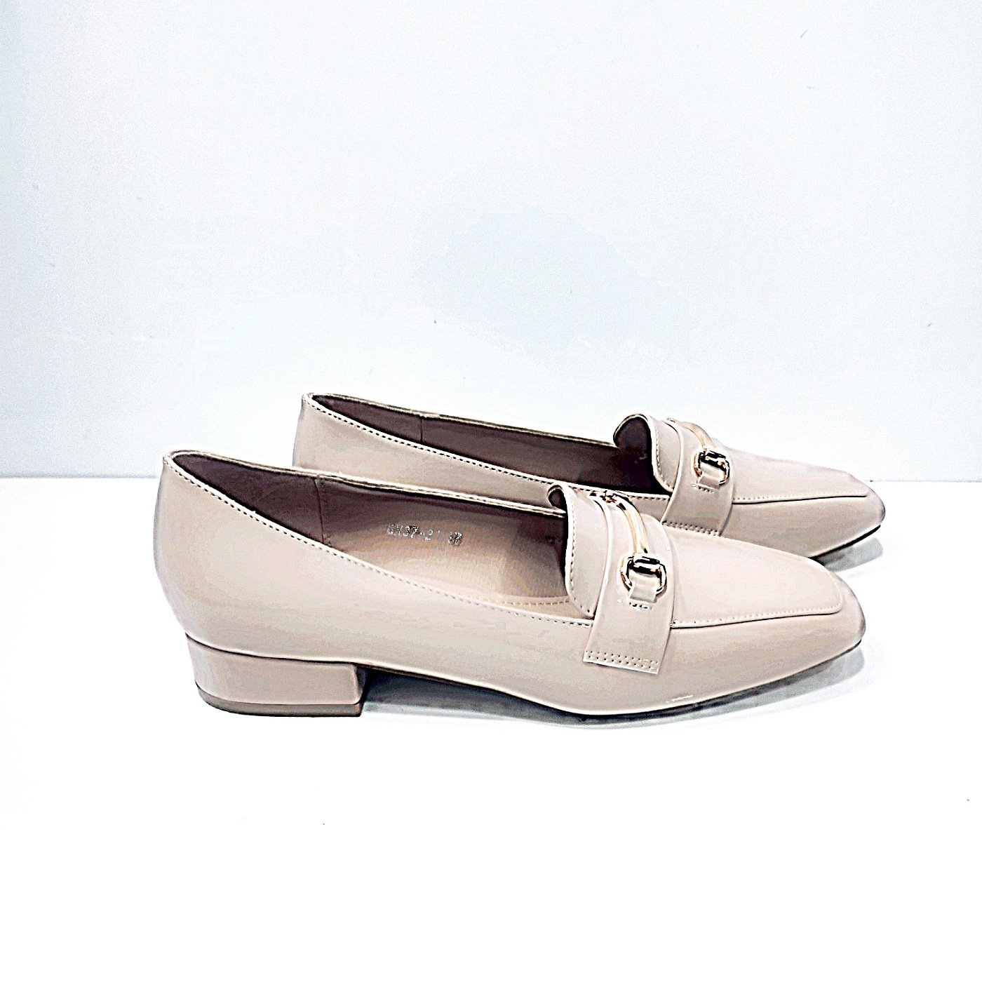 Γυαναικεία loafers με πέλμα ανατομικό μόνιμης κατασκευής σε χρώμα μπέζ,ιδανική επιλογή για όσους αναζητούν ενα παπούτσι που συνδυάζει την άνεση με την κομψότητα και μπορεί να φορεθεί σε διάφορες περιστάσεις.τετράγωνο τακούνι ύψους 3εκ επικαλυμμένο με το ίδιο λούστίν όπως κ σε όλη την επιφάνεια του παπουτσιού προσφέρει μια λαμπερή υφή και φινέτσα.σόλα αντιολισθητική και εύκαμπτη.χρυσή αγκράφα στο επάνω μέρος προσθέτει μια διακριτική πινέλιά στο στύλ σας.φόρμα κανονική.