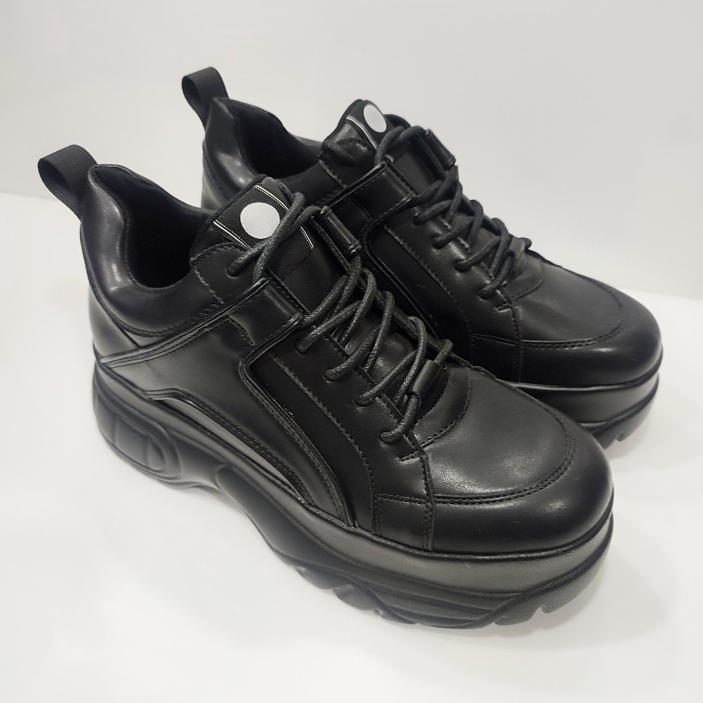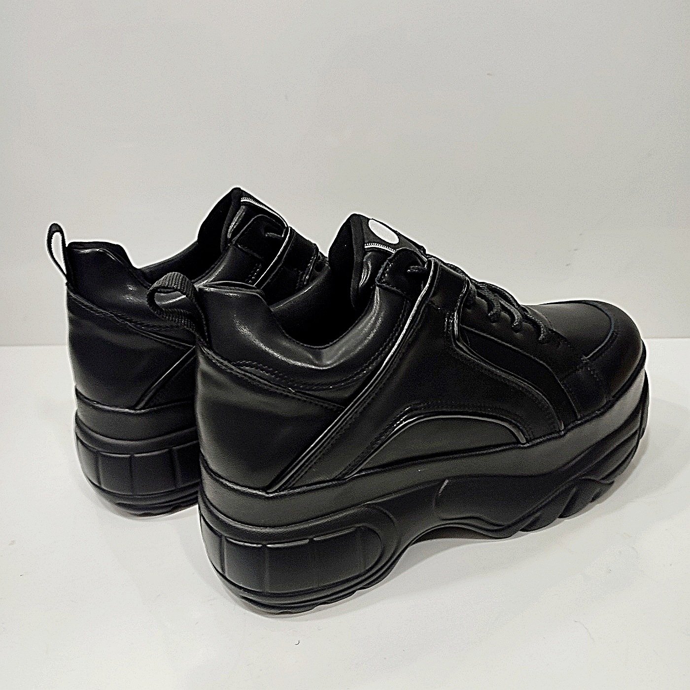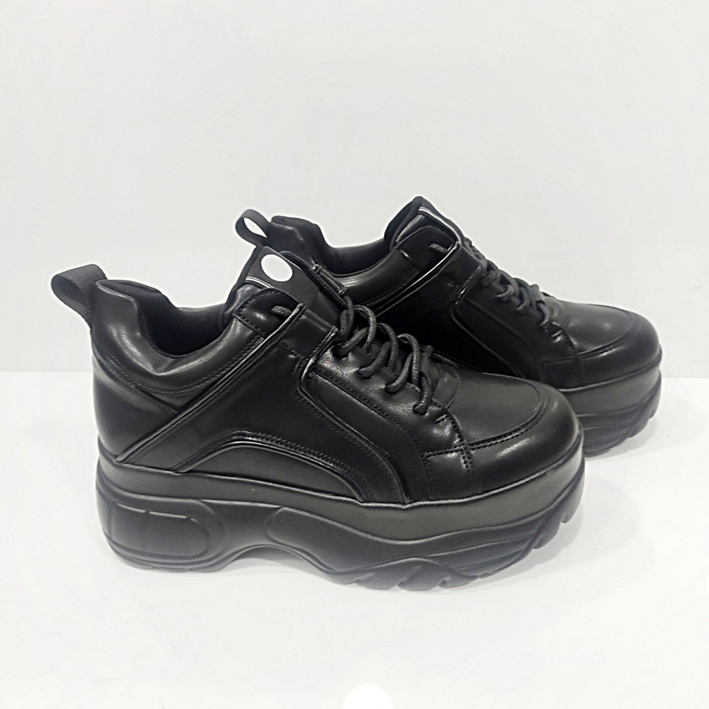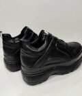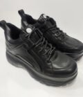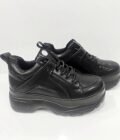 Γυναικεία δίπατα sneakers μαύρα με κορδόνια. Με μαλακό πέλμα και πολύ ελαφρύ στο βάδισμα. Ύψος σόλας 6 εκατοστά. Φόρμα κανονική.