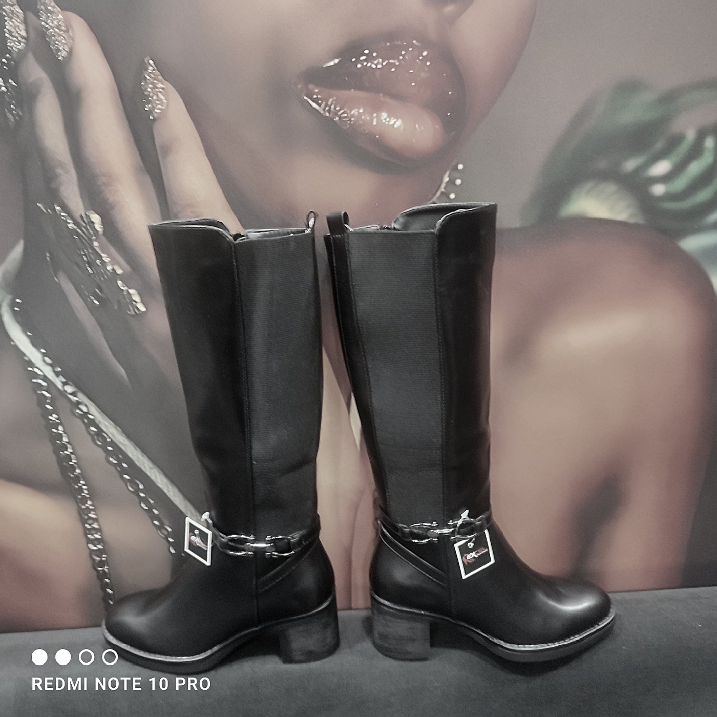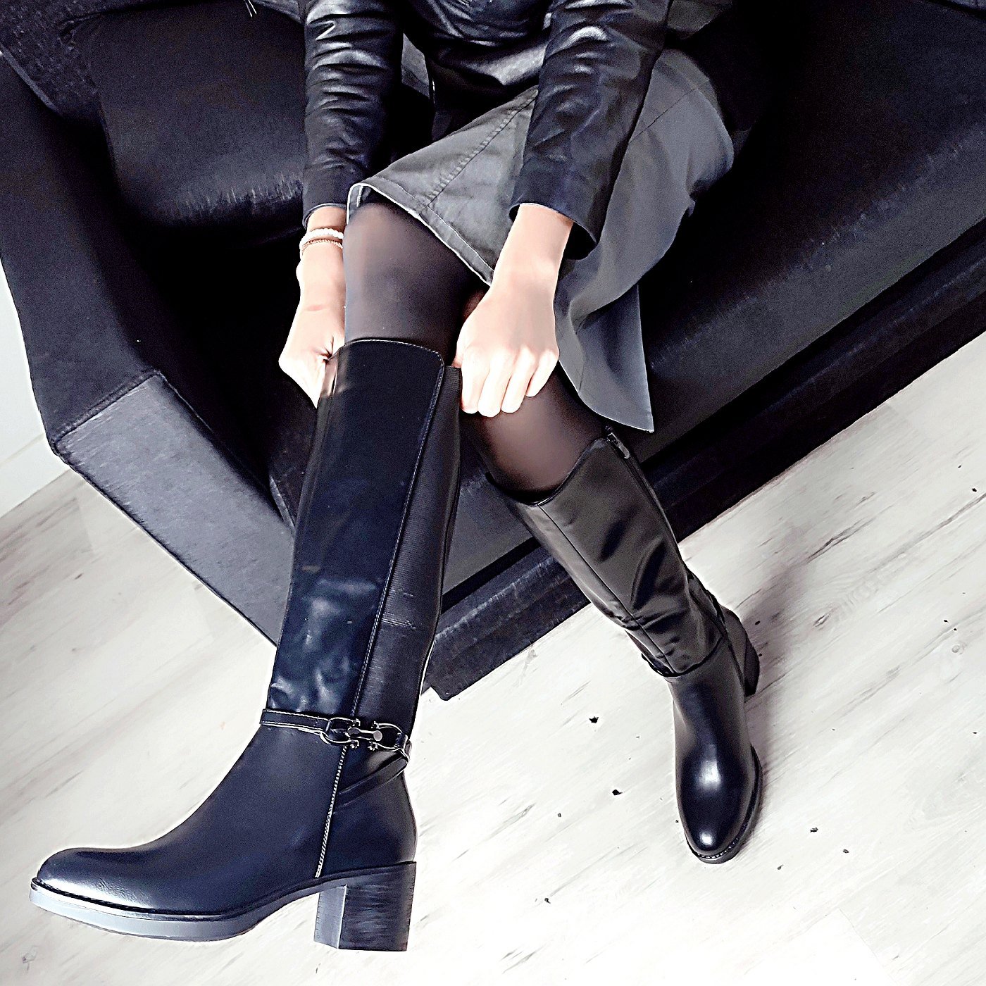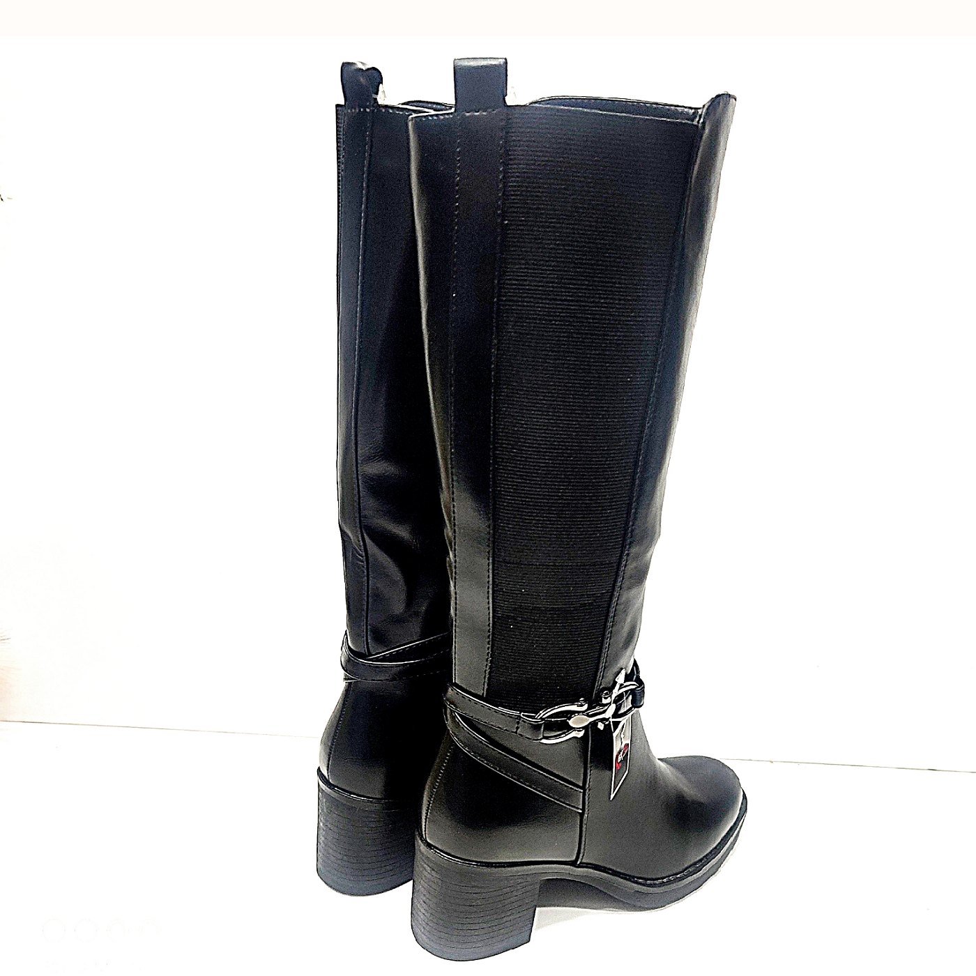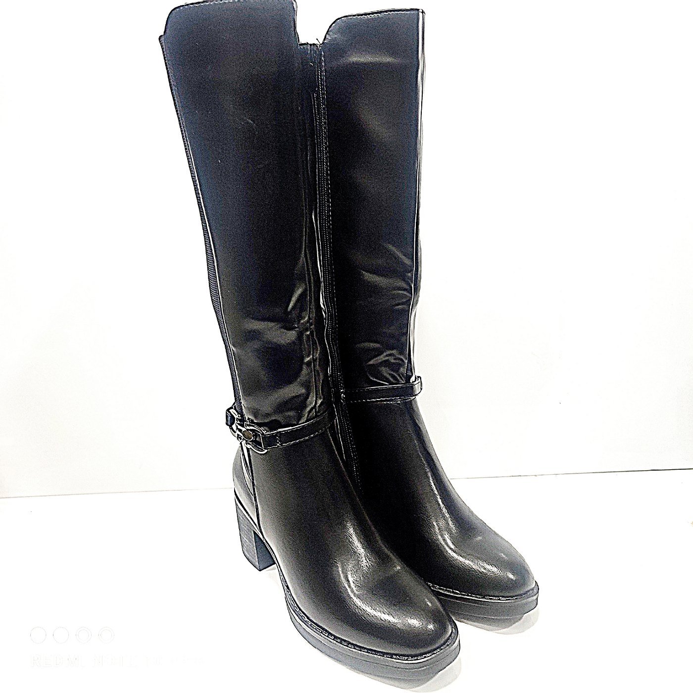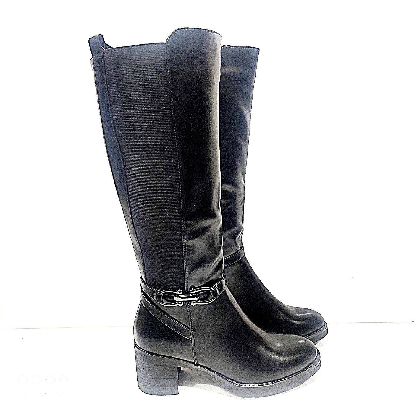 Γυναικεία μπότα σε μαύρο χρώμα με τετράγωνο τακούνι για περισσότερη ορθοστασία ύψος 6εκ.εσωτερική επένδυση.με λάστιχο στο πλάι για μεγαλύτερο άνοιγμα.διακοσμητική σε μαύρο χρώμα αγκράφα.εσωτερικό φερμουάρ.σόλα αντιολισθητική.στρόγγυλη μύτη στο τελείωμα για τις πιο κομψές σας εμφανίσεις.
