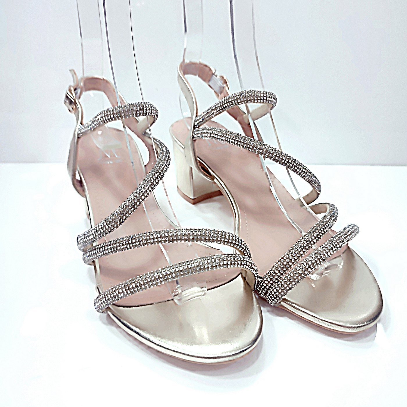 Γυναικεία πέδιλα με τετράγωνο τακούνι σε χρυσό χρώμα και strass!!!DMY280-22