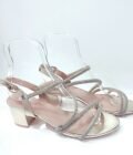 Γυναικεία πέδιλα με τετράγωνο τακούνι(ύψος 6,5εκ).σε χρυσό χρώμα.δέσιμο με μπαρέτα.ειδικό ενσωματωμένο μαξιλαράκι,αντιιδρωτικό πέλμα.έχει δύο φάσες απο strass για να αγκαλιαζει το κουτουπιέ