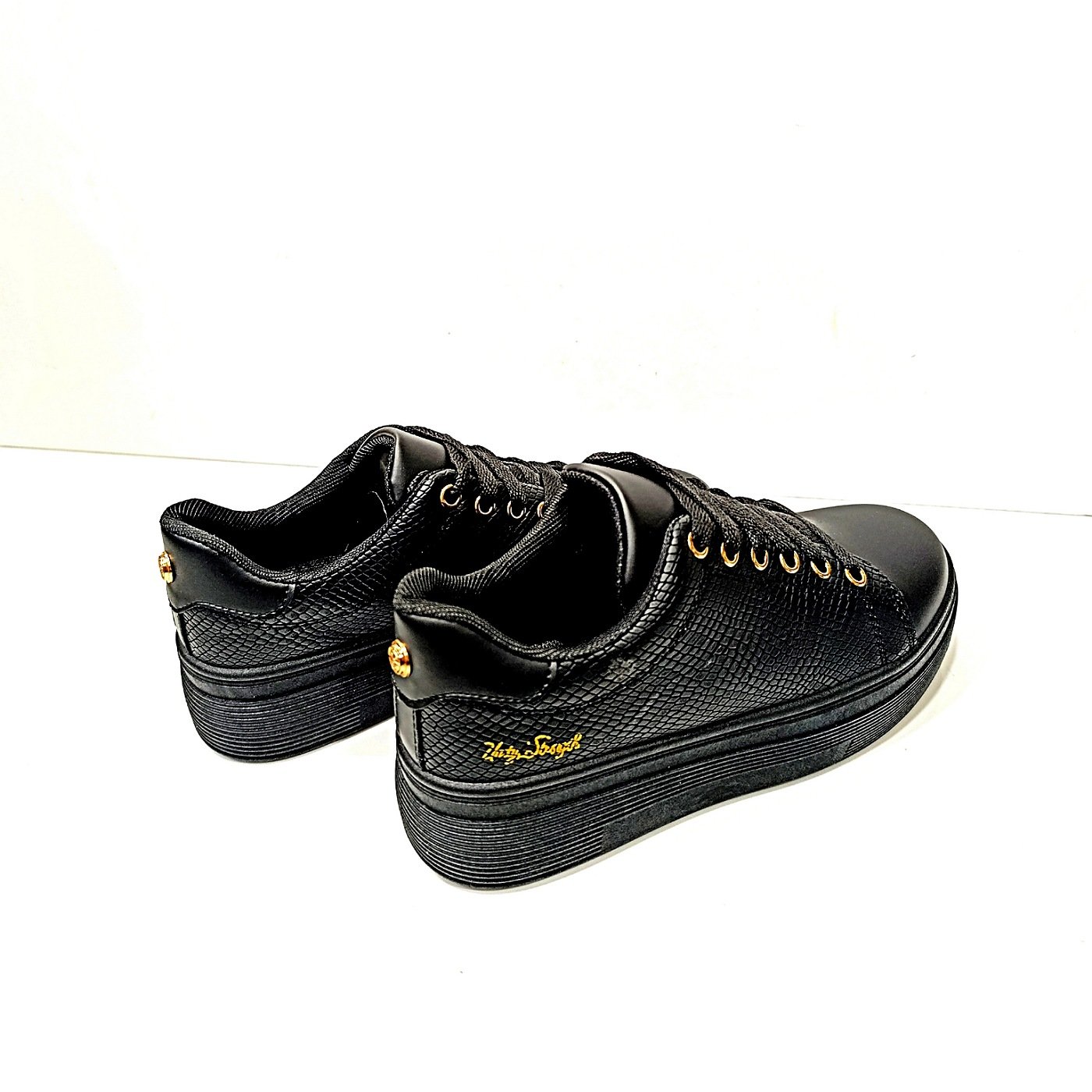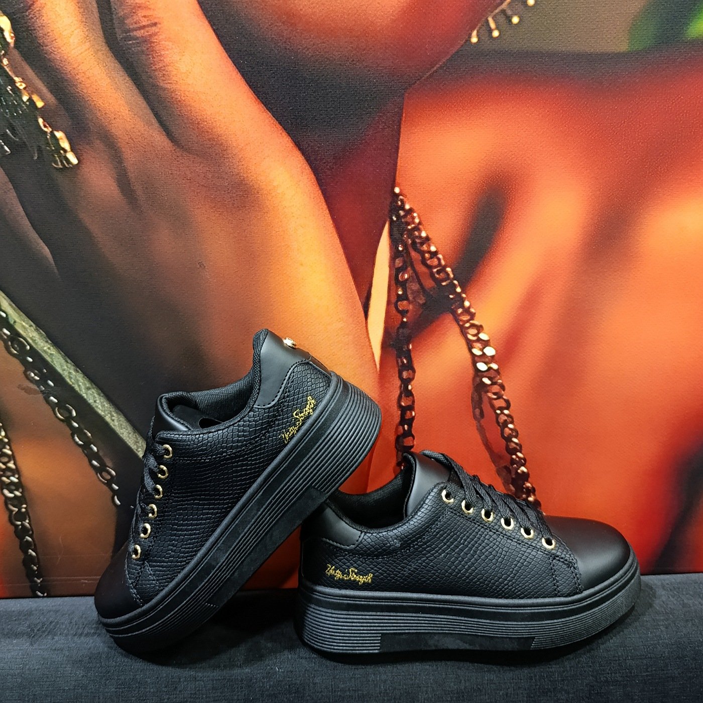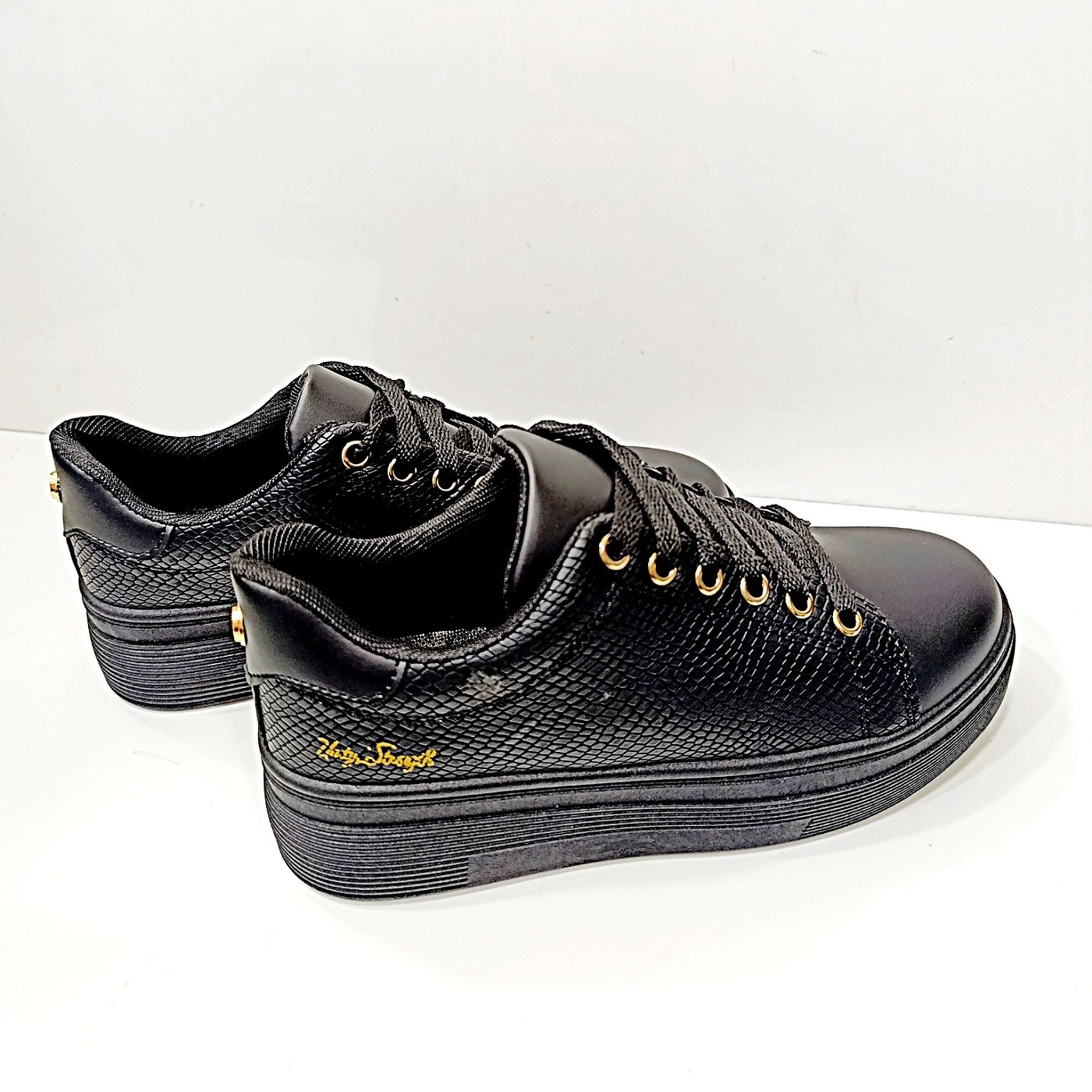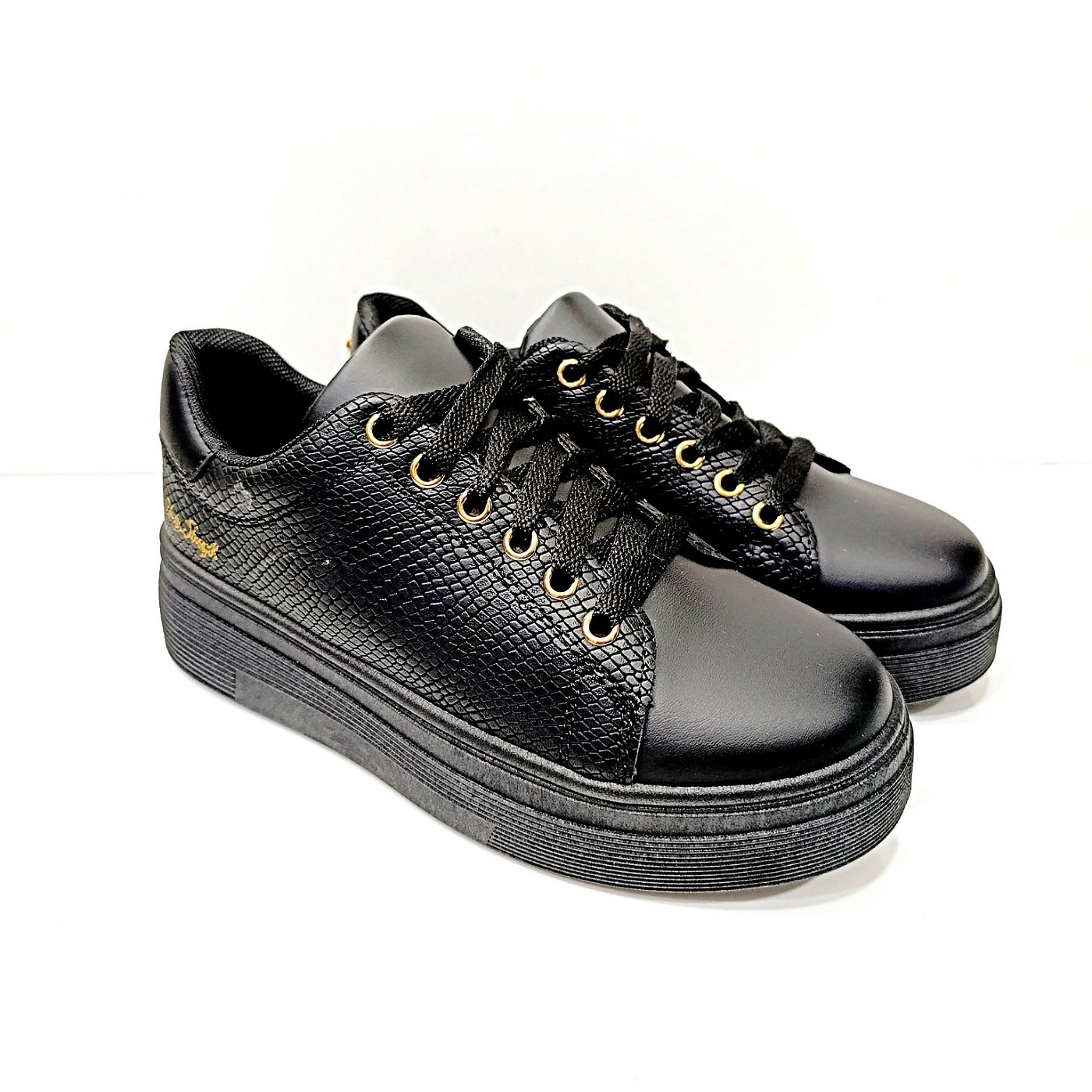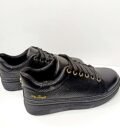 Γυναικεία σνίκερς σε μαύρο χρώμα με εσωτερικό αναπνέων ύφασμα.δετά για σταθερό κράτημα στο βάδισμα