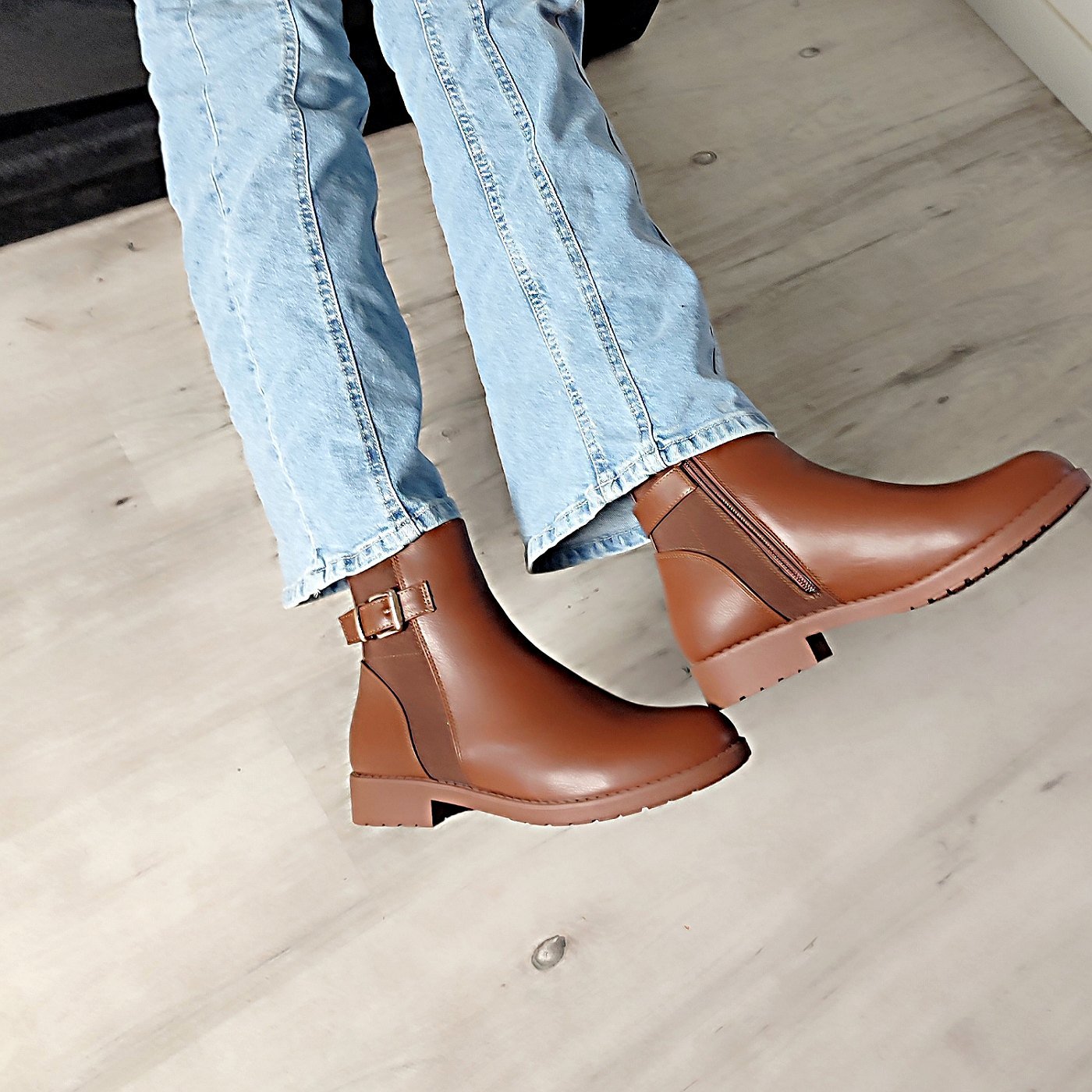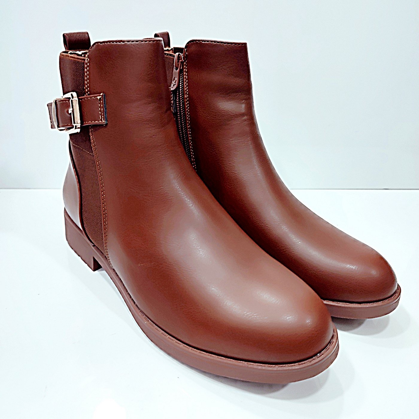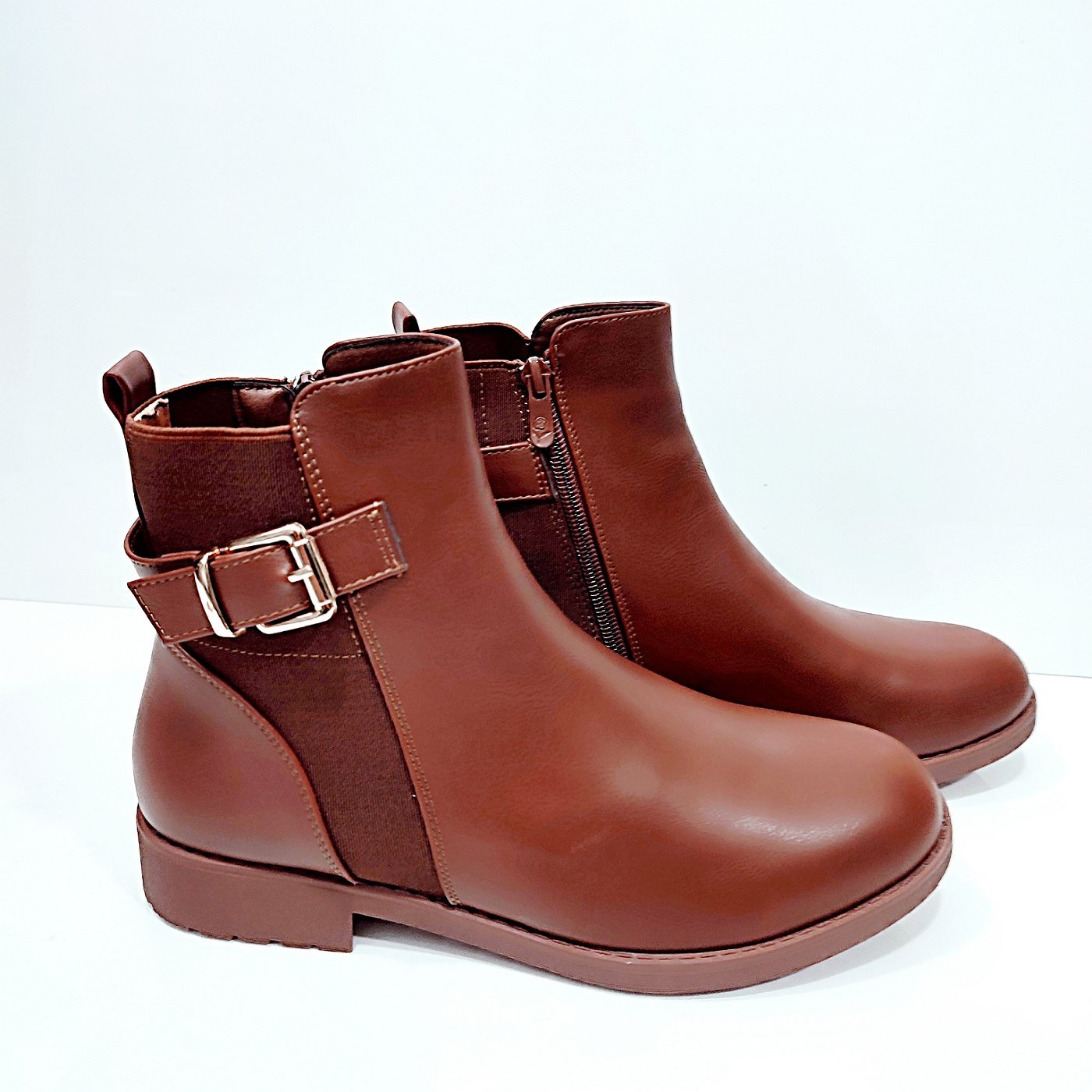 Γυναικεία χαμηλά μποτάκια σε καφέ χρώμα με λουράκι στο πλάι.εσωτερική επένδυση.χαμηλό τετράγωνο τακούνι ύψος 3εκ.ανάγλυφη σόλα από καουστούκ.στρόγγυλη μύτη.ελαστικότητα στο πλάι για καλύτερη κ πιο εύκολη εφαρμογή.σύστημα κλεισίματος με φρεμουάρ.φόρμα κανονική.