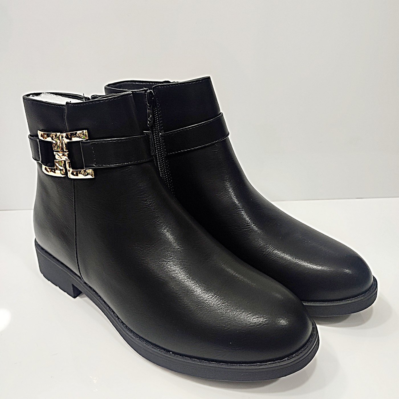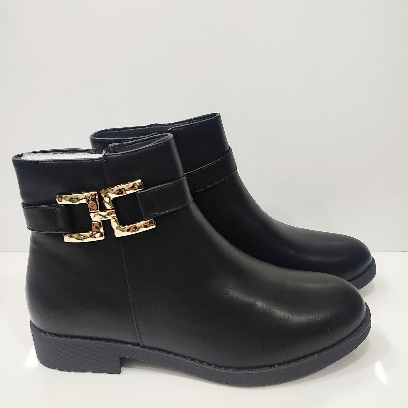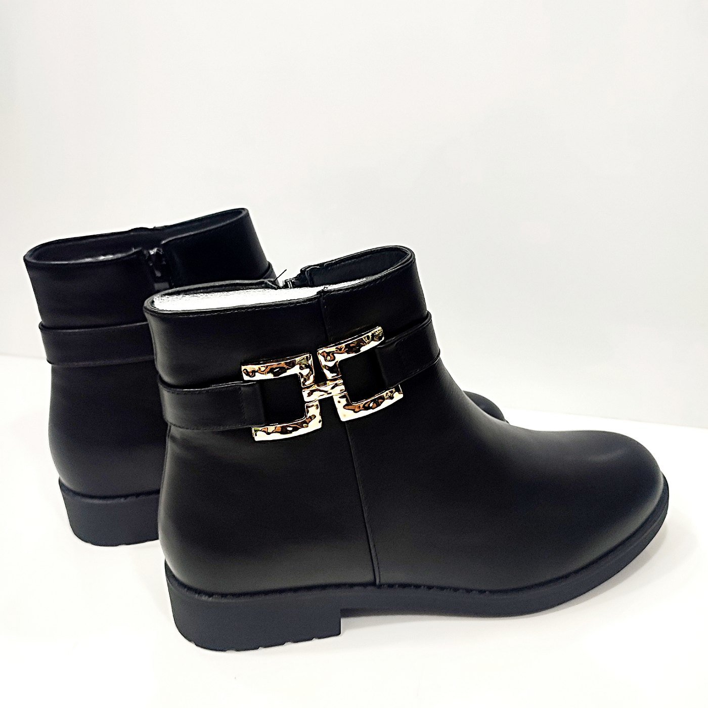Γυναικεία χαμηλά μποτάκια σε μαύρο χρώμα με λουράκι στο πλάι&χρυσή αγκράφα!!!DM777-6