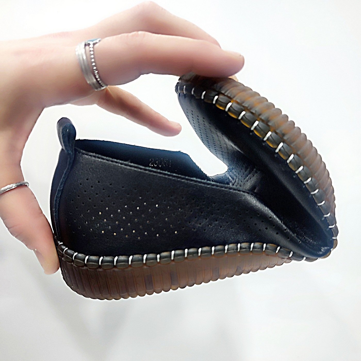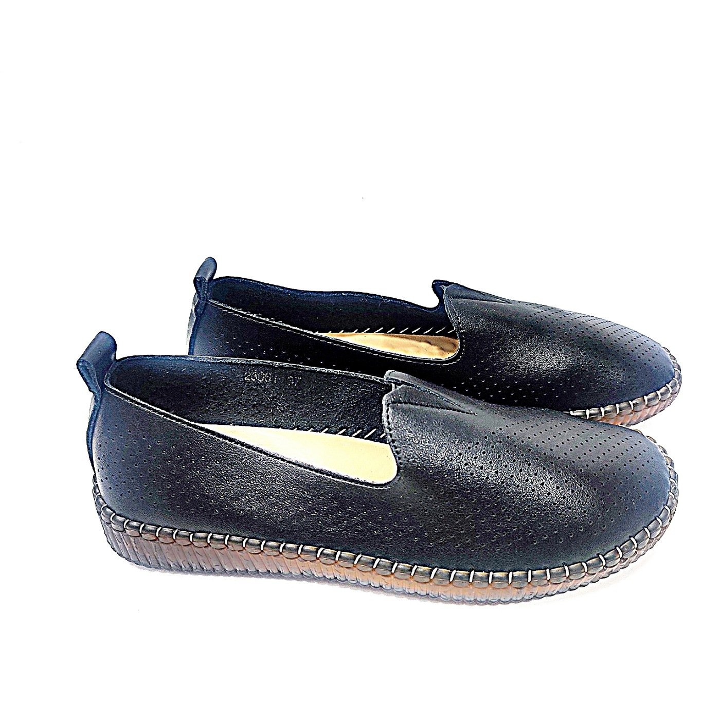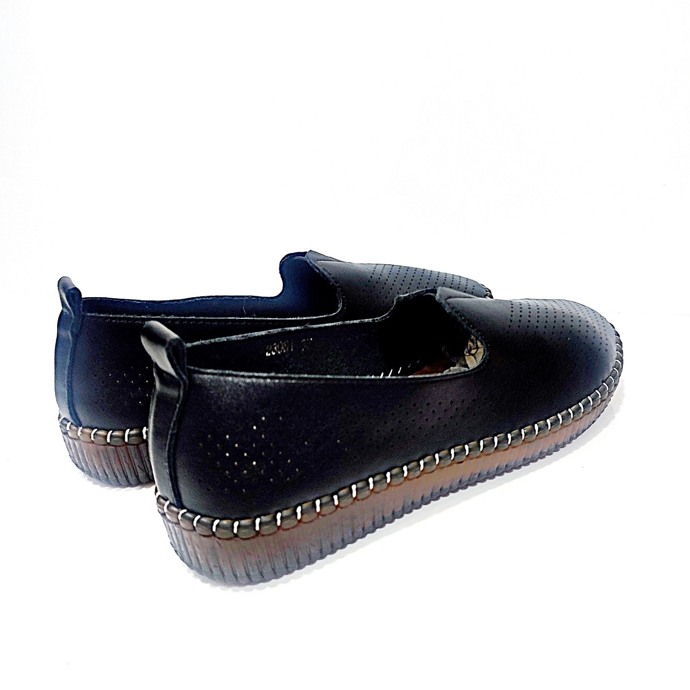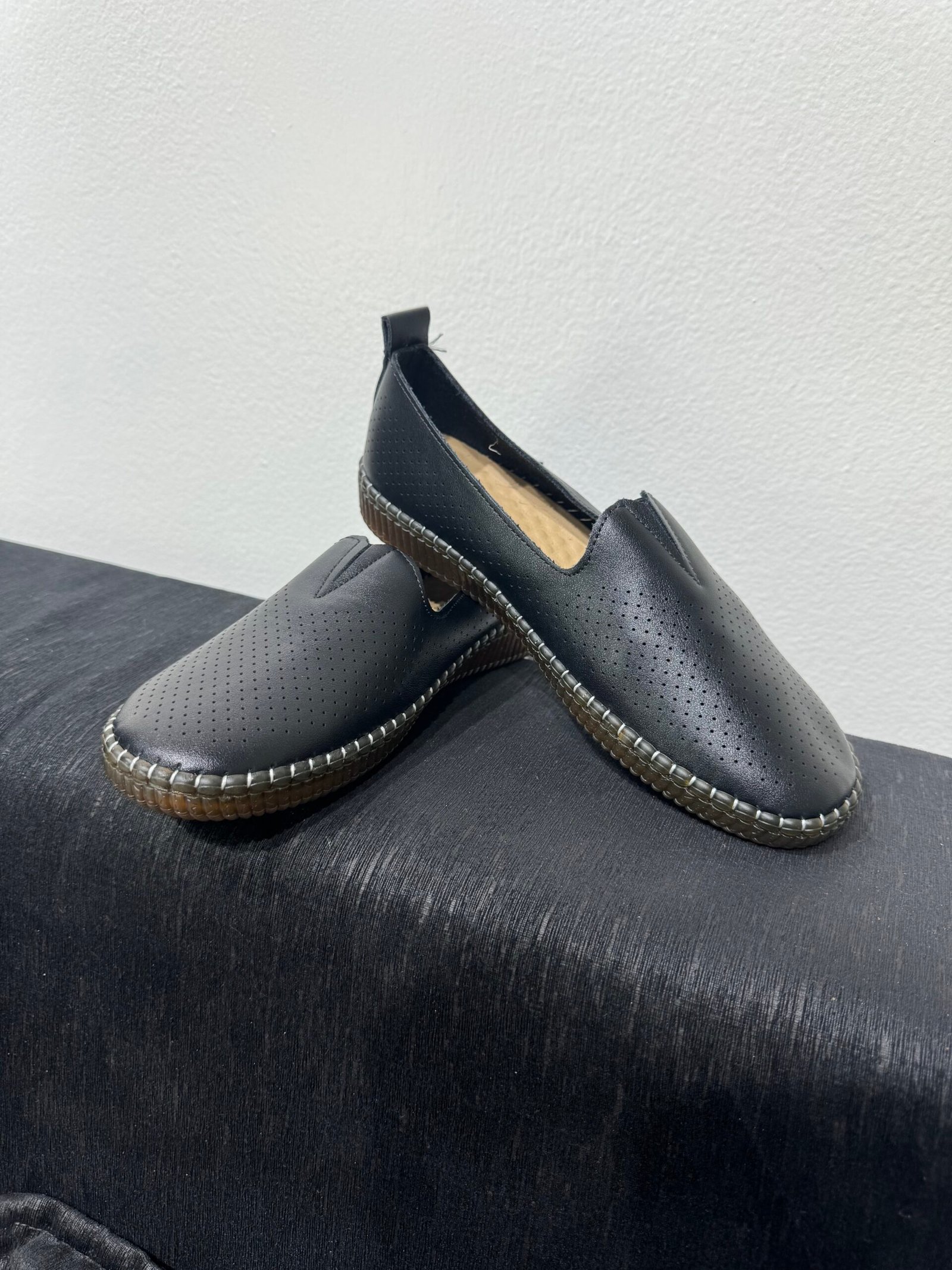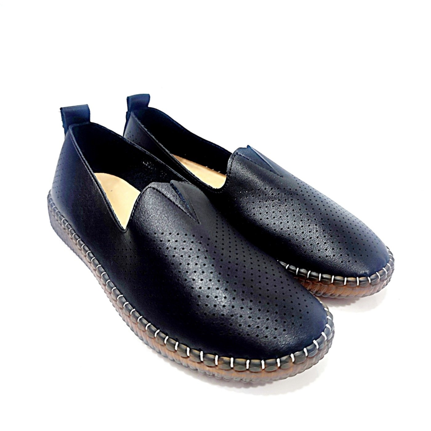 Γυναικεία flat open work shoes σε μαύρο χρώμα.Μία μοντέρνα εκδοχή ενός γνωστού σε ολούς ανατομικό σχέδιο.το πάνω μέρος είναι από μαλακό δέρμα εξαιρετικής ποιότητας,στην μέση υπάρχει λάστιχο για ευκολότερη εφαρμογή και ευκολία.ιδιαιτερότητα του συγκεκριμένου σχεδίου είναι το τρυπητό πάνω μέρος το οποίο προσφέρει ακόμη περισσότερη δροσιά το καλοκαίρι.Διαθέτει πολύ ελαφριά ανατομικη σόλα ιδανικά να τα φοράτε όλη την ημέρα.το υλικό της σόλας είναι αντιολισθητικό & εύκαμπτο φυσικό λάστιχο κάτι το οποίο εγγυάται σταθερό αναπαύτικο βάδισμα.παράλληλα η σόλα είναι βουρτσιστή ώστε να τονίζεται ο sport χαρακτήρας του.Ενα νεανικό πανάλαφρο μόντελο το οποίο μπορεί να φορεθεό την Ανοιξη & το Καλοκαίρι.