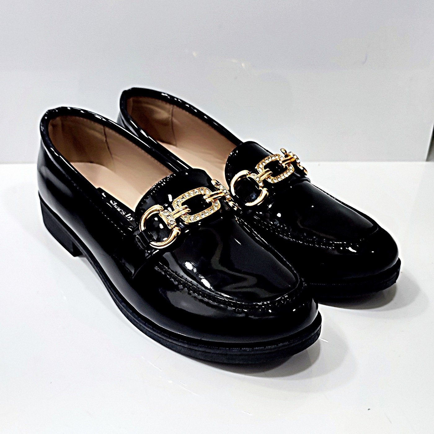 Λουστρίν Μοκασίνια Μαύρα με χρυσή Αγκράφα!!!XY-701
