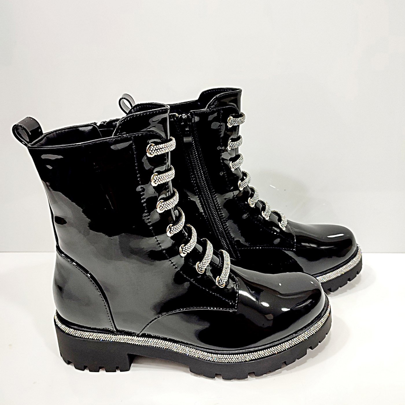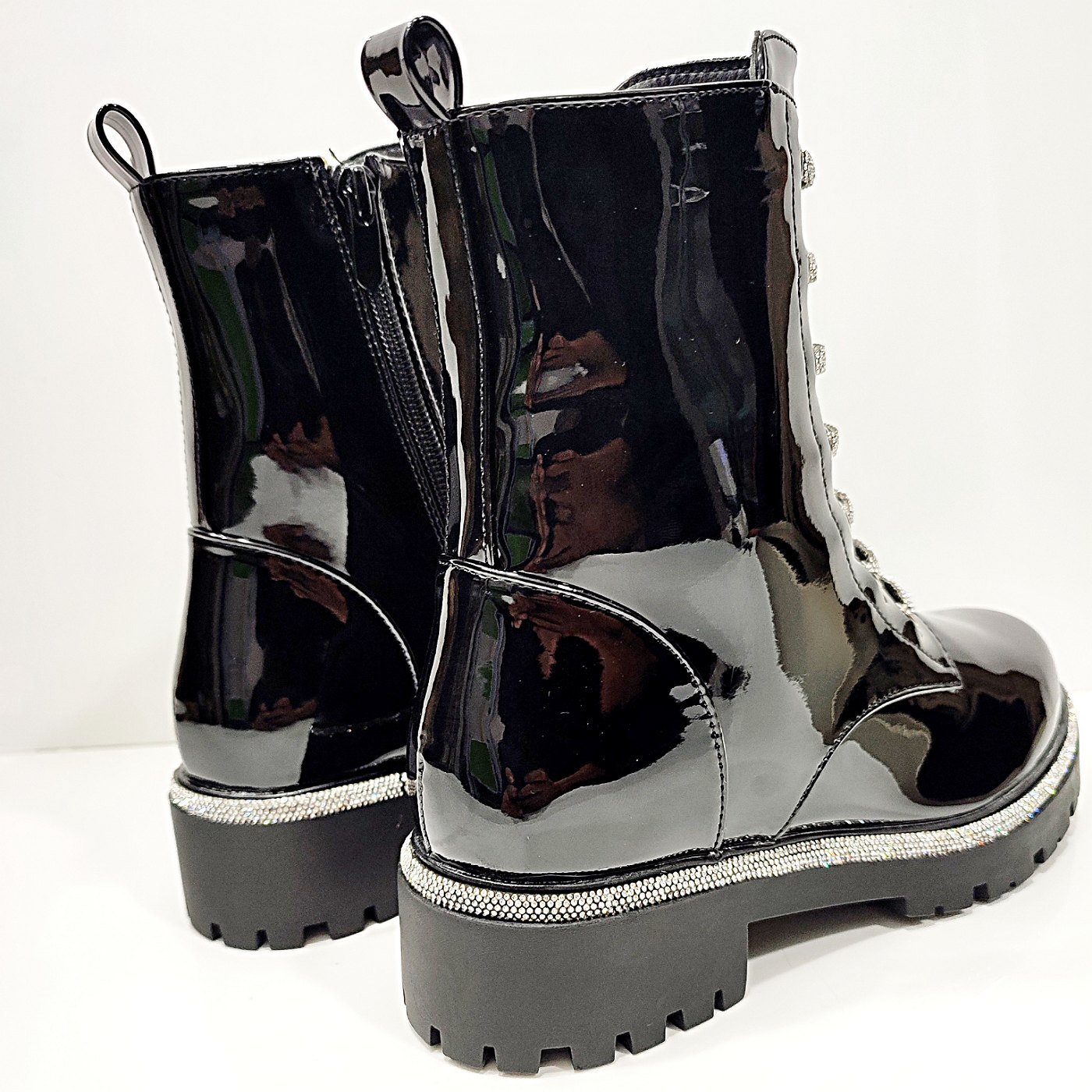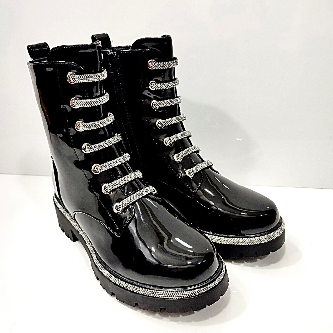 Γυναικείο μποτάκι λουστρίν σε μαύρο χρώμα με ασημι στράς!!!AM7518