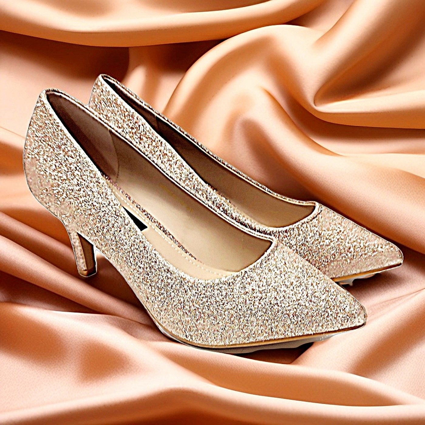 Υπέροχες γόβες με λαμπερό μεταλιζέ ύφασμα και σταθερό λεπτό τακούνι για άνετες εξόδους. Μια in -fashion πρόταση με θηλυκό σχέδιο που θα εντυπωσιάζει σε κάθε σας βήμα. Διαθέτουν κλειστή μύτη και σταθερό λεπτό τακούνι 7 εκατοστών, με αποτέλεσμα το άνετο περπάτημα.Υπέροχες και θηλυκότατες γόβες για πολύωρες εξόδους. Στιλάτα και ποιοτικά παπούτσια για άνετες εμφανίσεις . Συνδυάζονται εύκολα με κάθε ενδυματολογική σας επιλογή.
