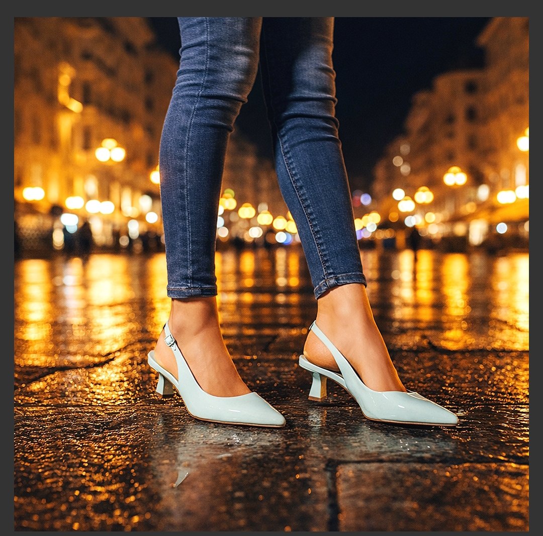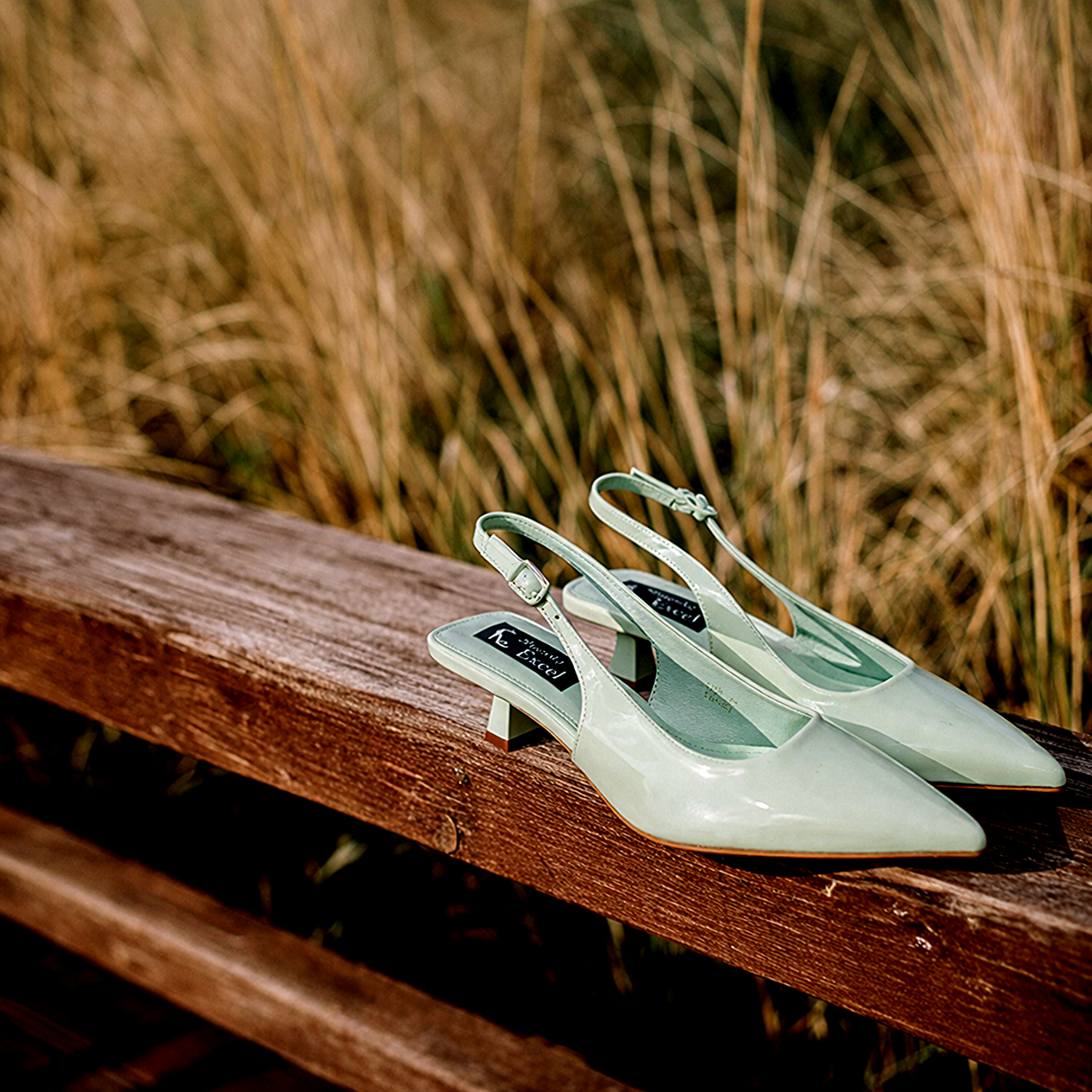 Γόβες Slingback Λουστρίνι με Sculptural Τακούνι – Pistachio color!!!5552