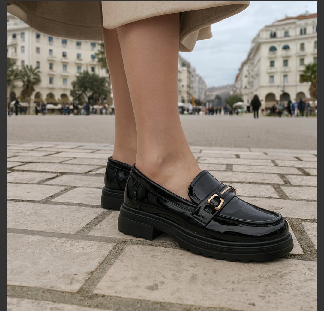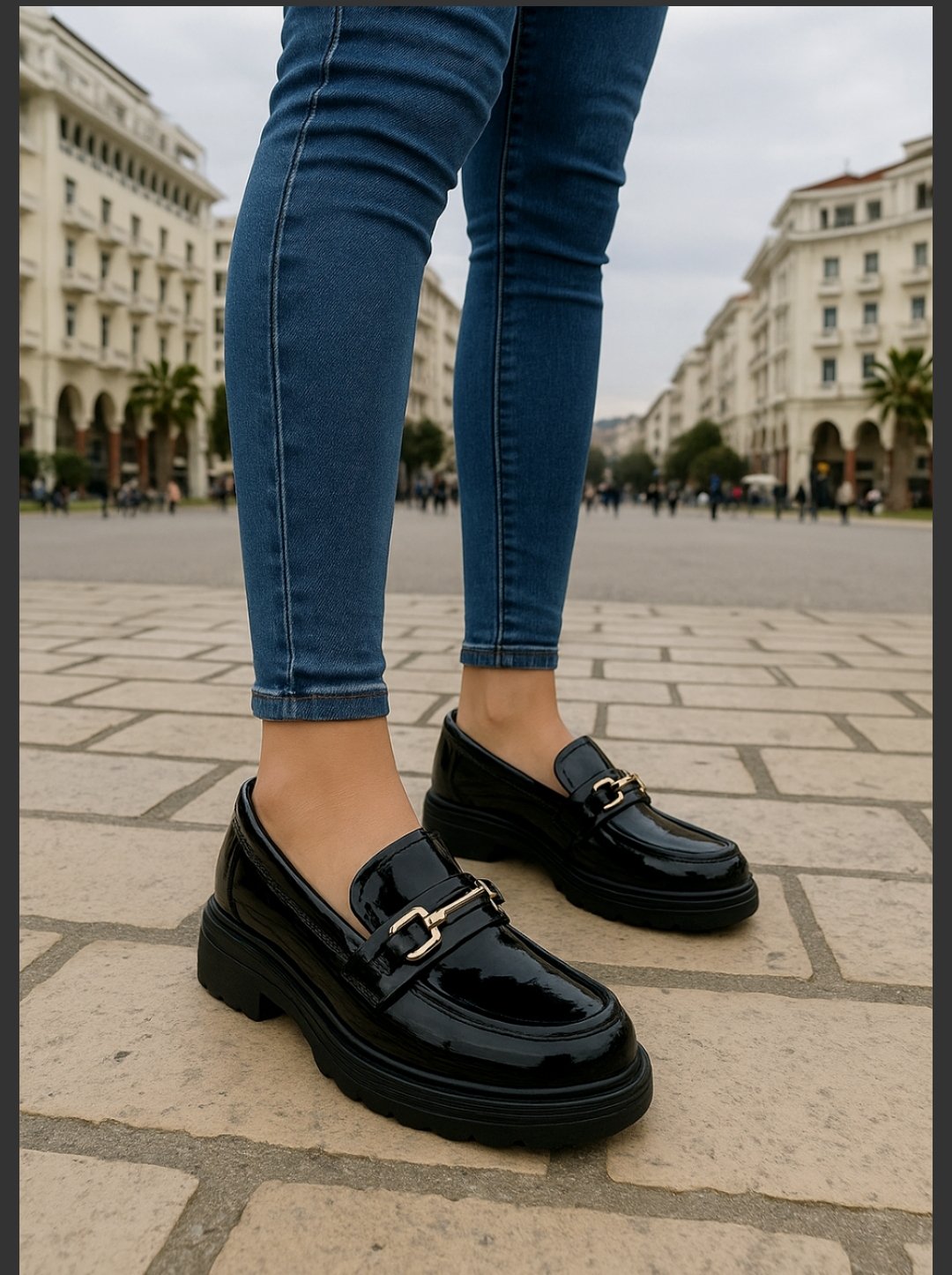“Λουστρίνι μαλακά loafers”παπούτσια που συνδυάζουν την γυαλιστερή όψη του λουστρινιού υλικού με την ανατομική και άνετη κατασκευή των loafers, διαθέτοντας μαλακό πάτο, αντιολισθητική σόλα και διακοσμητικά στοιχεία προσφέροντας στυλ και άνεση!!!