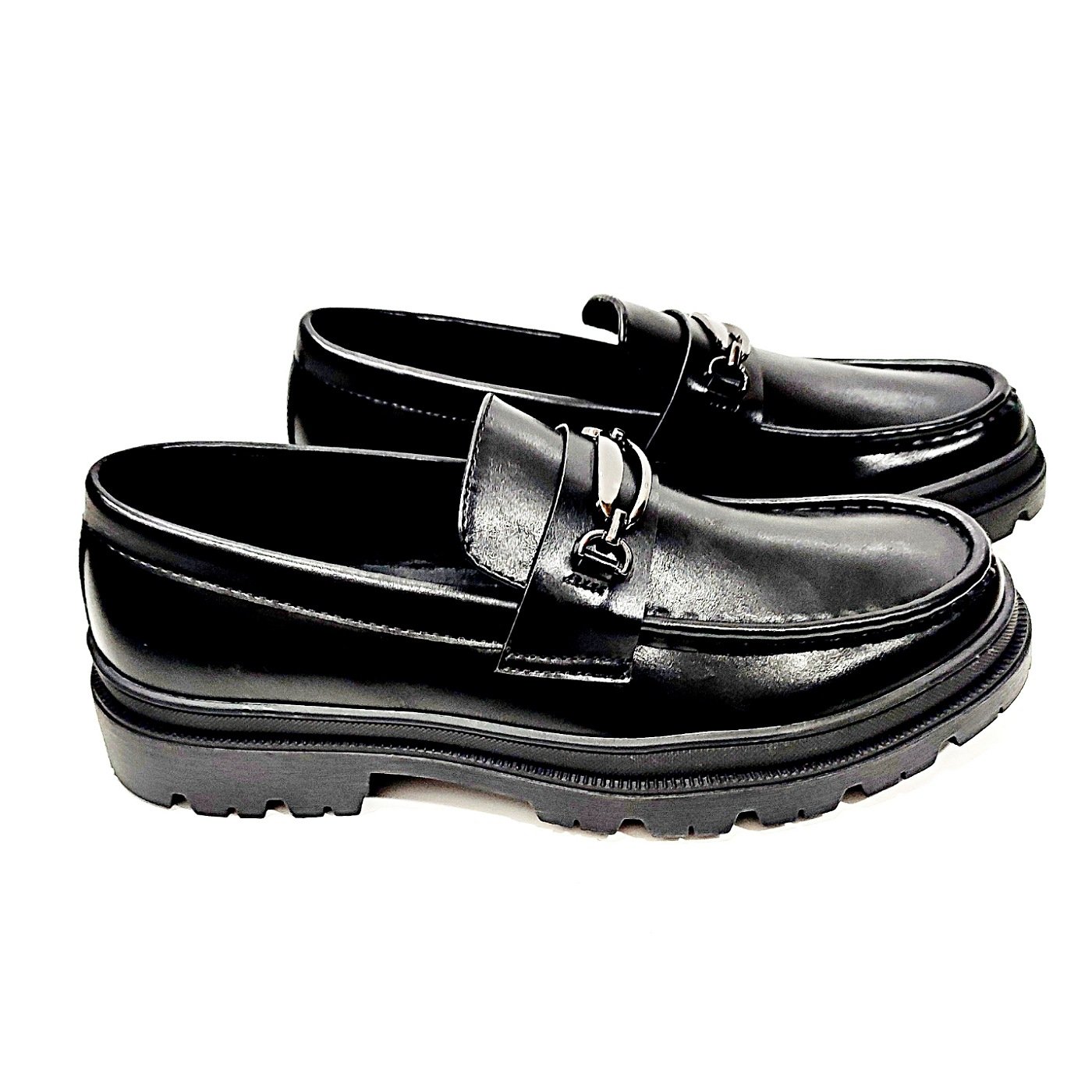 Λόφερς το απόλυτω μάτ εντυπωσιακό μαύρο χρώμα,ανθρακή διακοσμητική αγκράφα.άνω μέρος υλικό δέρματος υψηλής ποιότητας,εσωτερικό μέρος επένδυση σκληρή φόρδρα.διαθέτει μαλάκό, ανατομικό πέλμα για άνετο πολύωρο βαδισμα και ορθοστασία.τρακτερωτή σόλα από καουτσούκ.φόρμα κανονική.