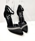 Μαύρες γόβες σουέτ με στράς & ρυθμιζόμενο λουράκι!!!DF-99431-92