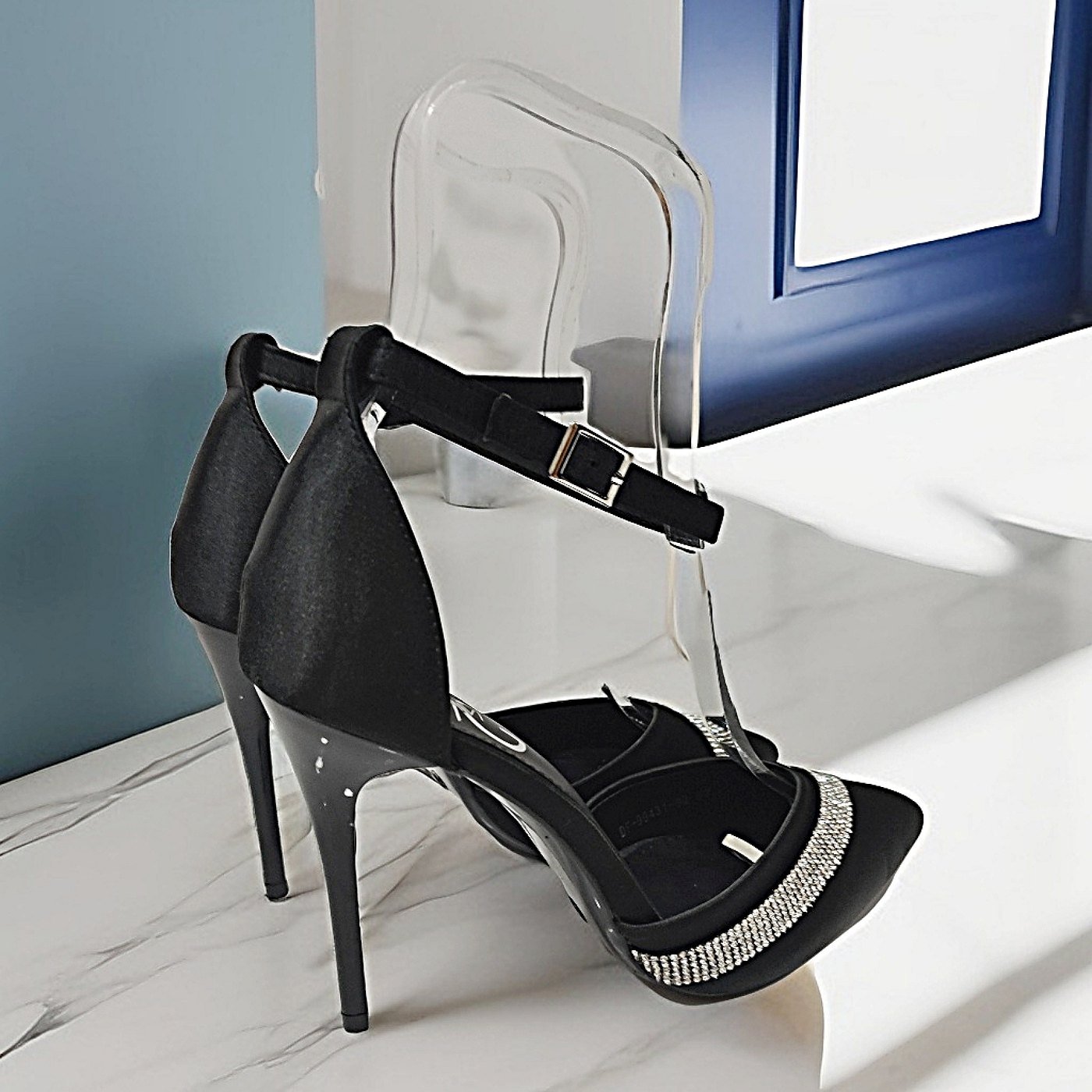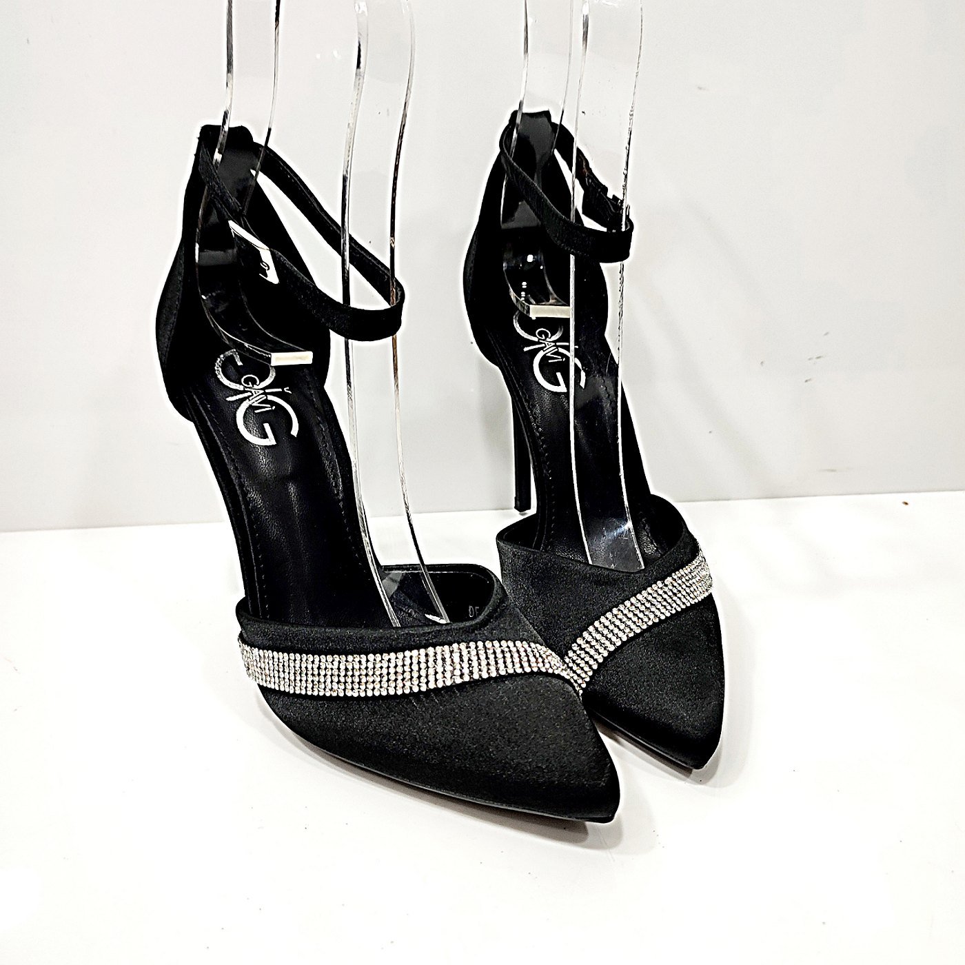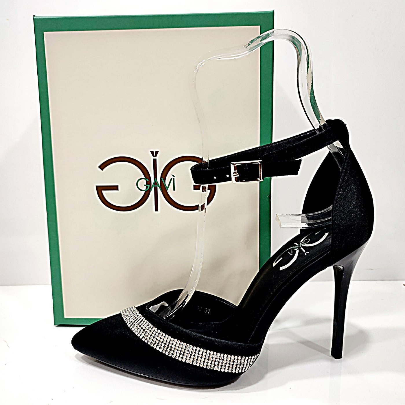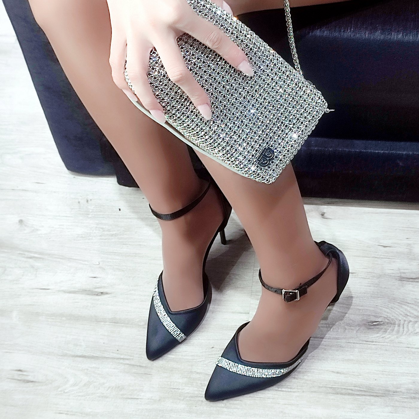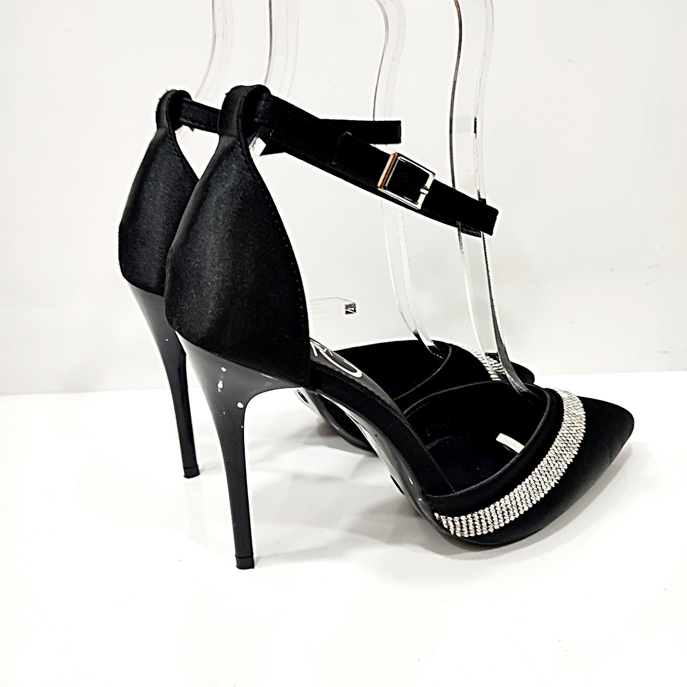 Μαύρες γόβες σουέτ με στράς & ρυθμιζόμενο λουράκι.ενσωματωμένο & αντιιδρωτικό πέλμα-μαξιλαράκι.κλείσιμο με μπαρέτα.εντυποσιακό λουστρίν τακούνι.αντιολισθητική σόλα.τακούνι στιλέτο 10 εκ.Μπορούν να φορεθούν με μίντι φόρεμα για chic εμφανίσεις που θα μαγνητίσουν τα βλέμματα αλλα και με παντελόνι δημιουργώνταςαντίθεση.