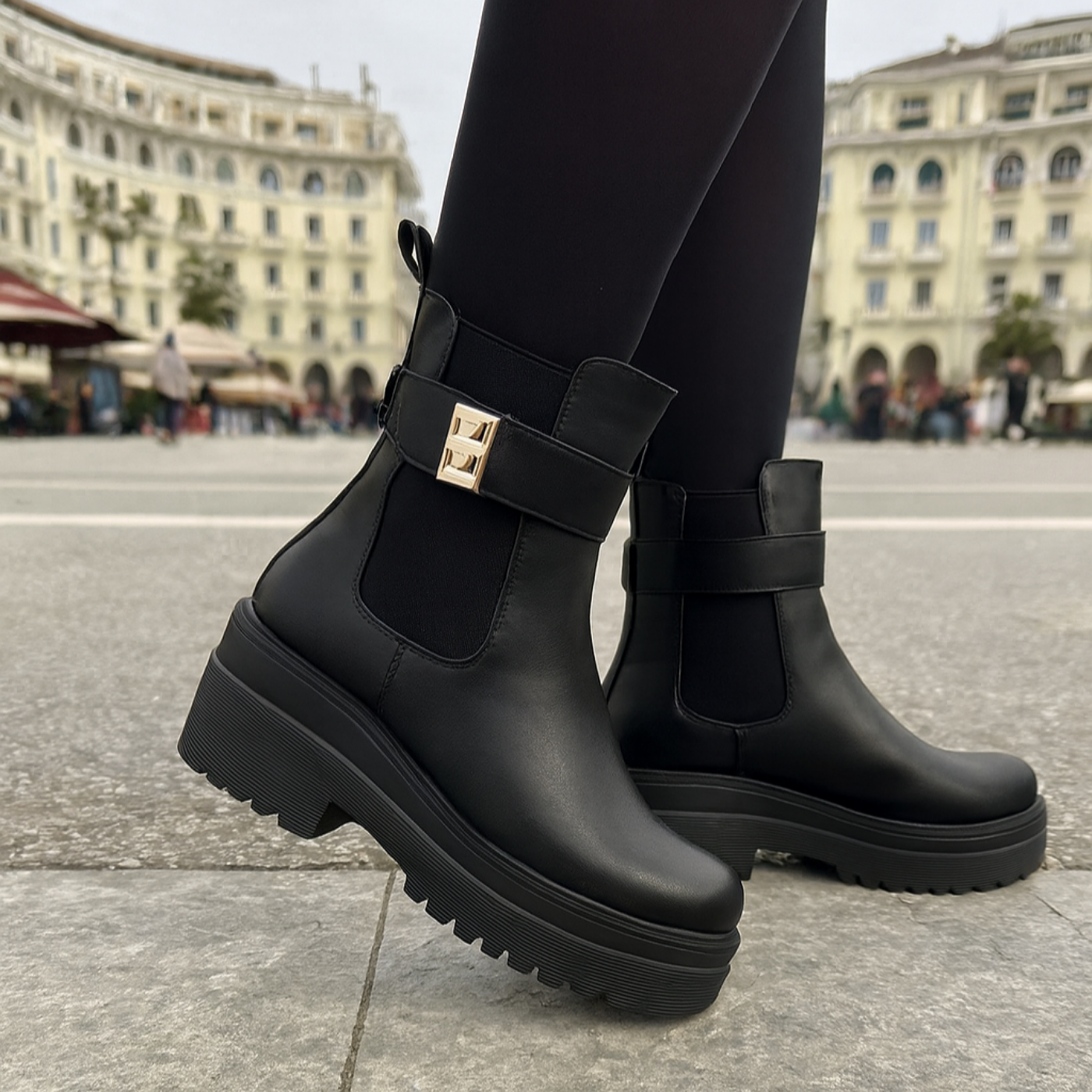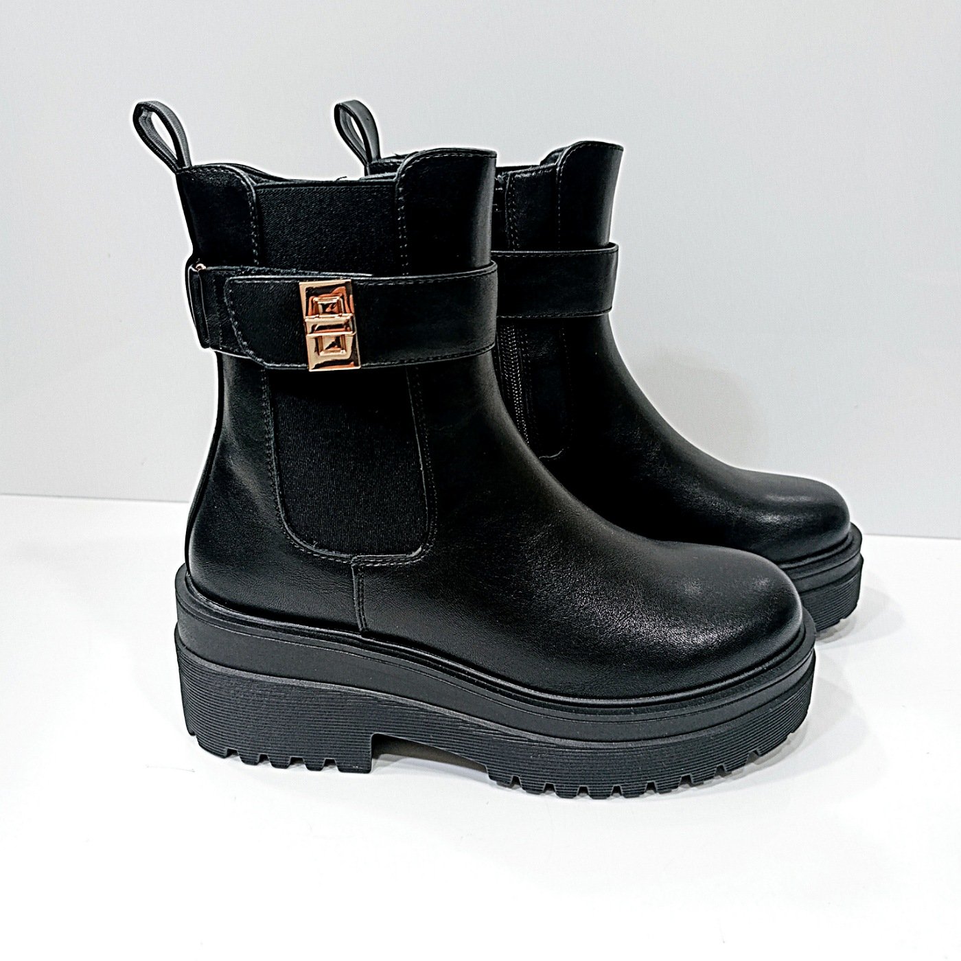 Εντυπωσιακά γυναικεία μποτάκια σε μαύρη απόχρωση. Έχουν τρακτερωτή αντιολισθητική σόλα και φερμουάρ για ευκολία. Εξωτερικά είναι κατασκευασμένα από μαλακό τεχνόδερμα. Προσφέρουν στιλάτες εμφανίσεις και συνδυάζονται πανεύκολα με όλες τις ενδυματολογικές επιλογές. Πανέμορφα κι εντυπωσιακά μποτάκια.