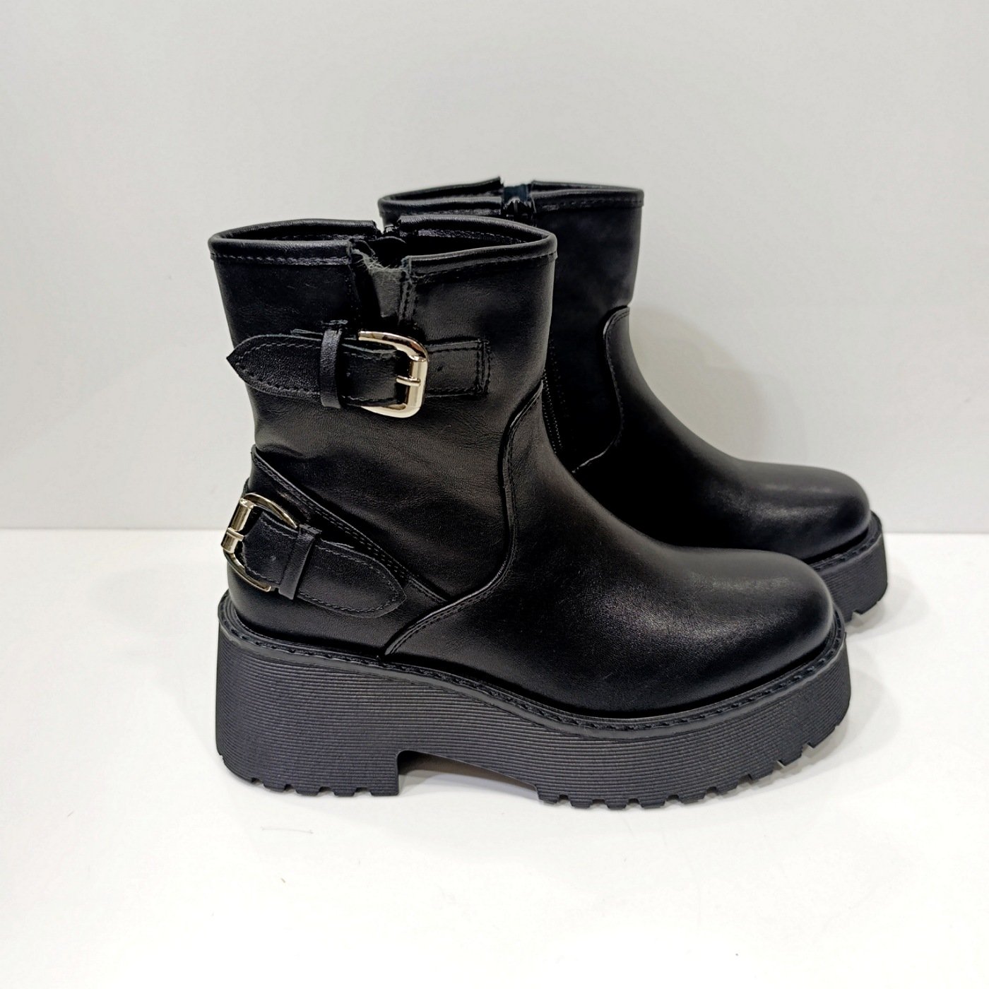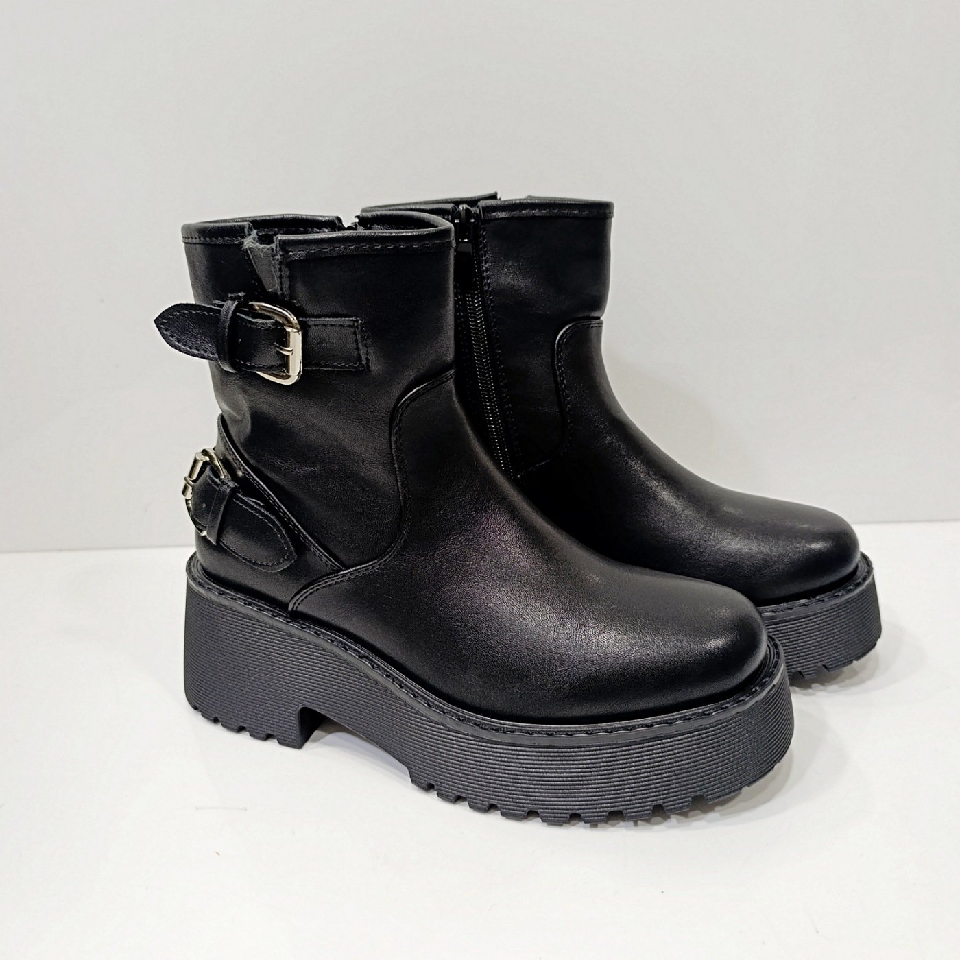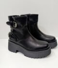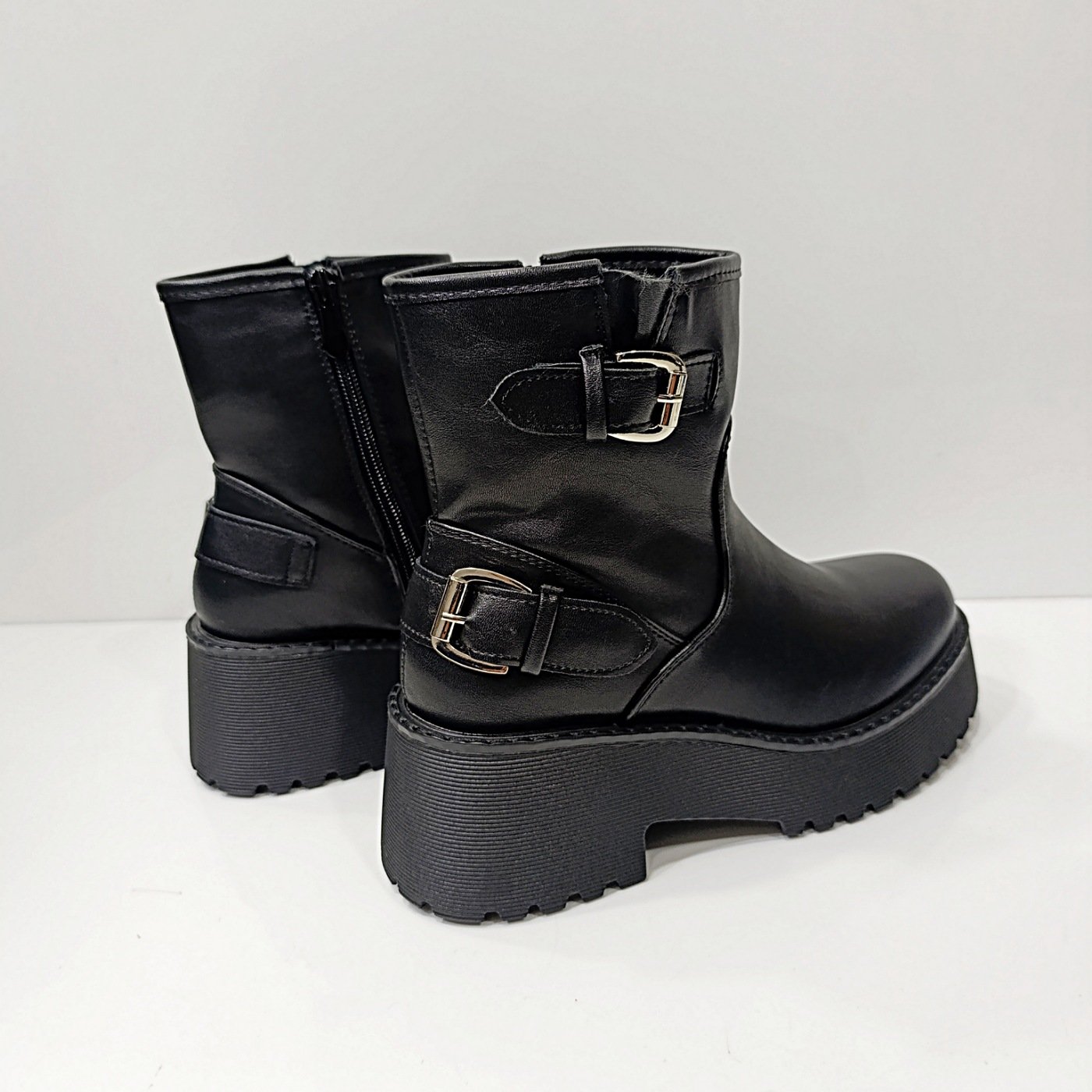 Εντυπωσιακά γυναικεία μποτάκια σε μαύρη απόχρωση. Έχουν τρακτερωτή αντιολισθητική σόλα και φερμουάρ για ευκολία. Εξωτερικά είναι κατασκευασμένα από μαλακό τεχνόδερμα. Προσφέρουν στιλάτες εμφανίσεις και συνδυάζονται πανεύκολα με όλες τις ενδυματολογικές επιλογές. Πανέμορφα κι εντυπωσιακά μποτάκια.