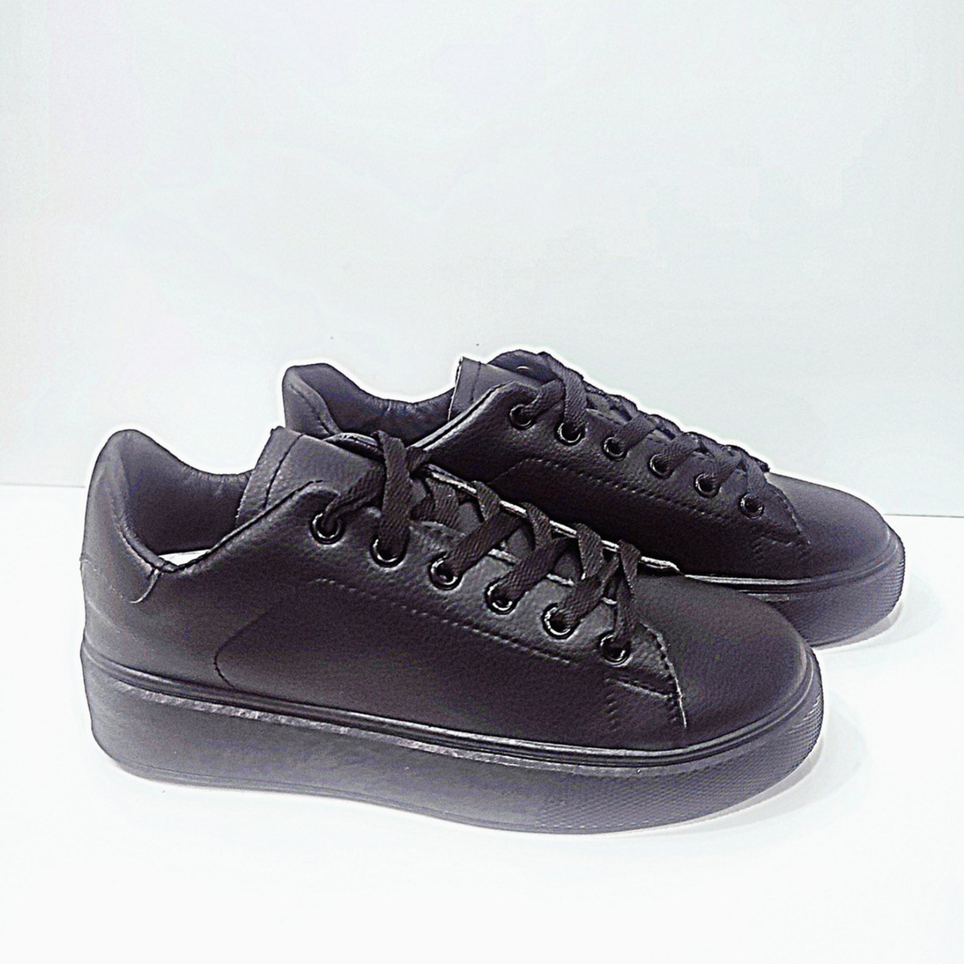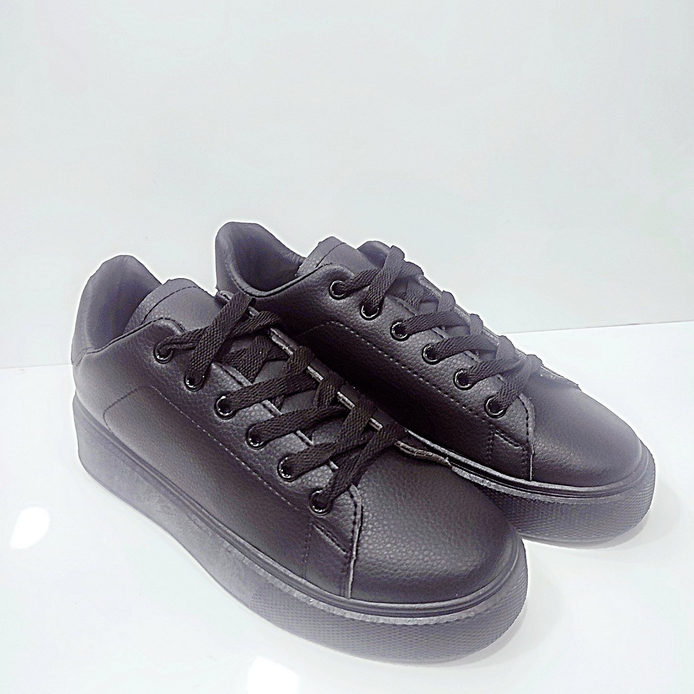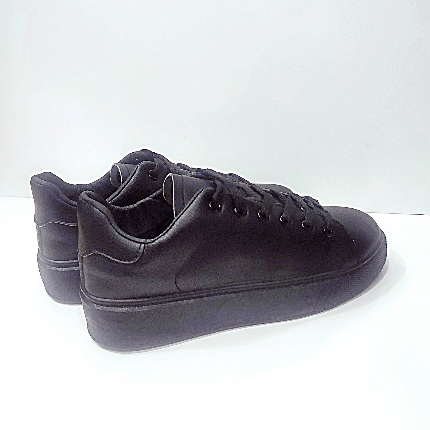 Μαύρο sneaker με κορδόνι.μαλακό οικολογικό δέρμα που δεν σπάει.διαιρούμενος πάτος.ίσια δίπατη σόλα(ύψος 3,5εκ).αντιολισθητικη σόλα.μαλακό στο πάτημα για μεγαλύτερη άνεση στο περπάτημα και στην ορθοστασία.φόρμα κανονική