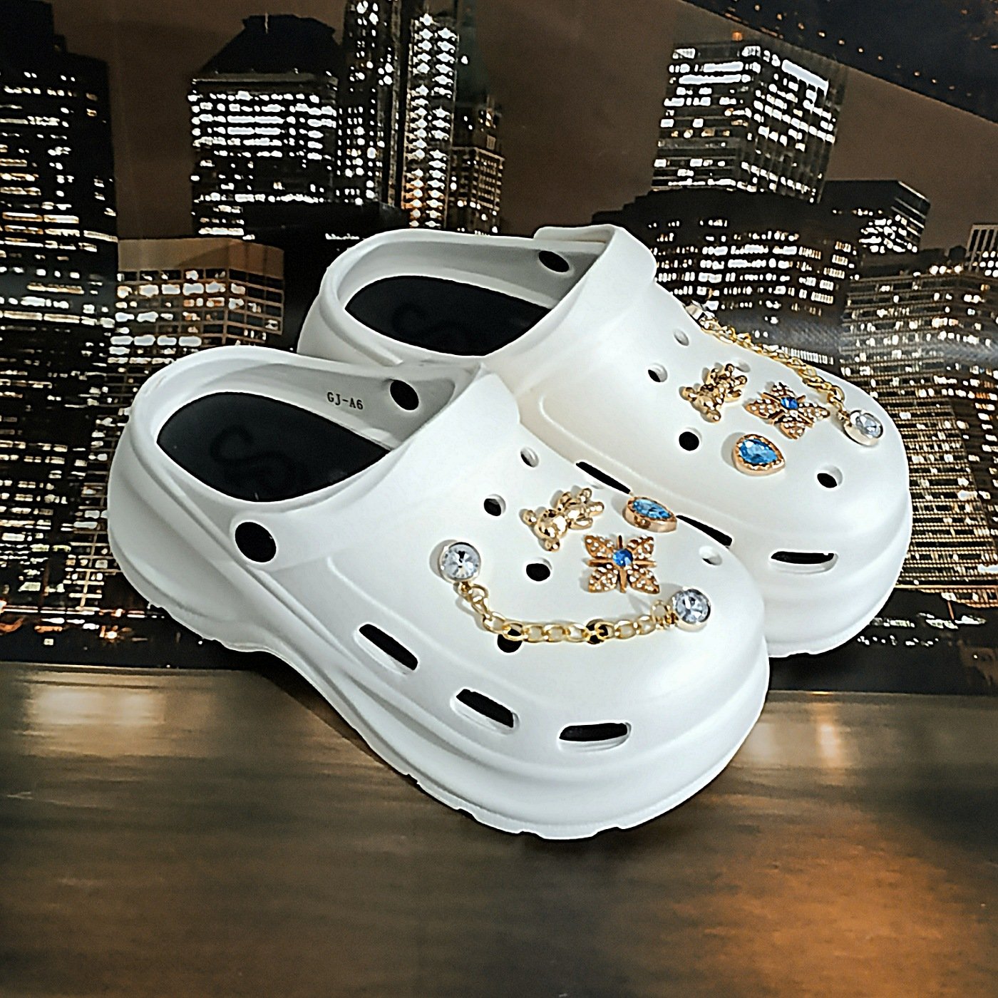 Με ανάλαφρη και ευλύγιστη κατασκευή σαμπό σε λευκό & μαύρο με υπέροχα charms!!!GJ-A6