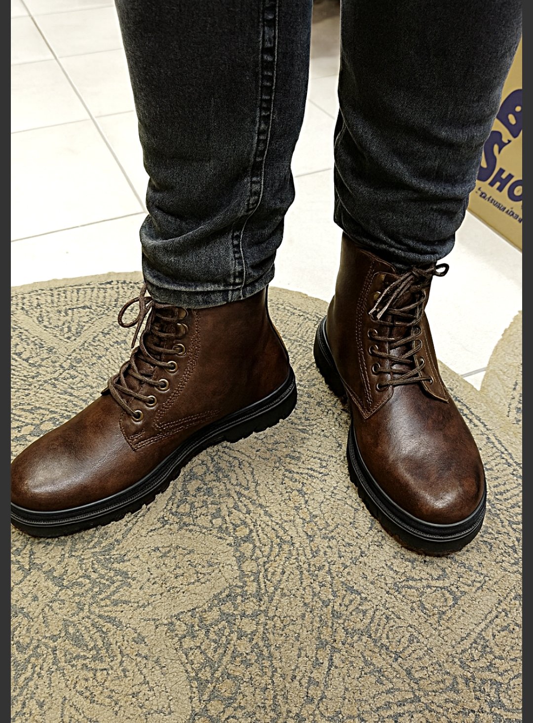 Εντυπωσιακά μποτάκια αρβυλάκια σε σκούρη καφέ απόχρωση μάτ & μαύρη. Έχουν φερμουάρ για καλύτερη προσαρμογή στο πόδι και κορδόνια για την εξασφάλιση της σωστής εφαρμογής στο πόδι μας, εκατό τοις εκατό. Εξωτερικά είναι κατασκευασμένα από μαλακό τεχνόδερμα. Προσφέρουν στιλάτες εμφανίσεις και συνδυάζονται πανεύκολα με όλες τις ενδυματολογικές επιλογές. Πανέμορφα κι εντυπωσιακά μποτάκια.(Διαθέτει ανατομικό πέλμα & ισοθερμική επένδυση)