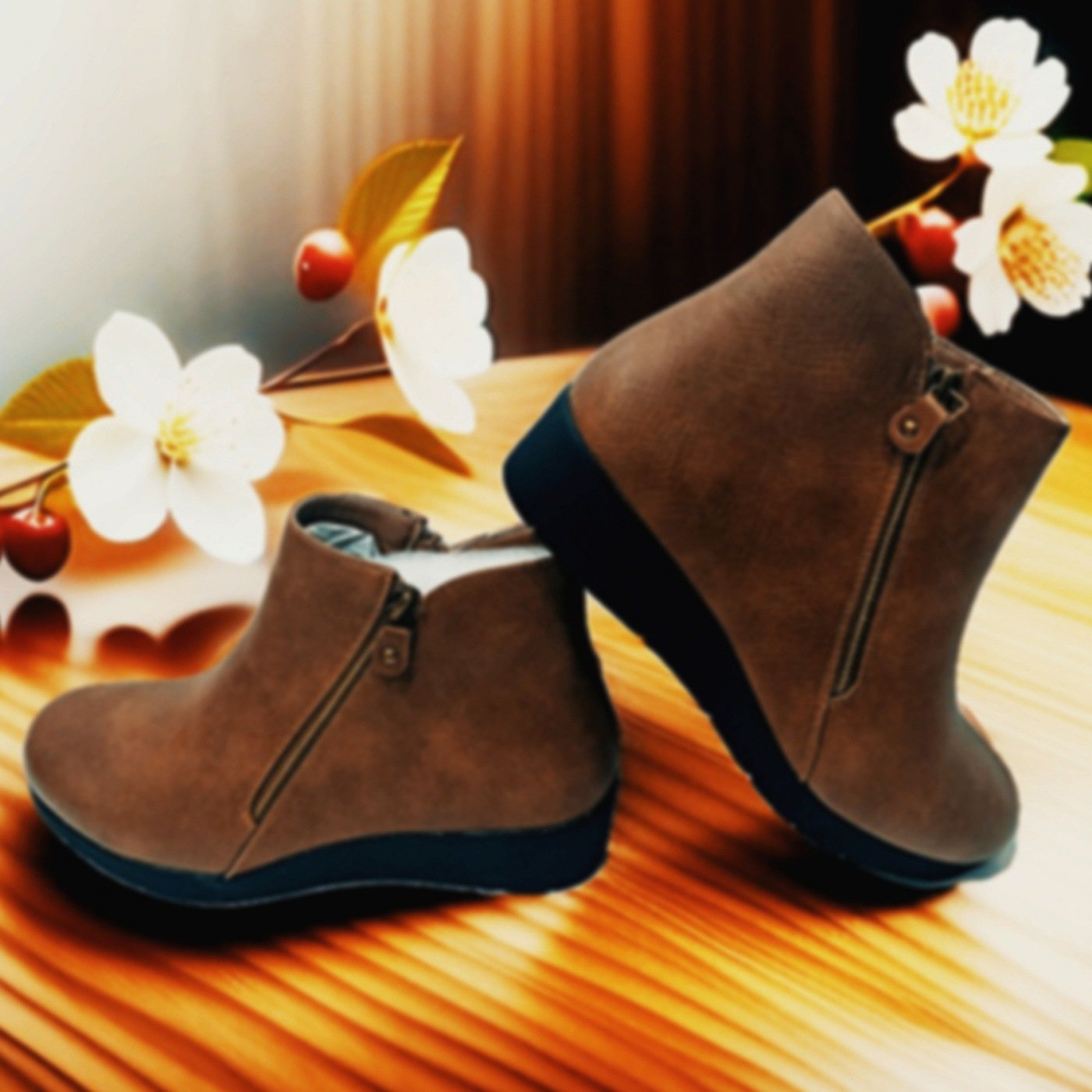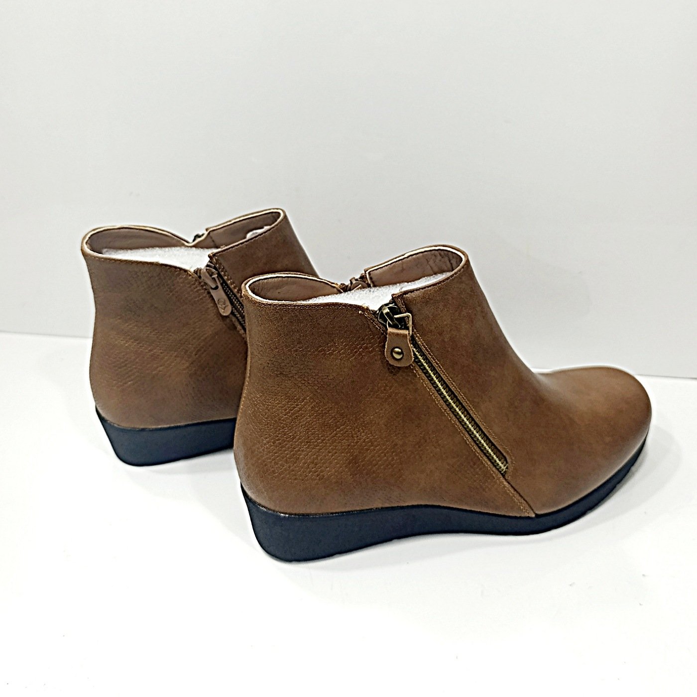 Πολύ μαλακό δέρμα άριστης ποιότητας εξωτερικά.Ανατομικό πέλμα αφρώδους υλικού.Σόλα από 100% φυσικό καουτσούκ που απορροφά τους κραδασμους & προστατεύει τη μέση,τα γόνατα & τους αδτραγάλους.Ευκολοφόρετο με φερμουάρ εσωτερικά & εξωτερικά,συνδυάζεται με παντελόνια & φούστες.Φοριέται όλες τις ώρες της ημέρας προσφέροντας το πιο άνετο & ξεκούραστο βάδισμα.