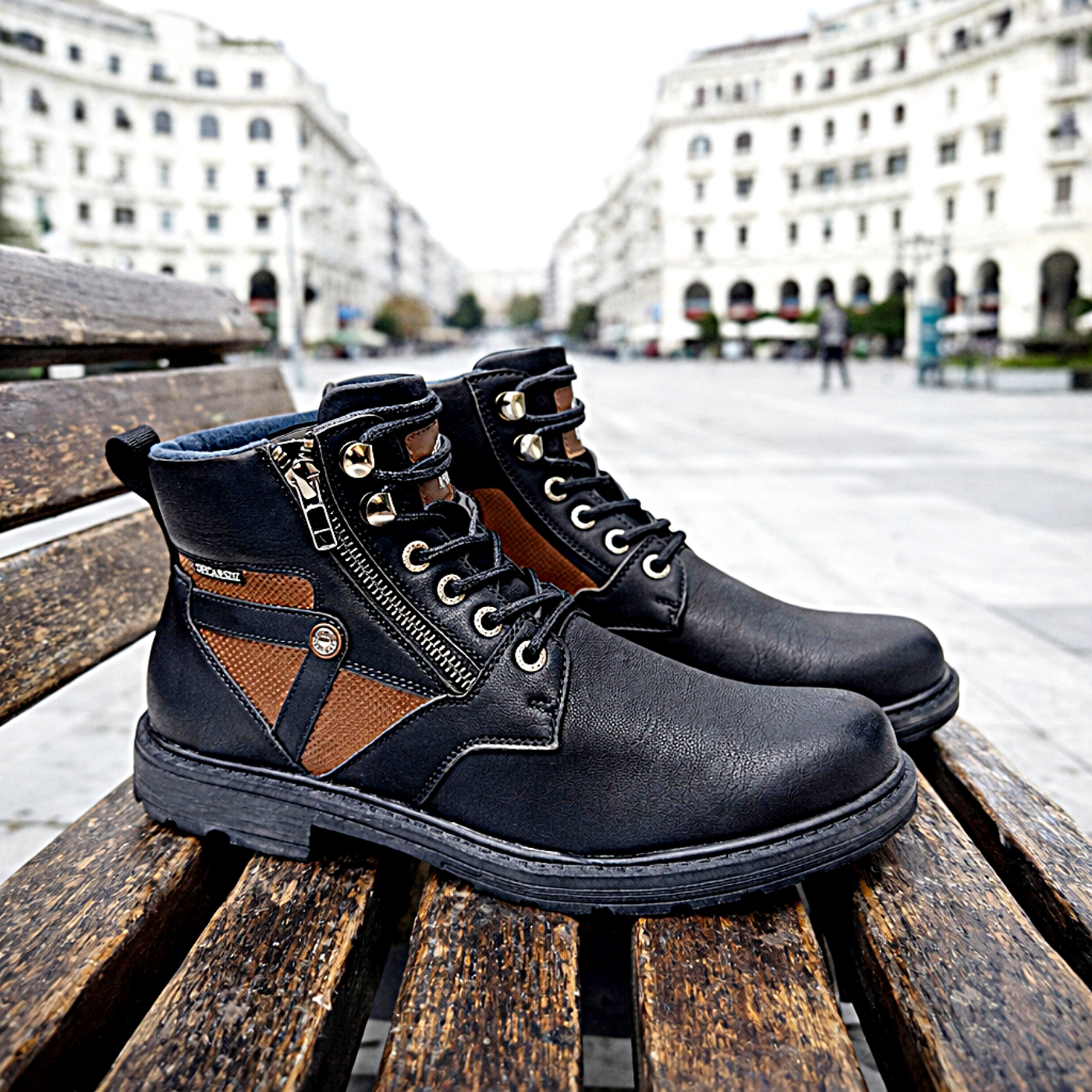 Τα ανδρικά μποτάκια της εταιρείας ELONG from Paris θα προστατεύσουν τα πόδια σας κατά τη διάρκεια του χειμώνα. Είναι κατασκευασμένα από δέρμα, ένα υλικό που αναπνέει βοηθώντας στην αποφυγή δυσάρεστων οσμών, ενώ παράλληλα καθαρίζεται εύκολα. Προσαρμόζονται στη φόρμα του ποδιού παρέχοντας επιπλέον άνεση. Είναι ανθεκτικά στην καθημερινή χρήση με διάρκεια στο χρόνο. Είναι αδιάβροχα για προστασία από το νερό film υγροποιησης. Με ανατομικό σχεδιασμό για άνετο βάδισμα ακόμα και στις πιο απαιτητικές μέρες.