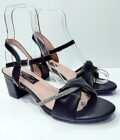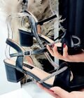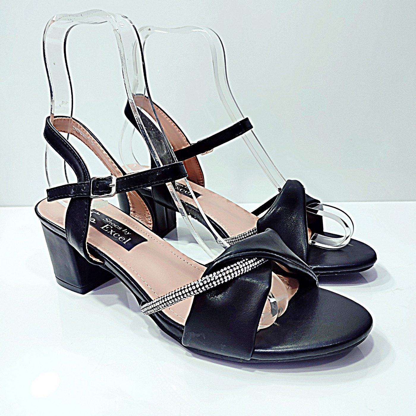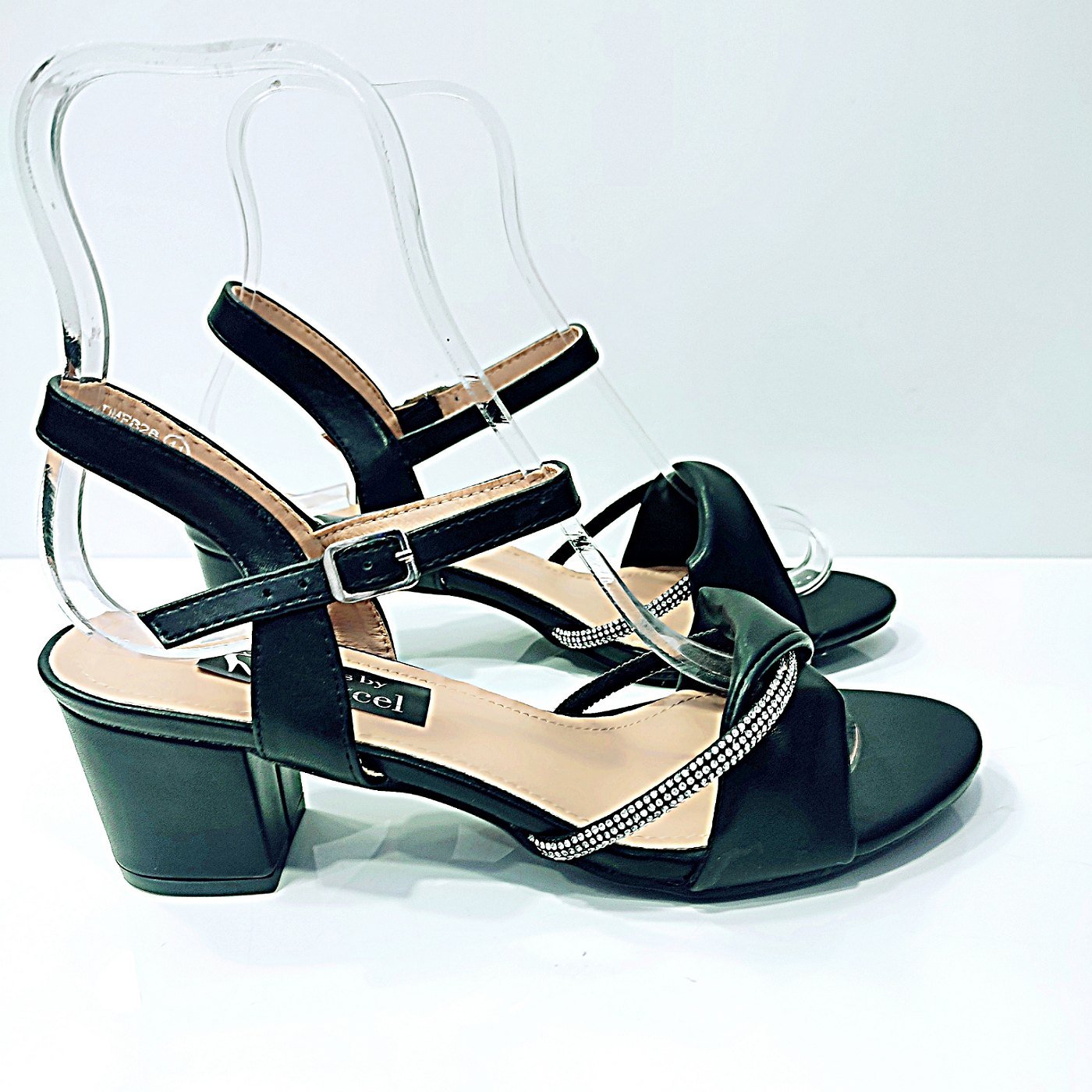 Πέδιλο μαύρο με στρας χαμήλο τετραγώνο τακούνι 5εκ με δέσιμο στον αστράγαλο μάλακο πέλμα για άνεση στο βάδισμα.