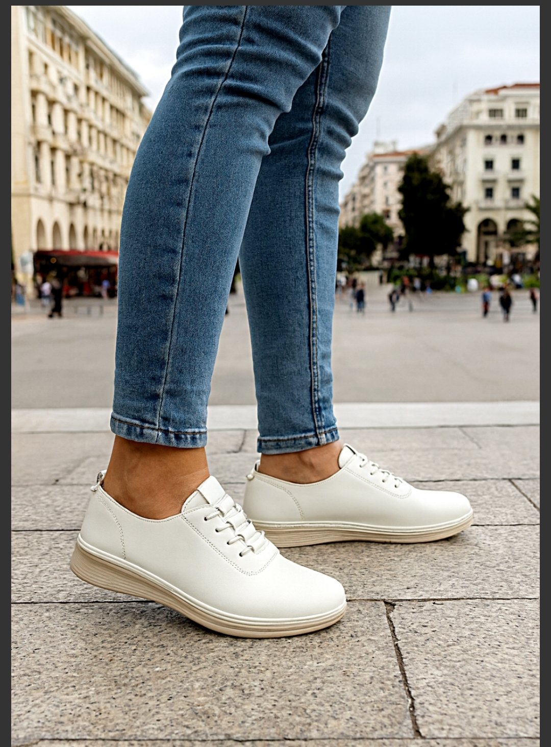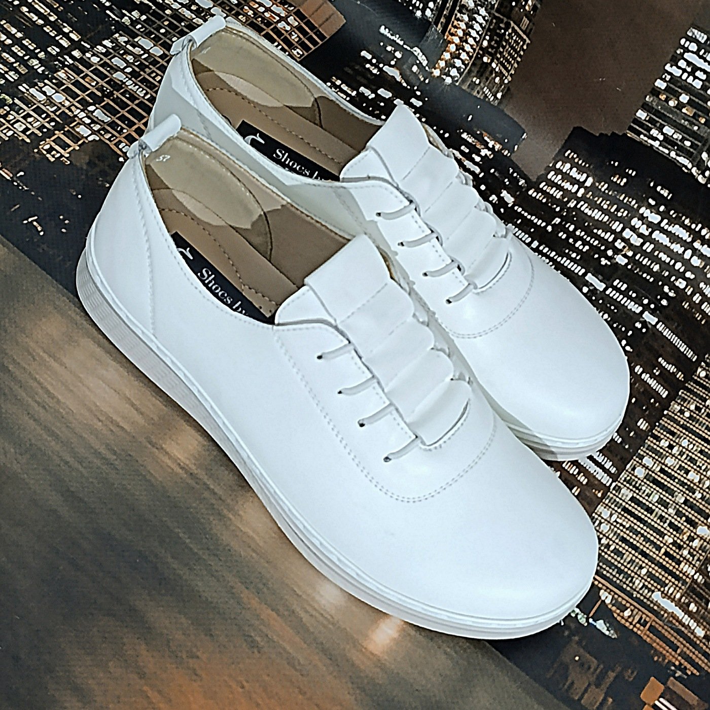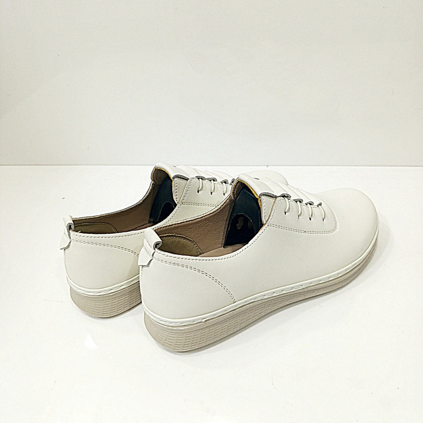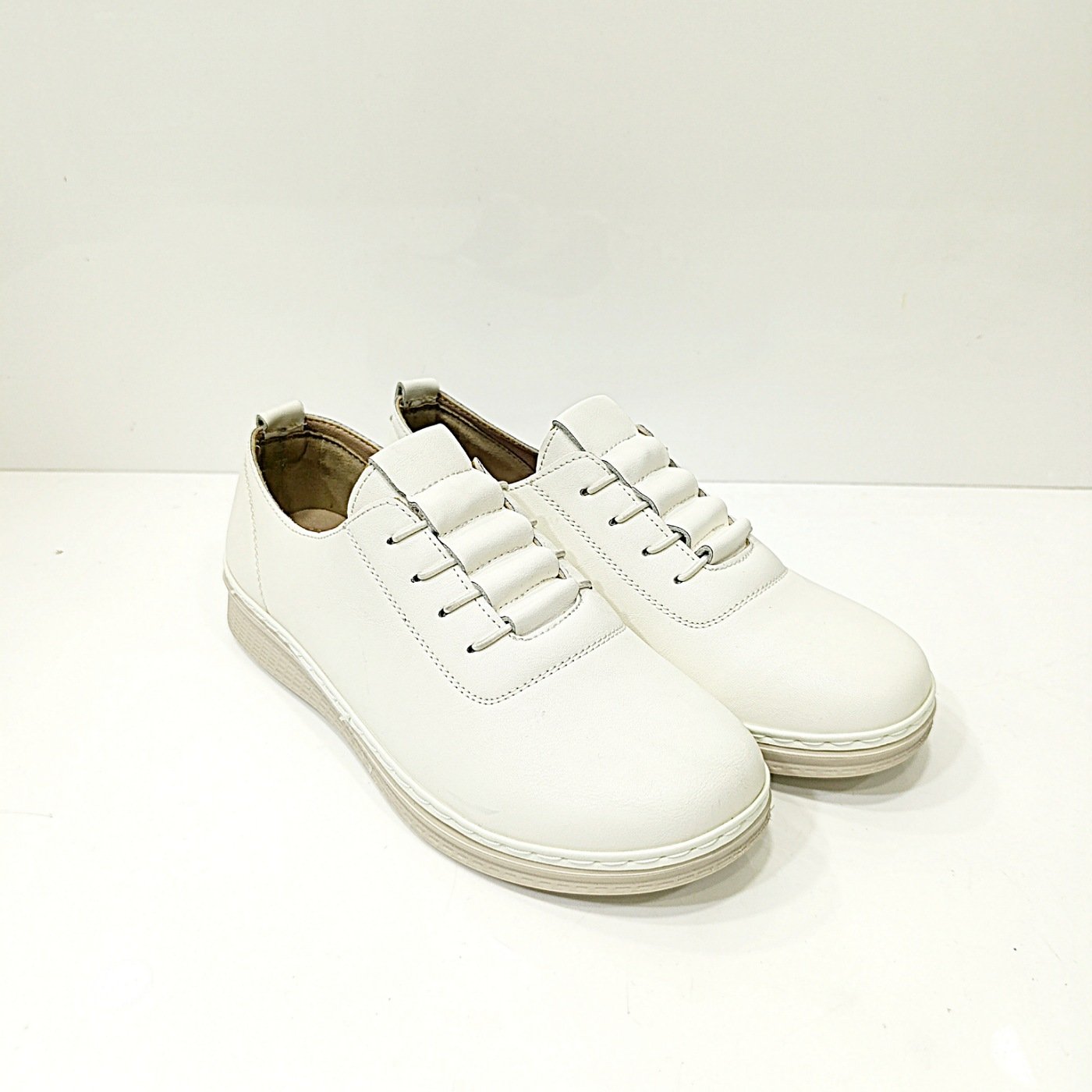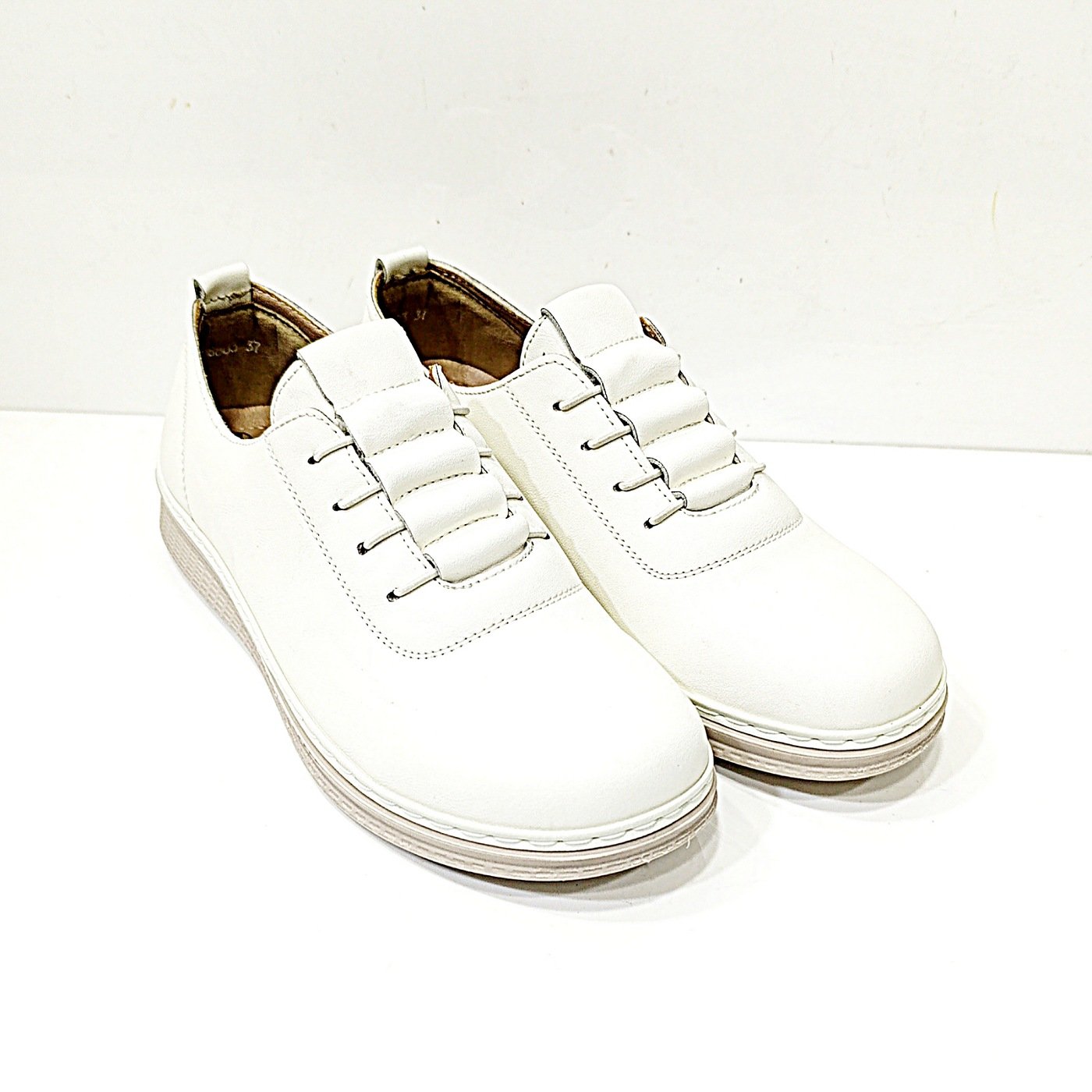 Λευκά Ανατομικά Παπούτσια ανάλαφρα,αδιάβροχα με λάστιχο. Κατασκευασμένα από τεχνόδερμα, με αναπνέων αφρώδες εσωτερικό πάτο. Υπέροχα και στιλάτα Casual-Oxford παπούτσια, με αντιολισθητική σόλα ύψους 3 cm πίσω και 1 cm μπροστά για σίγουρα και σταθερά βήματα. Εξαιρετικής κατασκευής παπούτσια σχεδιασμένα με τις τελευταίες τάσεις της μόδας, που δημιουργούν όμορφες εμφανίσεις που δεν περνούν απαρατήρητες. Μπορούν να φορεθούν με τα περισσότερα ενδυματολογικά στυλ.