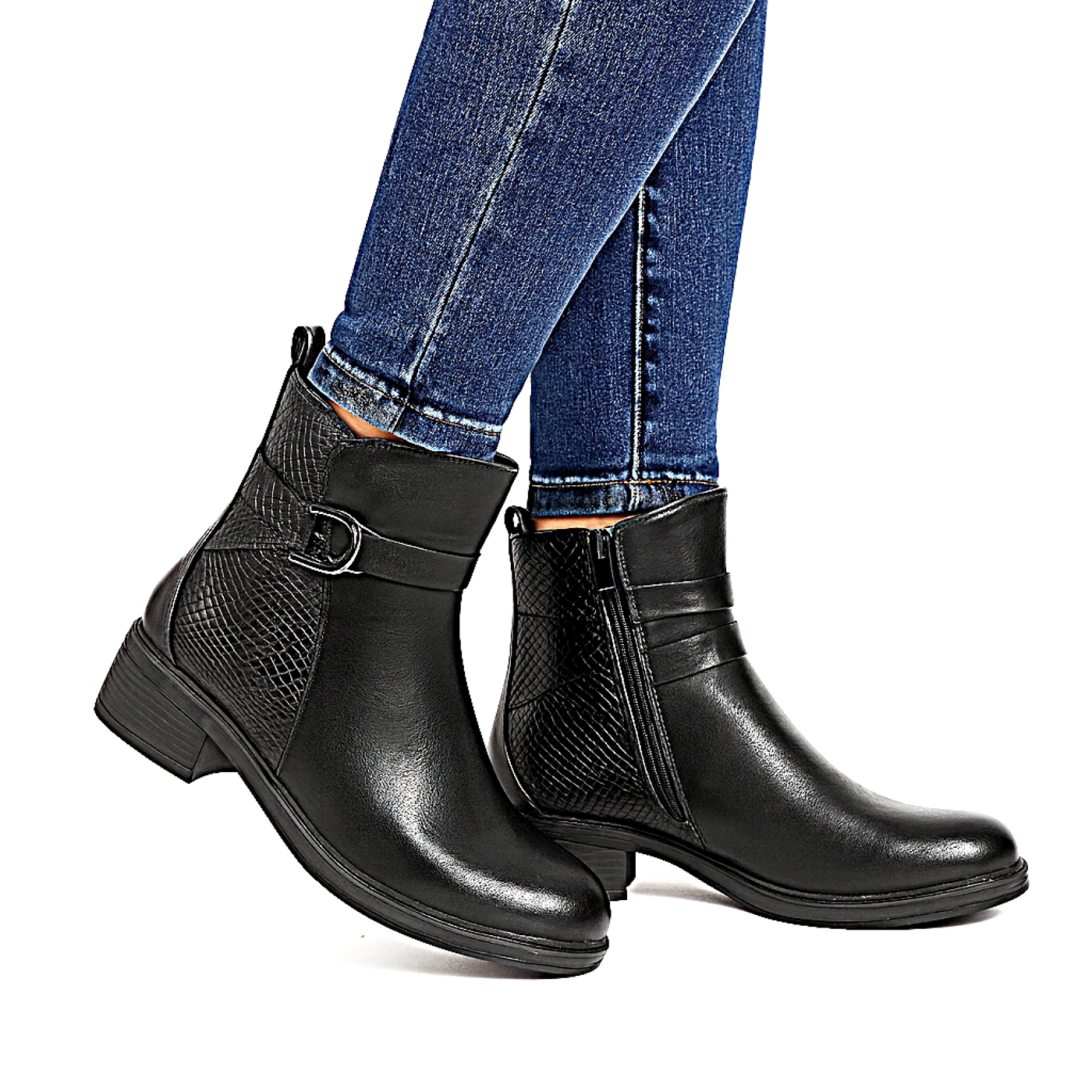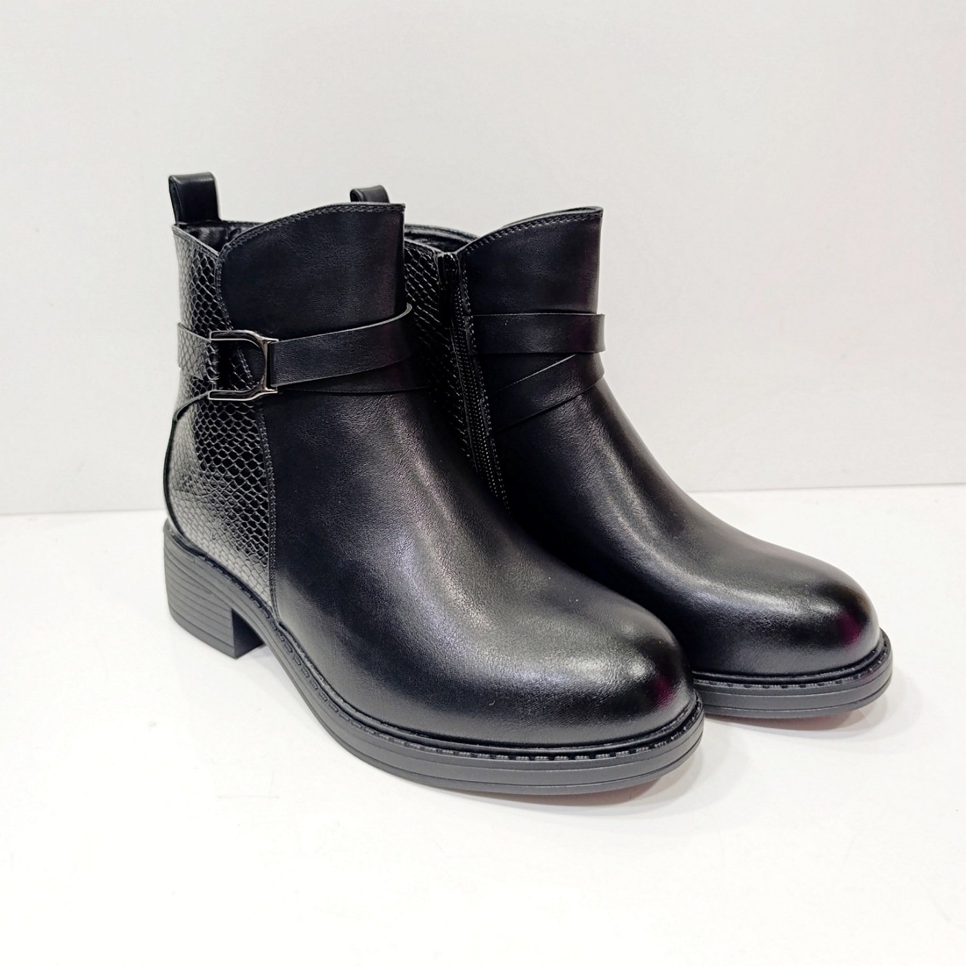 Υπέροχα Μποτάκια με τετράγωνη πλατφόρμα μαύρο μάτ. Εντυπωσιακά γυναικεία χαμηλά μποτάκια,με σταθερό τακούνι(πλατφόρμα) ύψους 4εκατ ύψος μπότας 13εκ για σίγουρο βάδισμα. Υπάρχει φερμουάρ στο πλάι για μεγαλύτερη ευκολία όταν το φοράτε. Έχουν εσωτερικά επένδυση για να κρατάει πιο ζεστό το πόδι. Προσφέρουν στιλάτες εμφανίσεις και συνδυάζονται πανεύκολα με όλες τις ενδυματολογικές επιλογές.