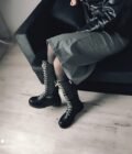 Ψηλές μπότες σε απόχρωση μπέζ&μαύρο με σύστημα κλεισίματος διπλό!!!2023-N20