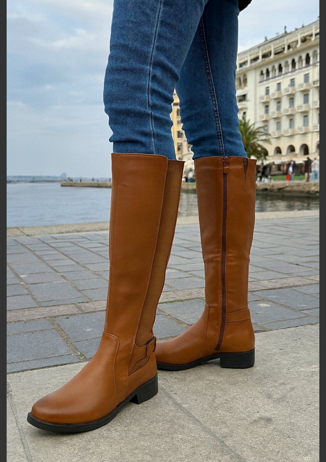 Εντυπωσιακή γυναικεία μπότα σε κάμελ απόχρωση. Υπάρχει φερμουάρ στο πλάι για μεγαλύτερη ευκολία όταν το φοράτε και λάστιχο πίσω για να εφαρμόζει σε όλες τις γάμπες. Έχουν εσωτερικά υφασμάτινη ζεστή επένδυση για να κρατάει πιο ζεστό το πόδι. Προσφέρουν στιλάτες εμφανίσεις και συνδυάζονται πανεύκολα με όλες τις ενδυματολογικές επιλογές. Κομψή κλασσική μπότα κατάλληλη και για την καθημερινότητα σας!