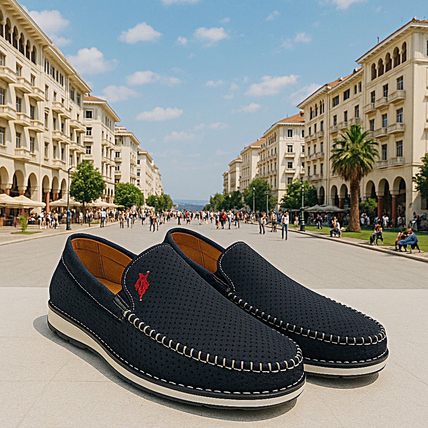 Παπούτσια μοκασίνια σε Μπλε,Ώχρα & Μαύρο χρώμα. Έχουν σχεδιαστεί με προσοχή για να προσαρμόζονται στη γραμμή του ποδιού με ευκολία. Είναι κατασκευασμένα από δέρμα που προσφέρει μαλακή υφή και σουέτ όψη. Επιλέξαμε υλικό που αναπνέει τόσο στο πάνω μέρος όσο και από τα πλαϊνά σημεία του παπουτσιού. Στο εσωτερικό υπάρχει ειδικός ανατομικός πάτος και μαξιλαράκι για άνετο πάτημα, χωρίς τραυματισμούς. Ενώ σίγουρα η αντιολισθητική και ευλύγιστη σόλα θα διευκολύνει το καθημερινό σας περπάτημα. Εξωτερικά έχει εξτρα ραφές για καλύτερο δέσιμο.