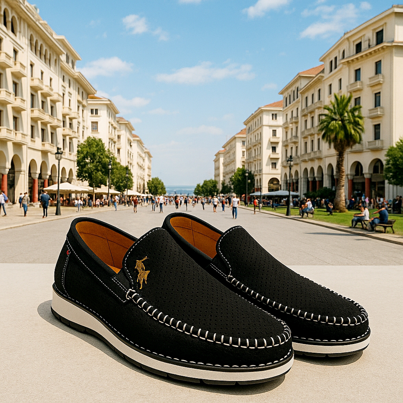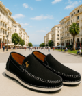 Παπούτσια μοκασίνια σε Μπλε,Ώχρα & Μαύρο χρώμα. Έχουν σχεδιαστεί με προσοχή για να προσαρμόζονται στη γραμμή του ποδιού με ευκολία. Είναι κατασκευασμένα από δέρμα που προσφέρει μαλακή υφή και σουέτ όψη. Επιλέξαμε υλικό που αναπνέει τόσο στο πάνω μέρος όσο και από τα πλαϊνά σημεία του παπουτσιού. Στο εσωτερικό υπάρχει ειδικός ανατομικός πάτος και μαξιλαράκι για άνετο πάτημα, χωρίς τραυματισμούς. Ενώ σίγουρα η αντιολισθητική και ευλύγιστη σόλα θα διευκολύνει το καθημερινό σας περπάτημα. Εξωτερικά έχει εξτρα ραφές για καλύτερο δέσιμο.