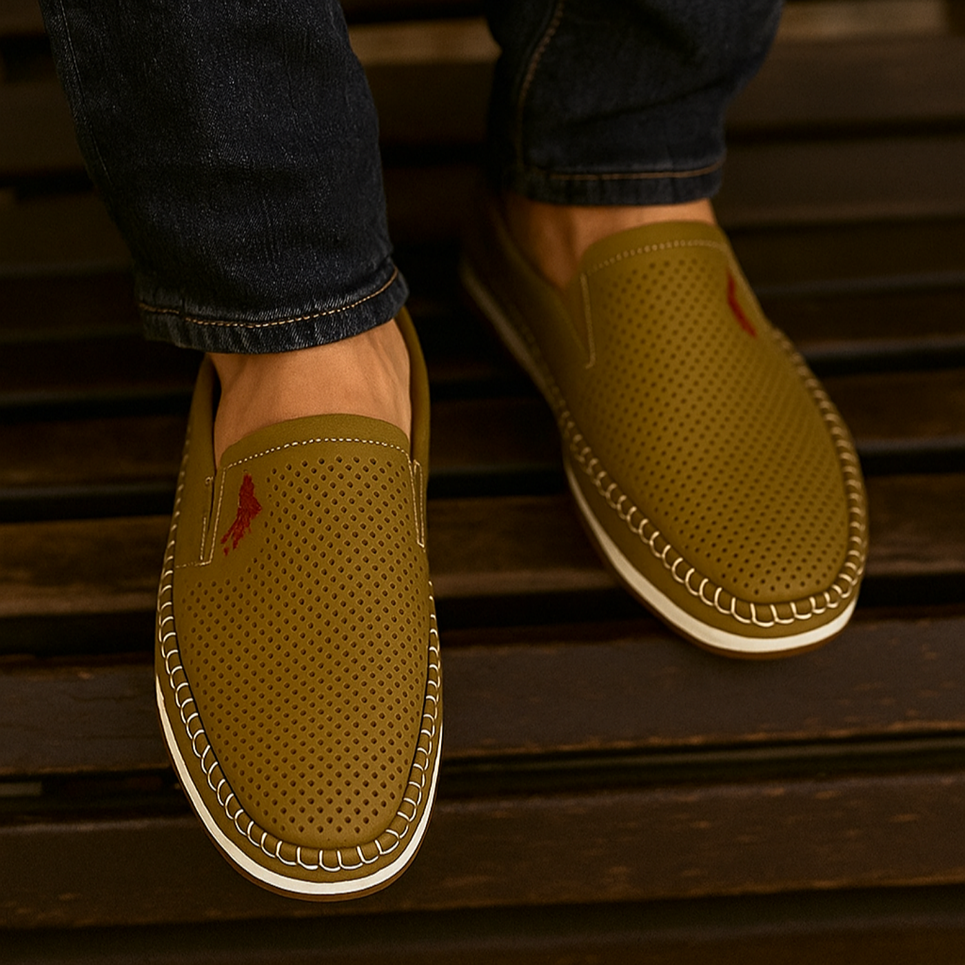 Παπούτσια μοκασίνια σε Μπλε,Ώχρα & Μαύρο χρώμα. Έχουν σχεδιαστεί με προσοχή για να προσαρμόζονται στη γραμμή του ποδιού με ευκολία. Είναι κατασκευασμένα από δέρμα που προσφέρει μαλακή υφή και σουέτ όψη. Επιλέξαμε υλικό που αναπνέει τόσο στο πάνω μέρος όσο και από τα πλαϊνά σημεία του παπουτσιού. Στο εσωτερικό υπάρχει ειδικός ανατομικός πάτος και μαξιλαράκι για άνετο πάτημα, χωρίς τραυματισμούς. Ενώ σίγουρα η αντιολισθητική και ευλύγιστη σόλα θα διευκολύνει το καθημερινό σας περπάτημα. Εξωτερικά έχει εξτρα ραφές για καλύτερο δέσιμο.