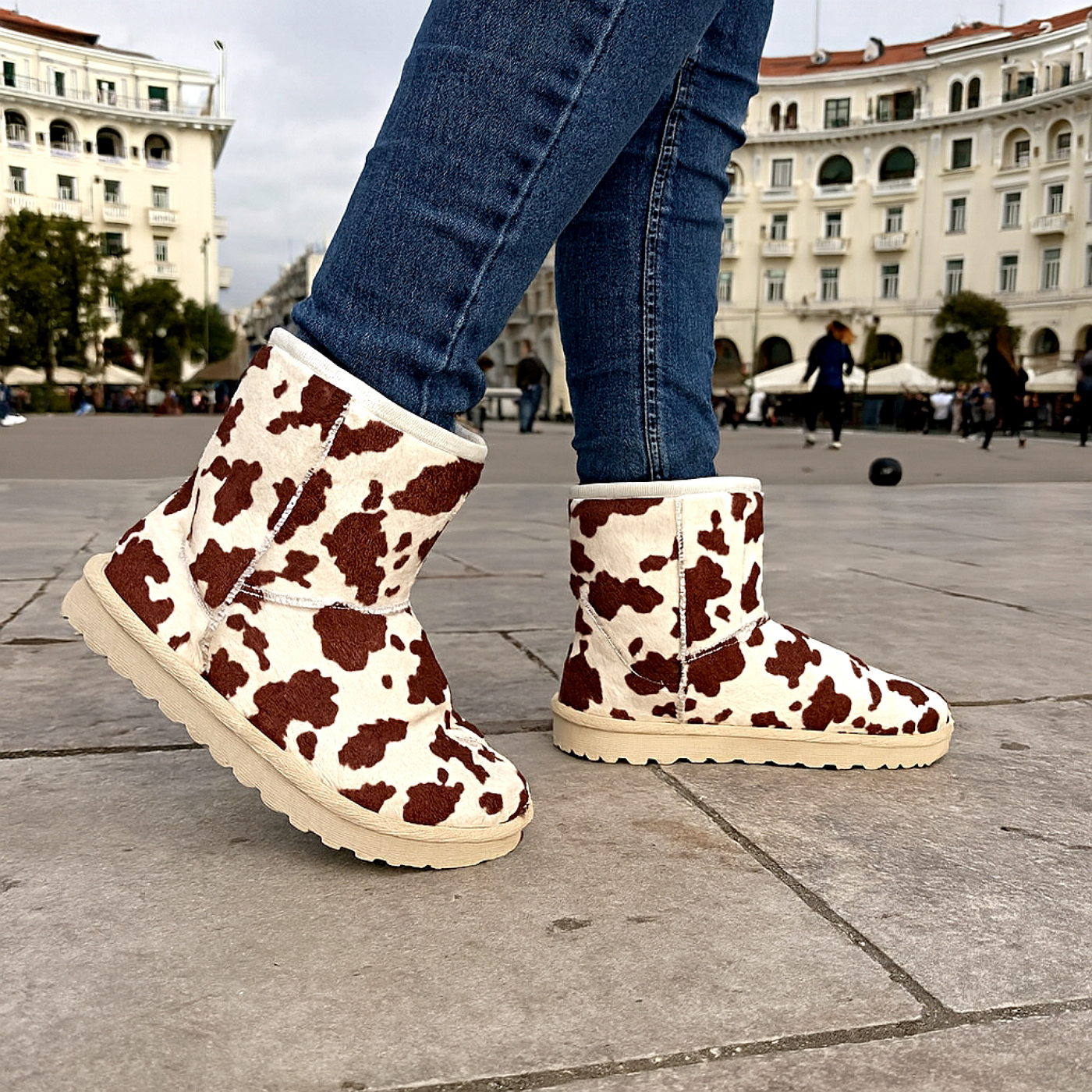 Cow/Beige Print Γούνινα Flatform Μποτάκια!!!!B-804