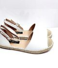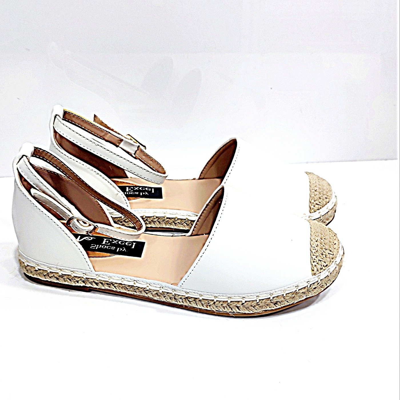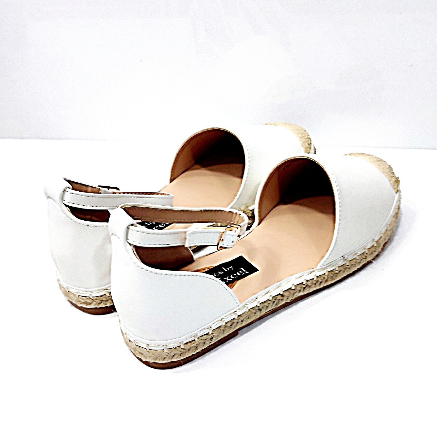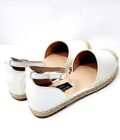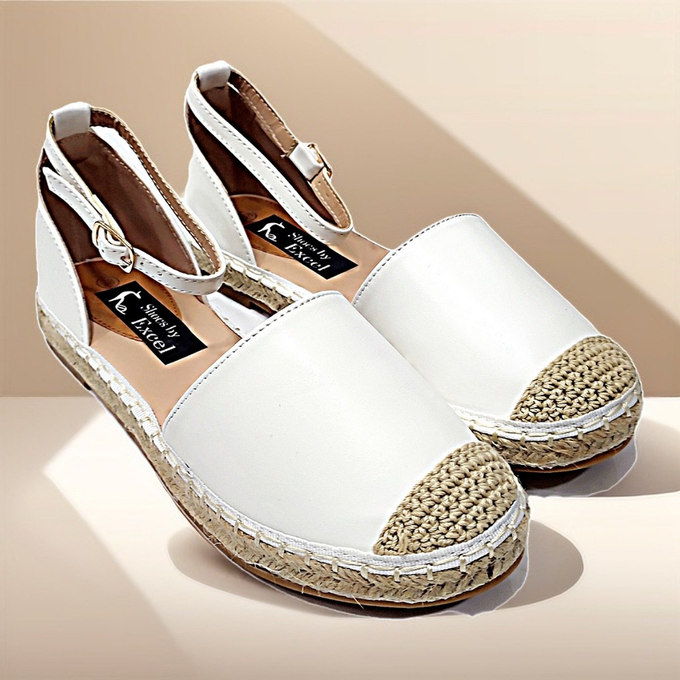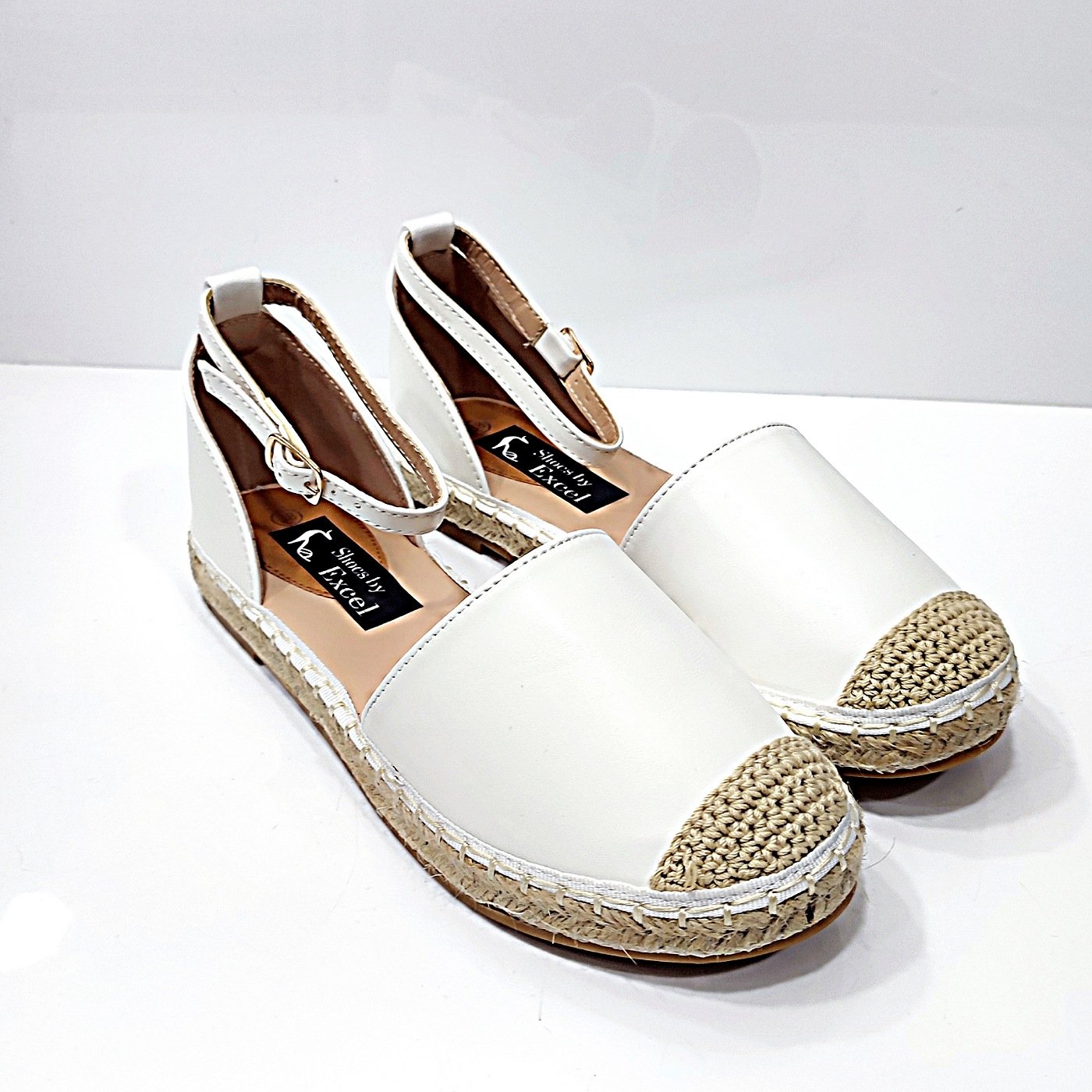 Flat εσπαντρίγιες με σόλα από πλέξη ψάθινου σχοινιού σε λευκό χρώμα.η σόλα αυτή ήταν γνωστή από πολύ παλιά,τα παπούτσια αυτά άρχισαν να γίνονται αρκετά δημοφιλή τον 14 αιώνα στην Ισπανία και σε ένα τμήμα της Γαλλίας,διαθέτουν ελαφριά πλατφόρμα Παρόλο τον όγκο τους, οι εσπαντρίγιες πλατφόρμες είναι πολύ ελαφριές. Ο λόγος είναι ότι η σόλα τους κατασκευάζεται από πλέξη ψάθινου σχοινιού που ως υλικό έχει πολύ λίγο βάρος.
