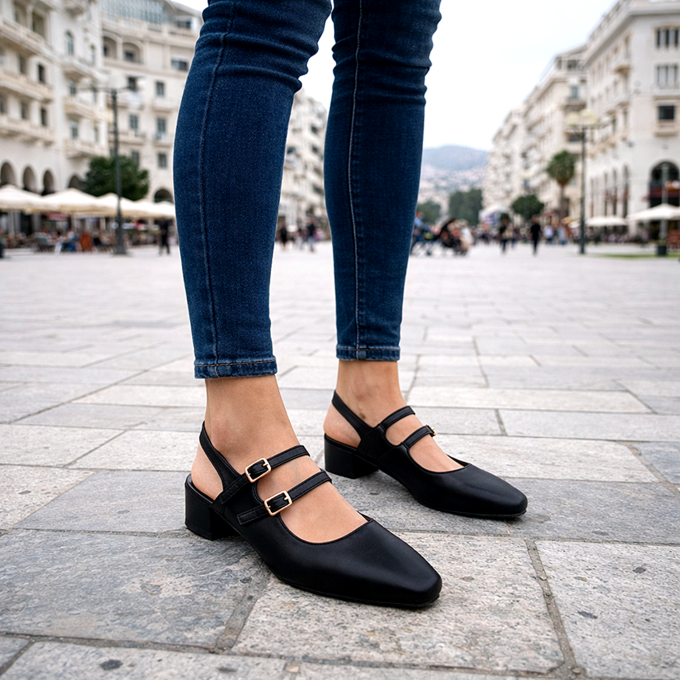 - Στυλ: Slingback με πολλαπλά κομψά λουράκια για σταθερότητα και στυλ.