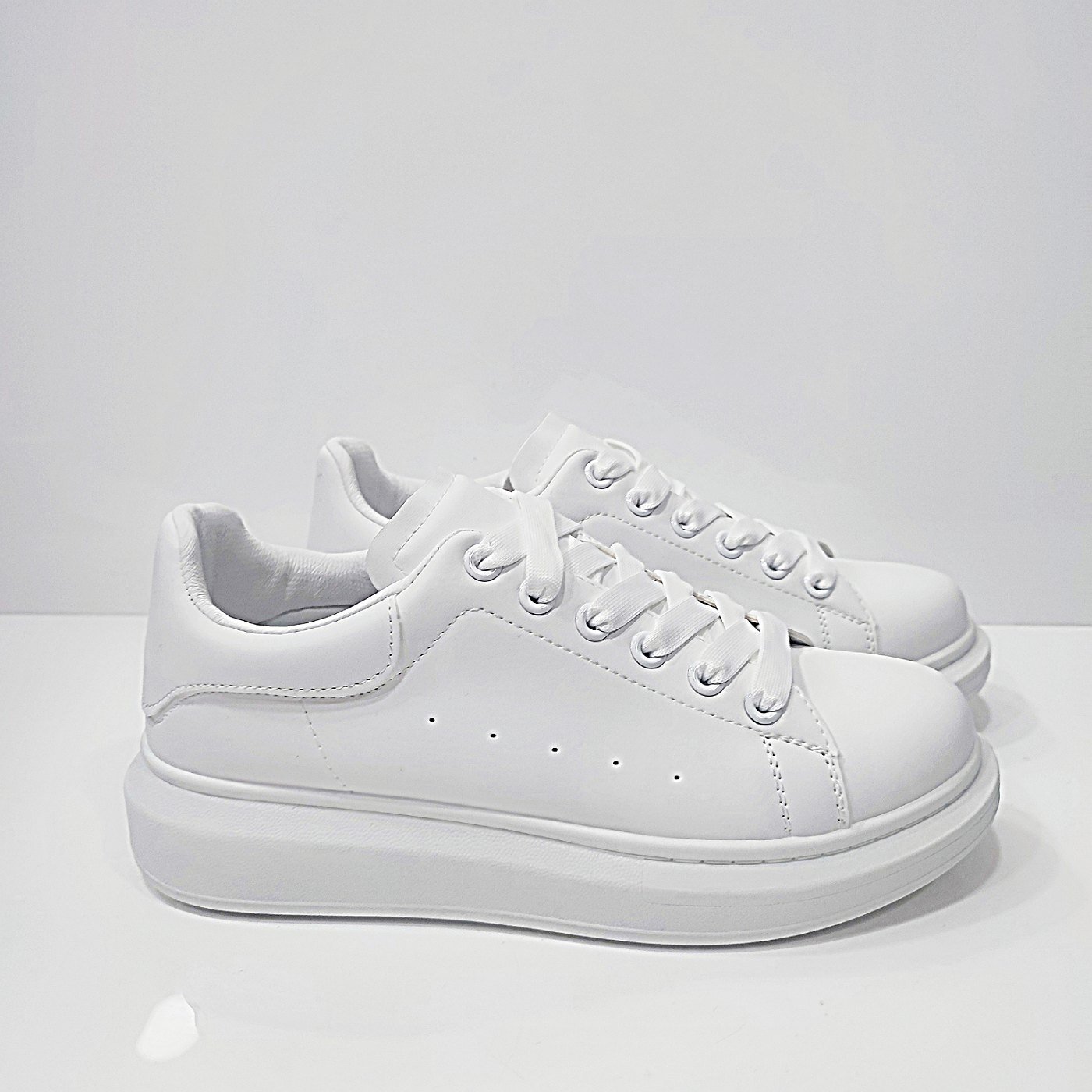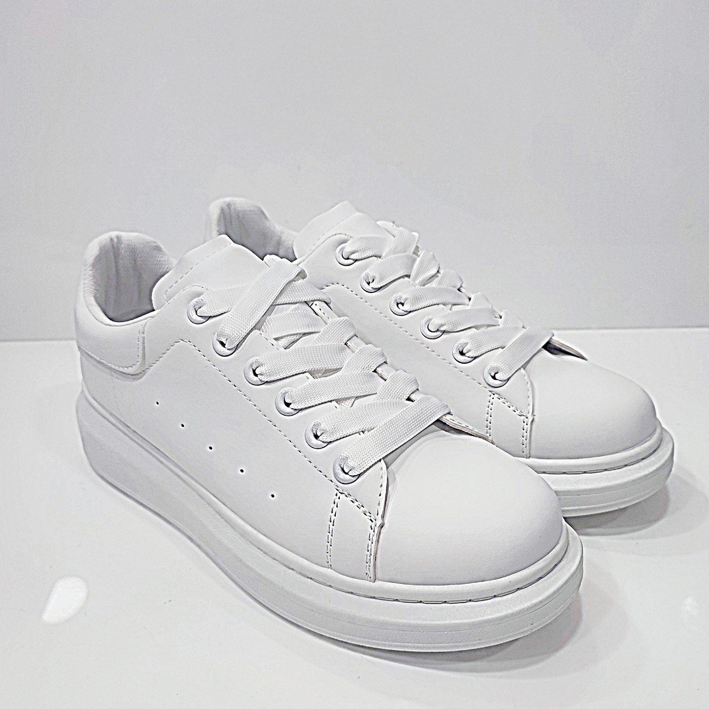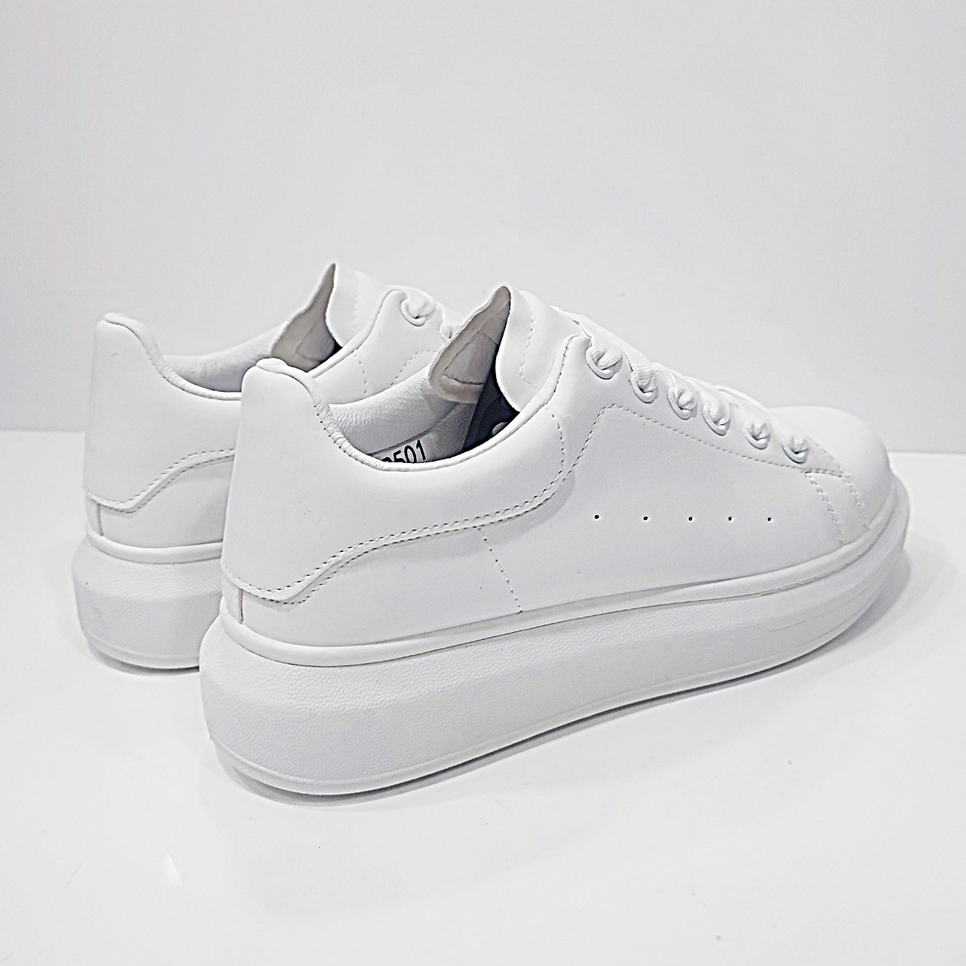 Sneakers ανδρικό λευκό με δίπατη σόλα στρογγυλή.Ελαφρύ sneaker για καθημερινή χρήση. Ύψος σόλας 4εκ. Φόρμα κανονική.