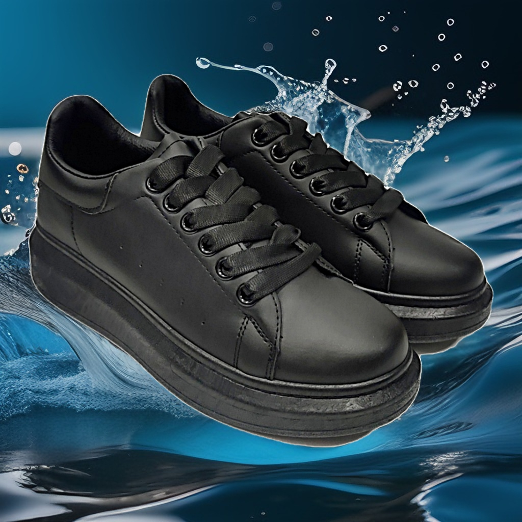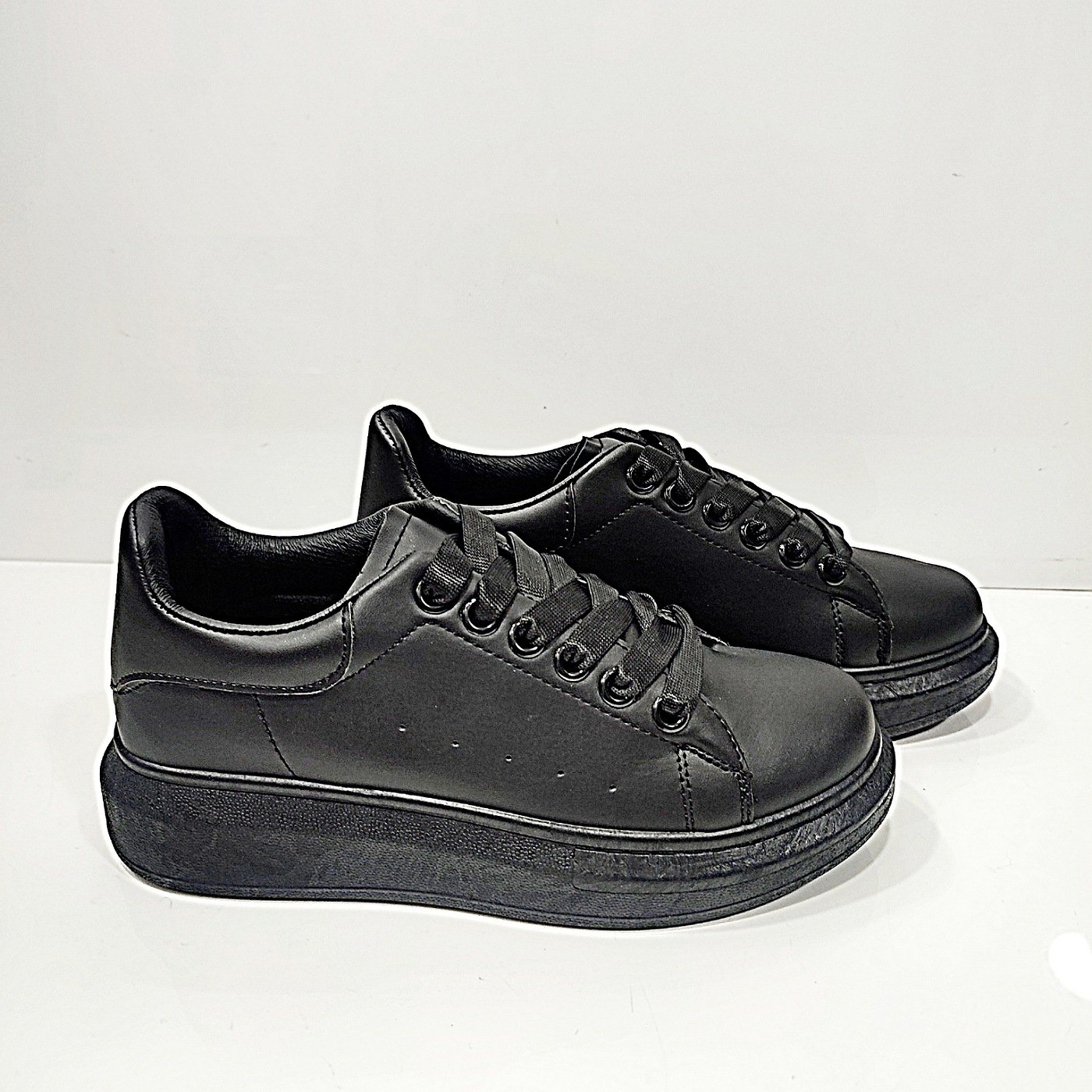 Sneakers δίπατο στο απόλυτο μαύρο χρώμα.διαθέτει μαλακό,διαιρούμενο πατάκι.στην εξωτερική πλεύρα του παπουτσιού είναι διάτρητο για καλύτερη αναπνοή του ποδιού.κλείσιμο με κορδόνι(σατέν).δίσολο 4εκ πίσω 2εκ μπροστά με ελαστική σόλα από καουτσουκ για σταθερό άνετο βάδησμα.στρόγγυλη μύτη.Μια άνετη και στιλάτη επιλογή που θα σας συντροφεύει μοναδικά σε κάθε casual εμφάνιση σας.φόρμα κανονική.