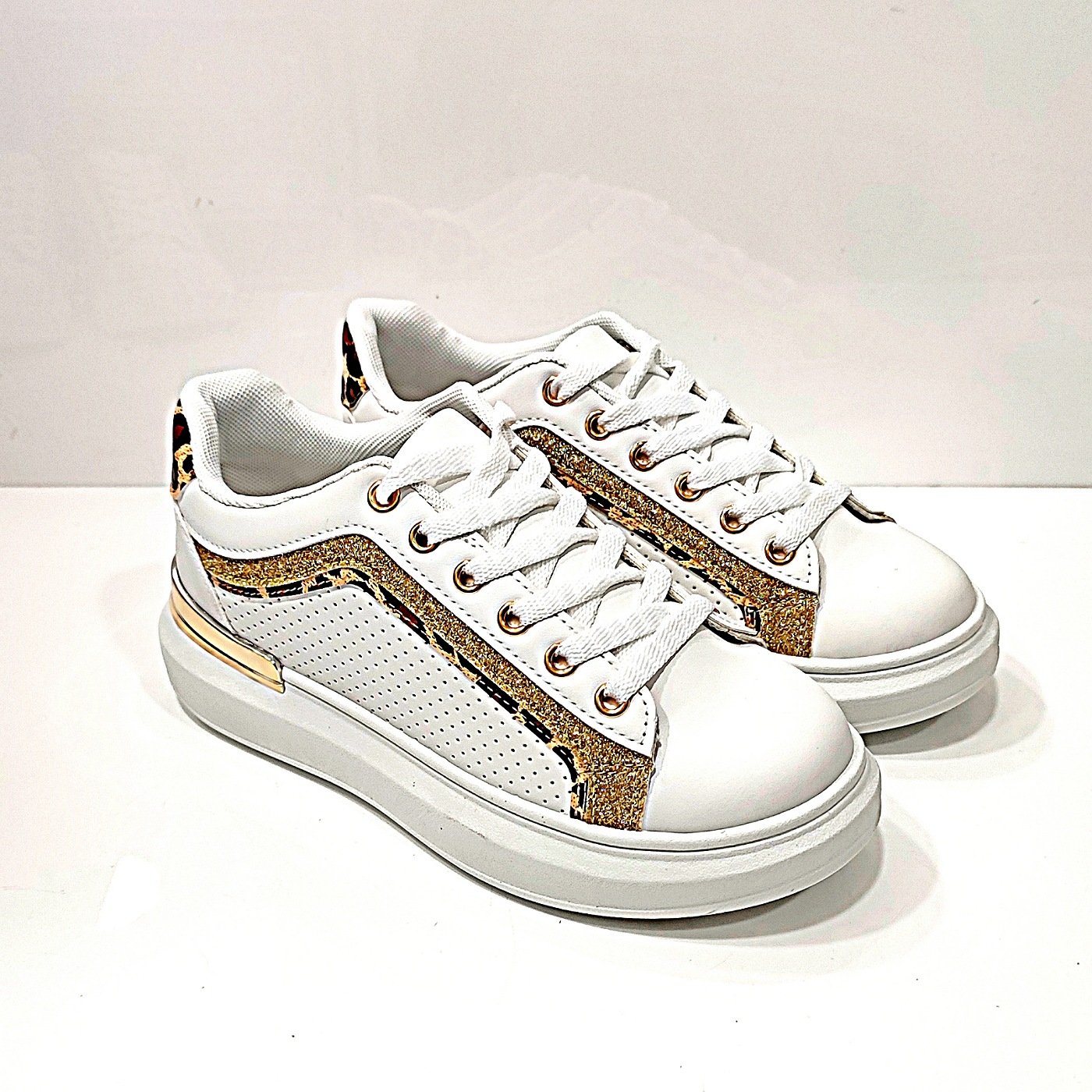 Γυναικεία σνίκερς διαπνέον σε λευκό χρώμα με glitter.δετά για σταθερό κράτημα στο βάδισμα